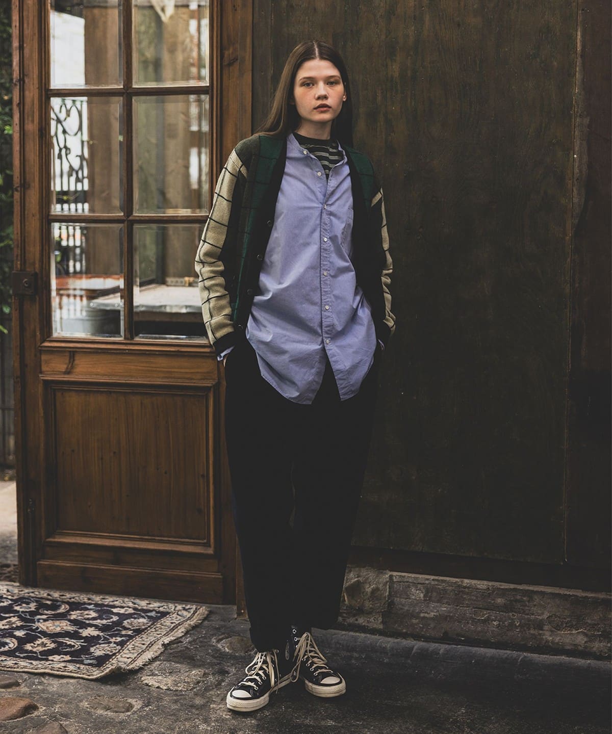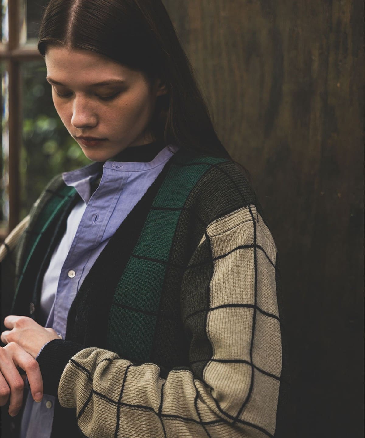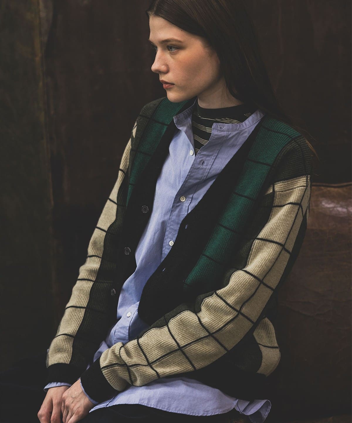 세로 스트라이프를 더해 체크처럼 보이도록 짜여진 독특한 디자인입니다