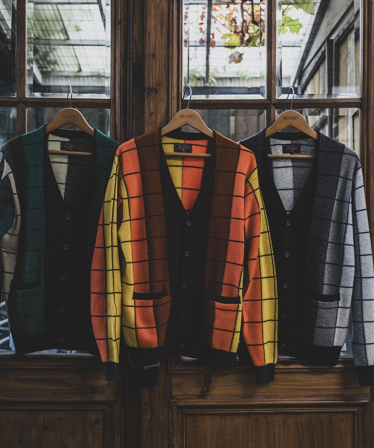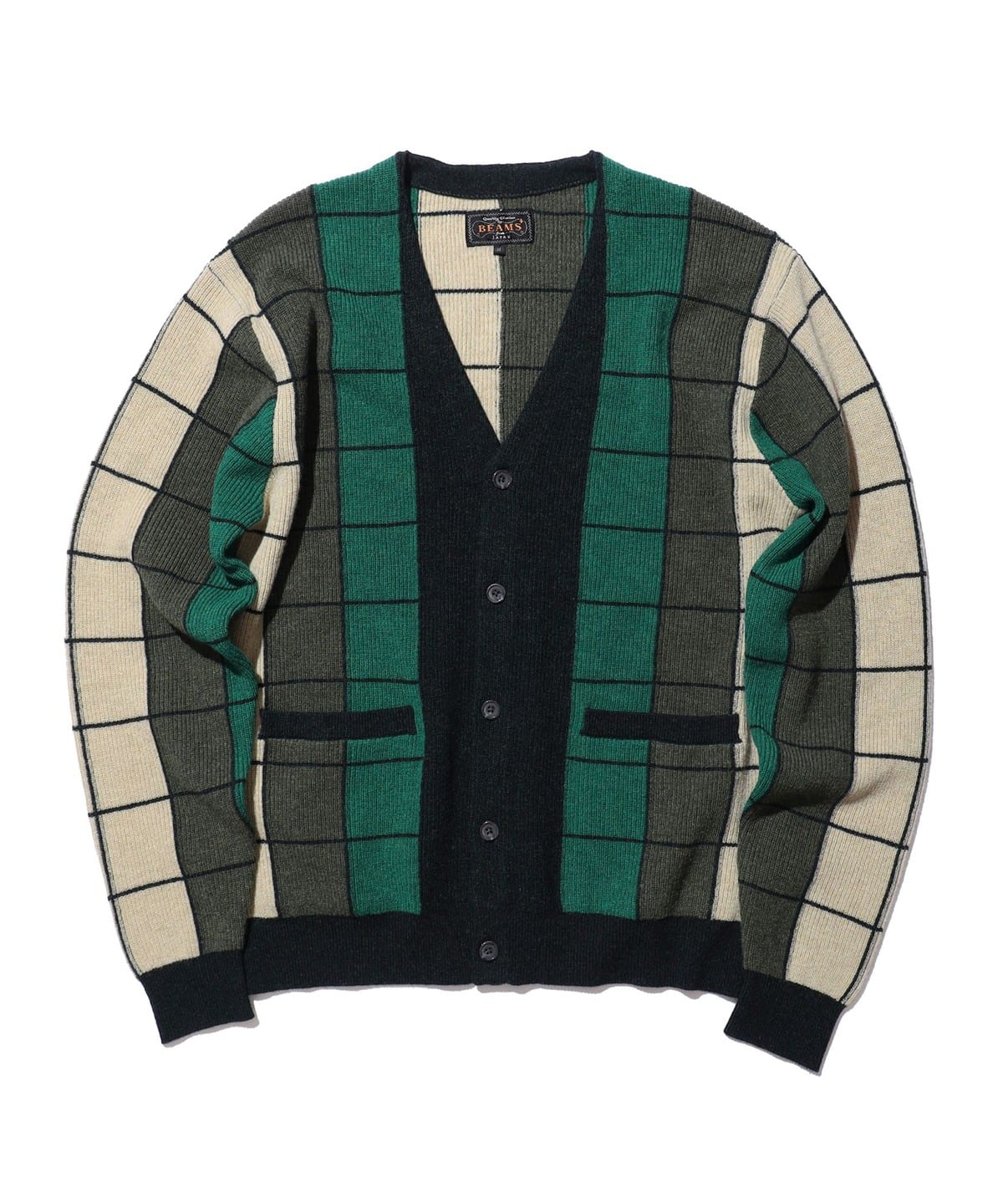 빔즈 플러스 인타르시아 가터 스티치 니트 가디건