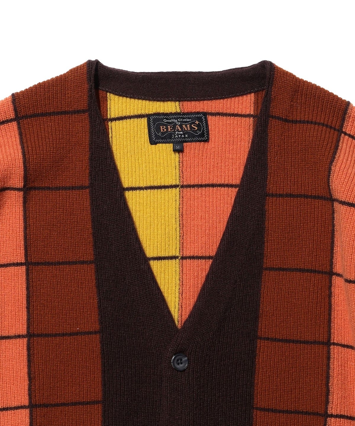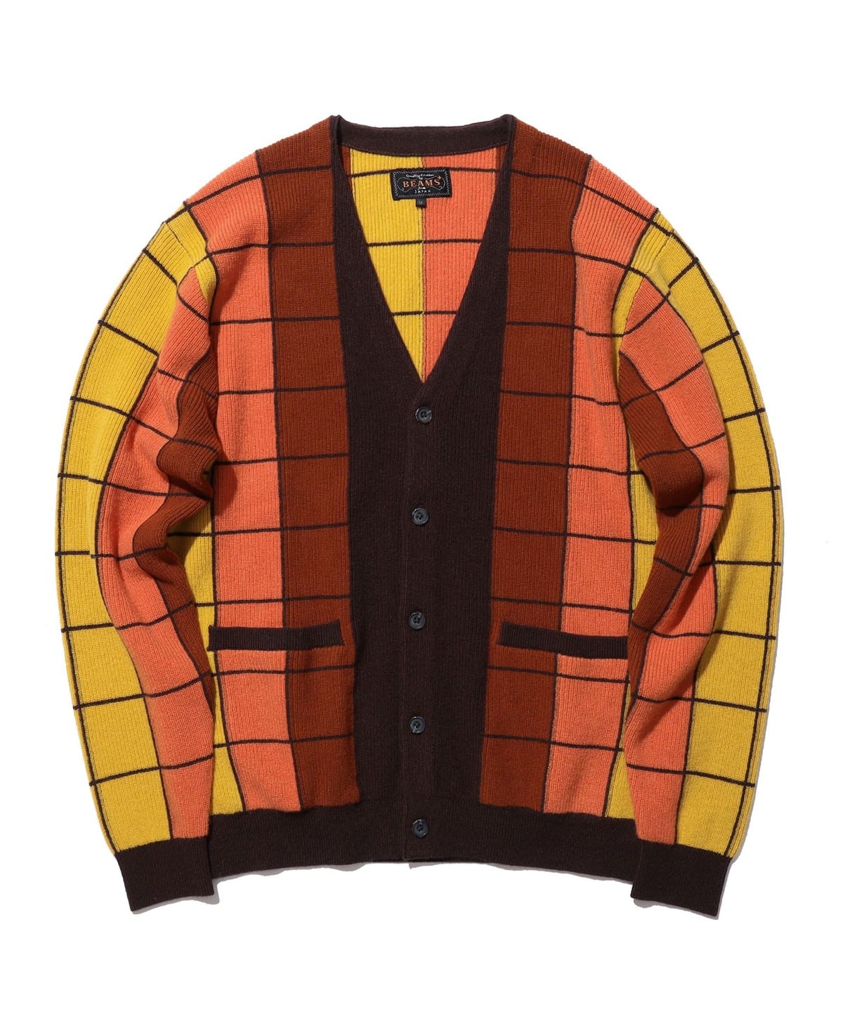 강렬한 컬러 그라데이션이 돋보이는 BEAMS PLUS V넥 니트 가디건 입니다.