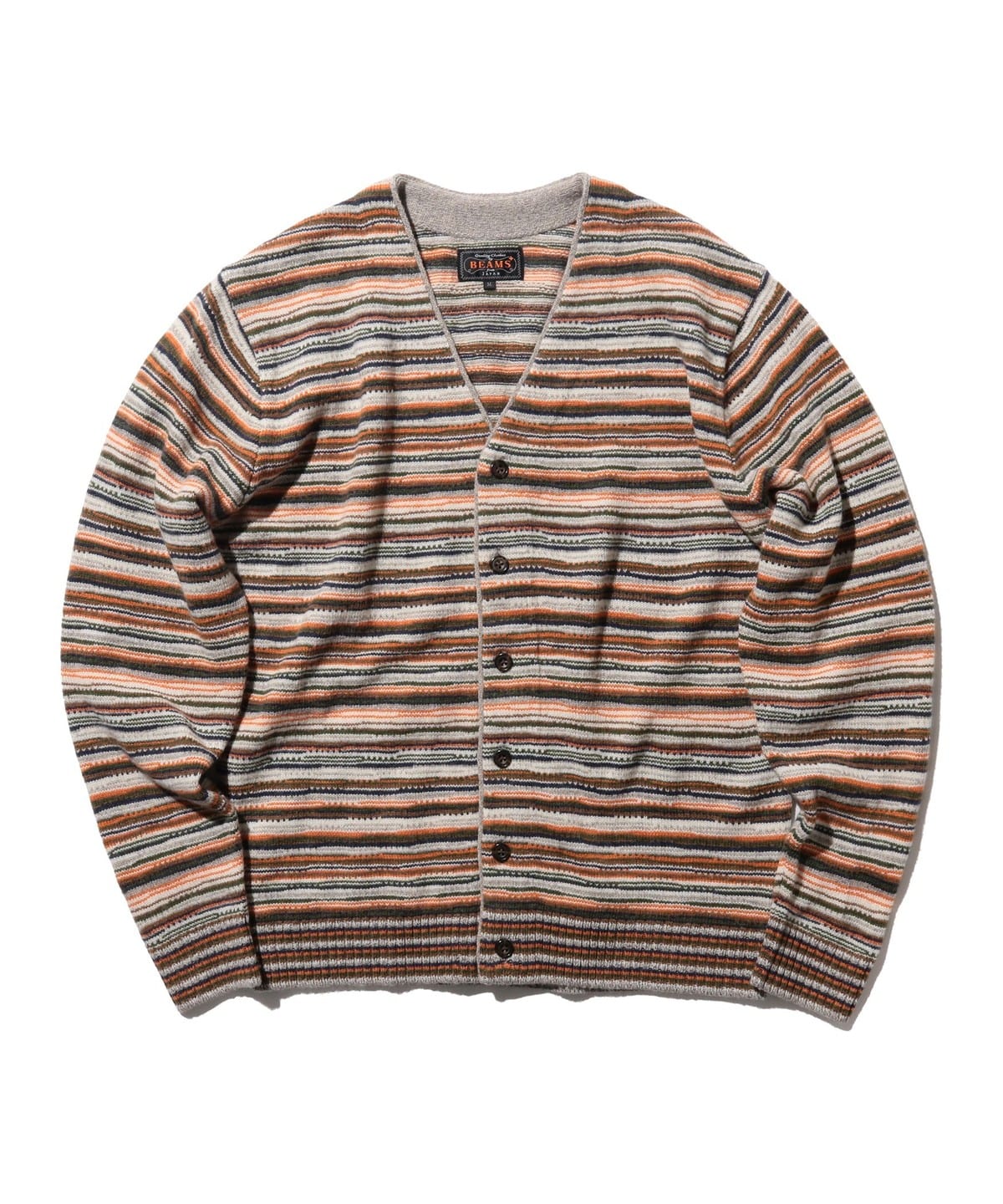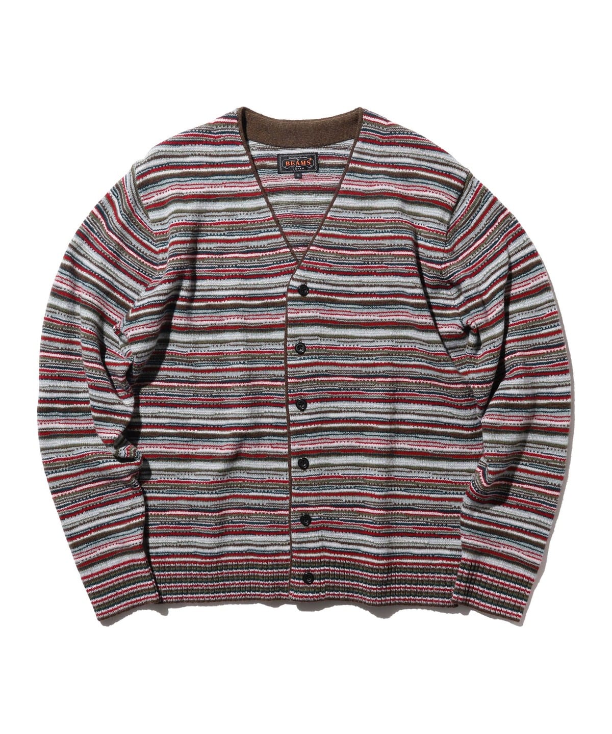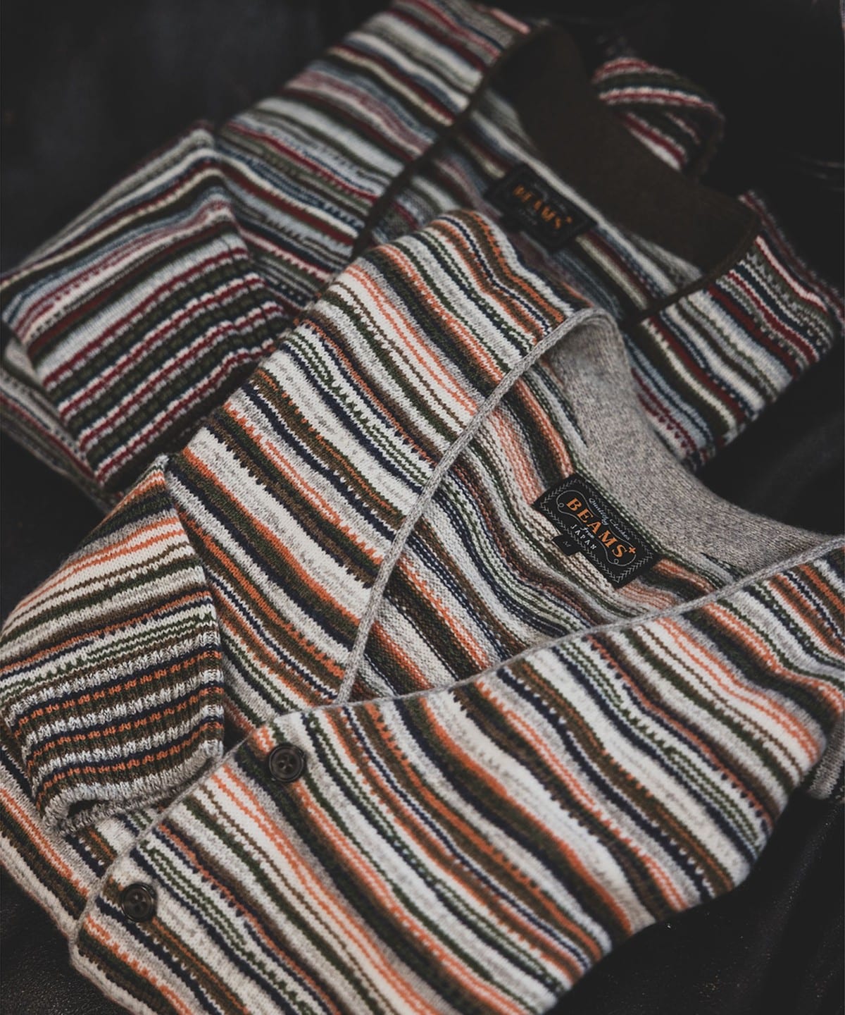 6가지 색을 조합한 멀티컬러 스트라이프가 돋보이는 BEAMS PLUS 울 가디건 입니다.