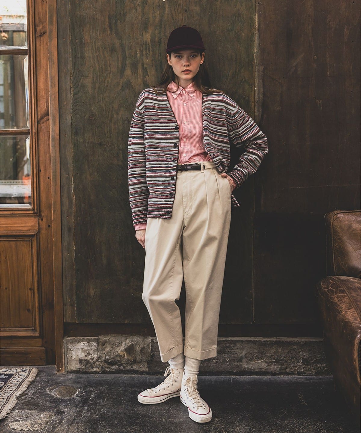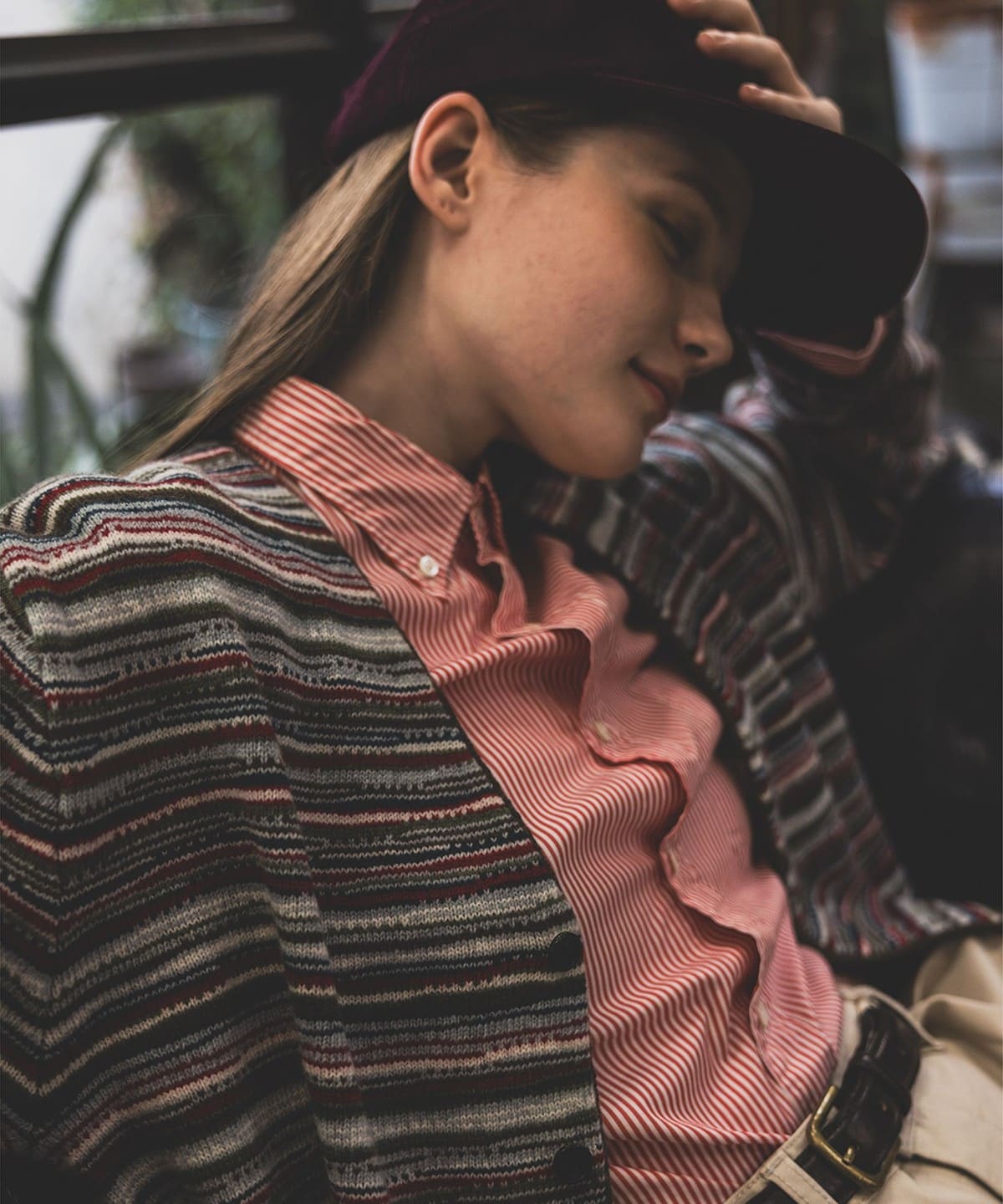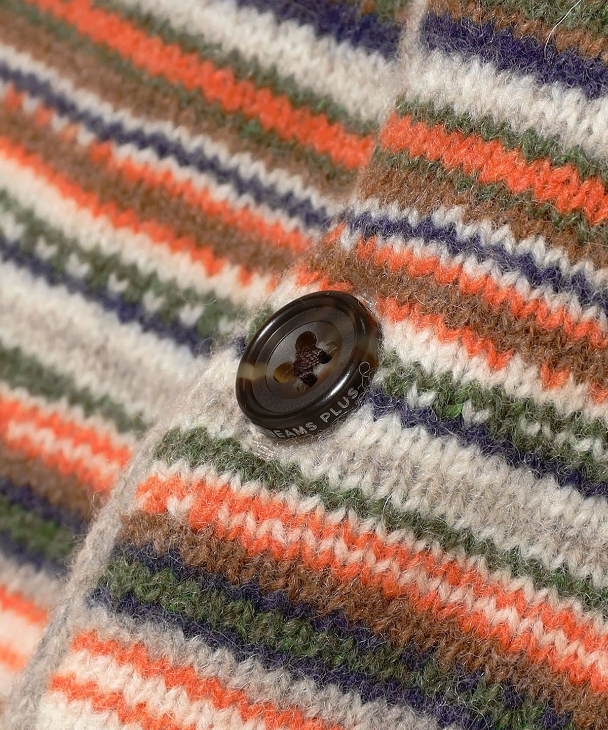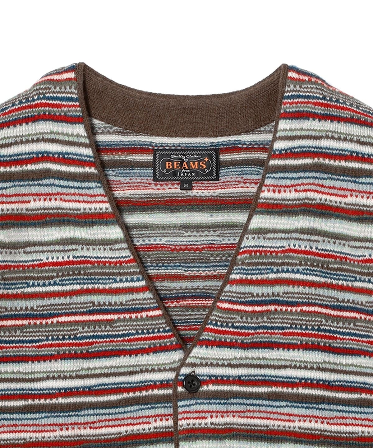 6가지 색을 조합한 멀티컬러 스트라이프가 돋보이는 BEAMS PLUS 울 가디건 입니다.