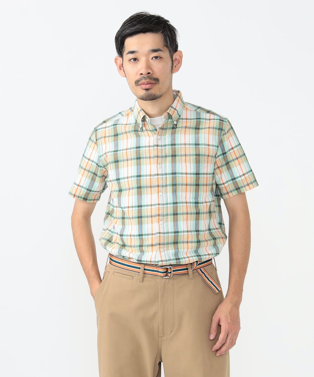 빔즈 플러스 반팔 셔츠 체크 버튼 다운 마드라스 38-01-0160-139