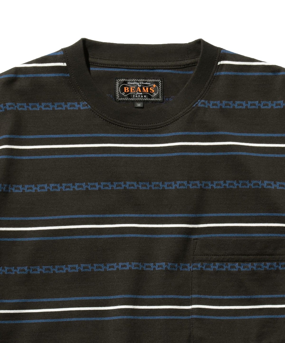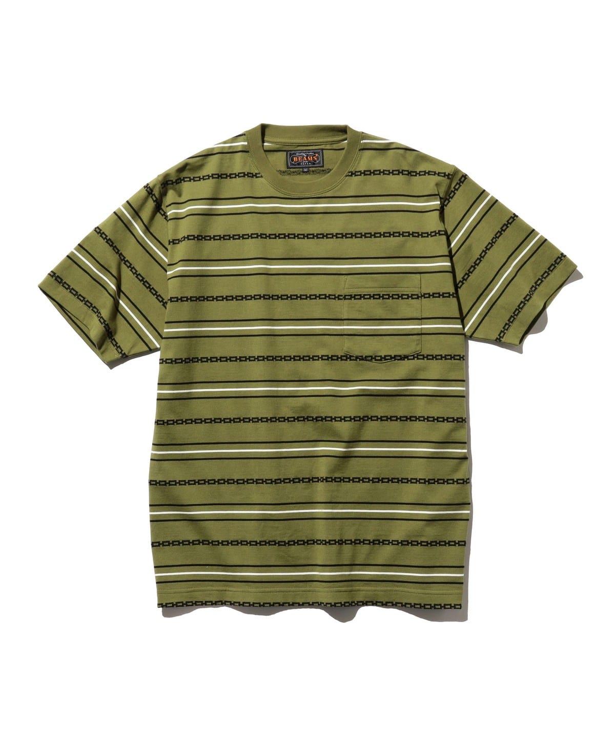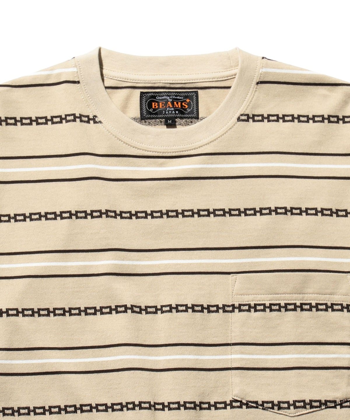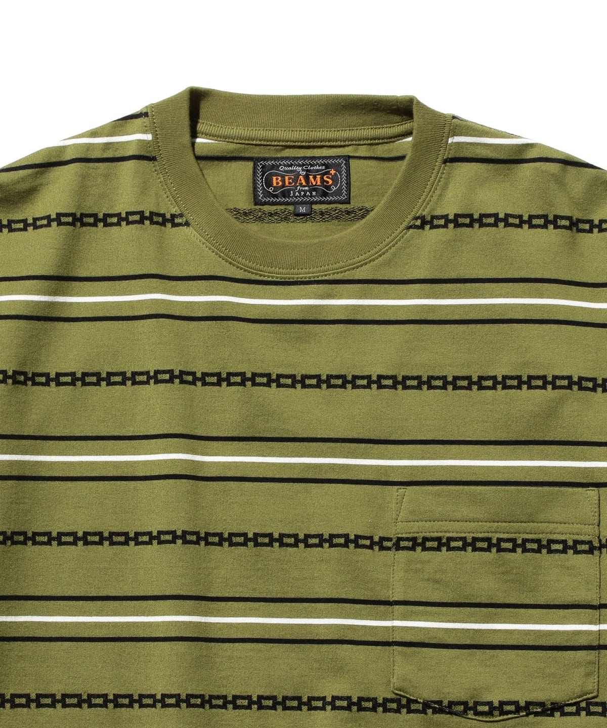 빔즈 플러스 자카드 스트라이프 포켓 반팔 티
