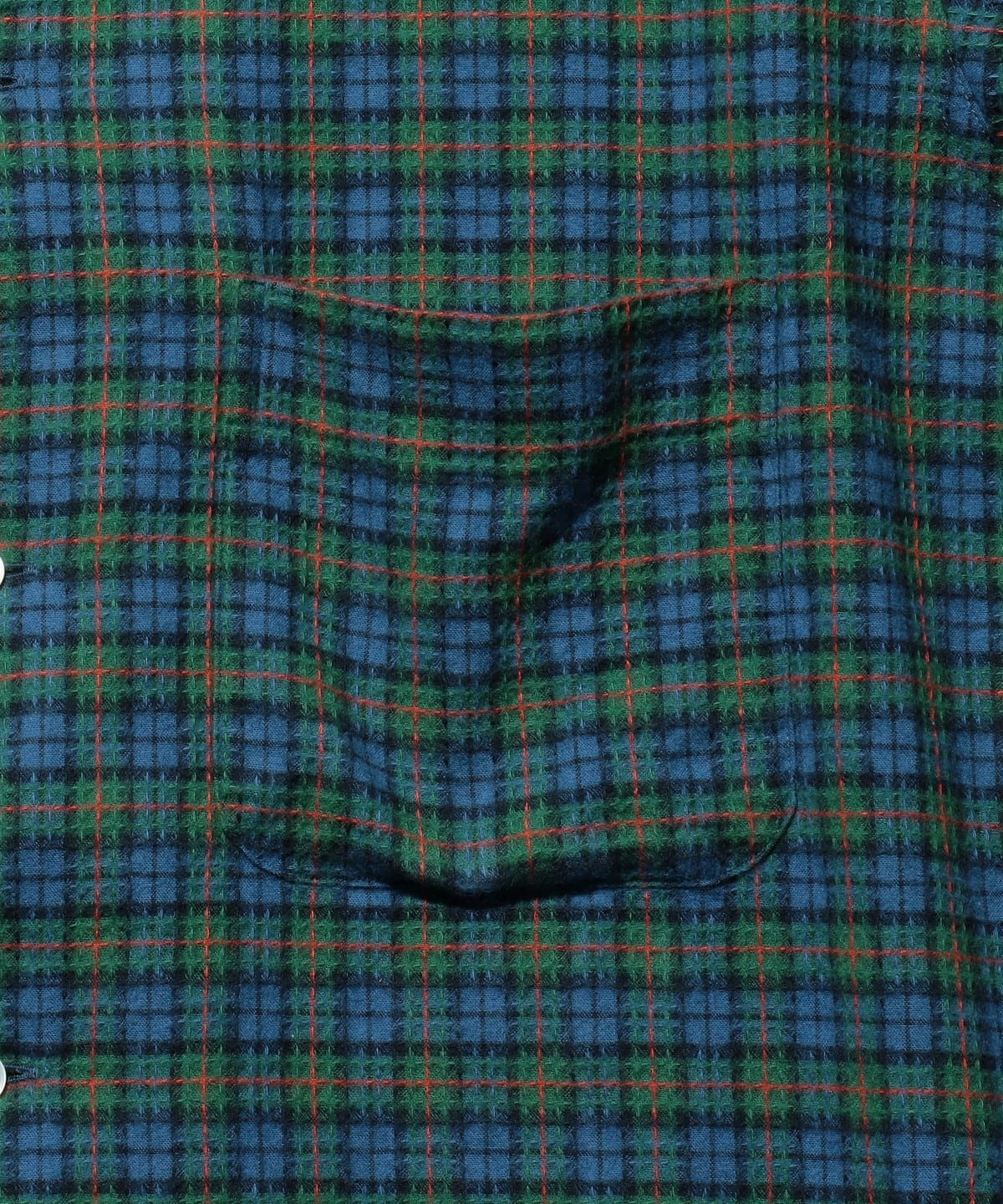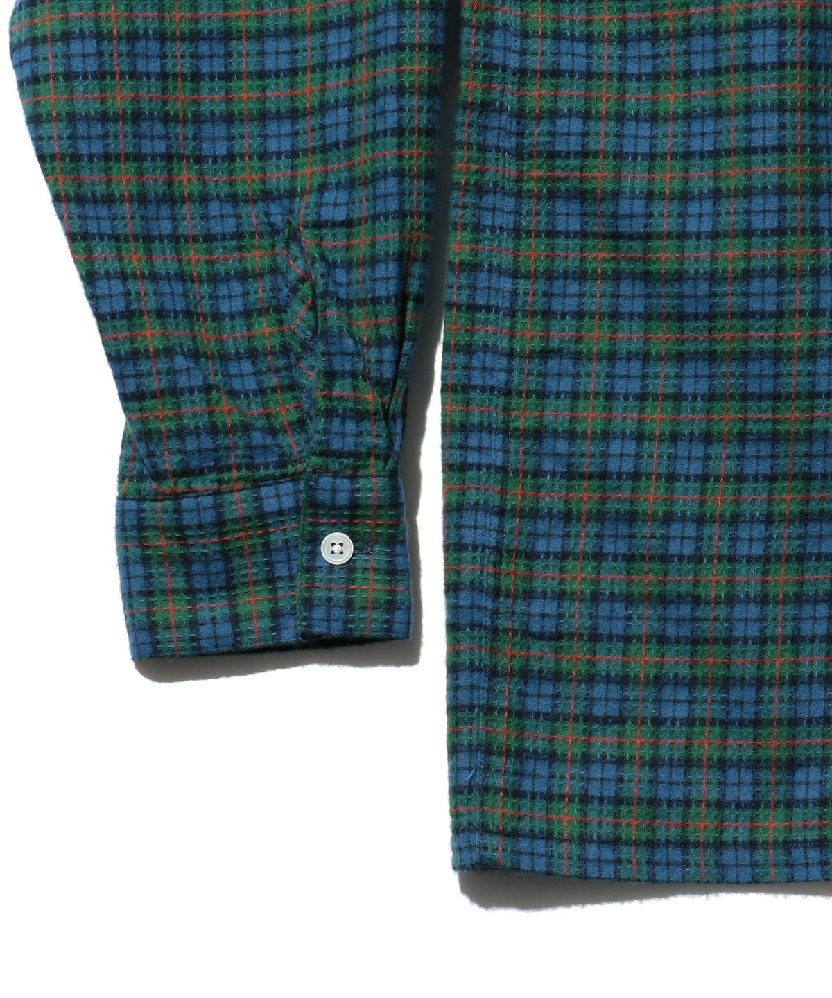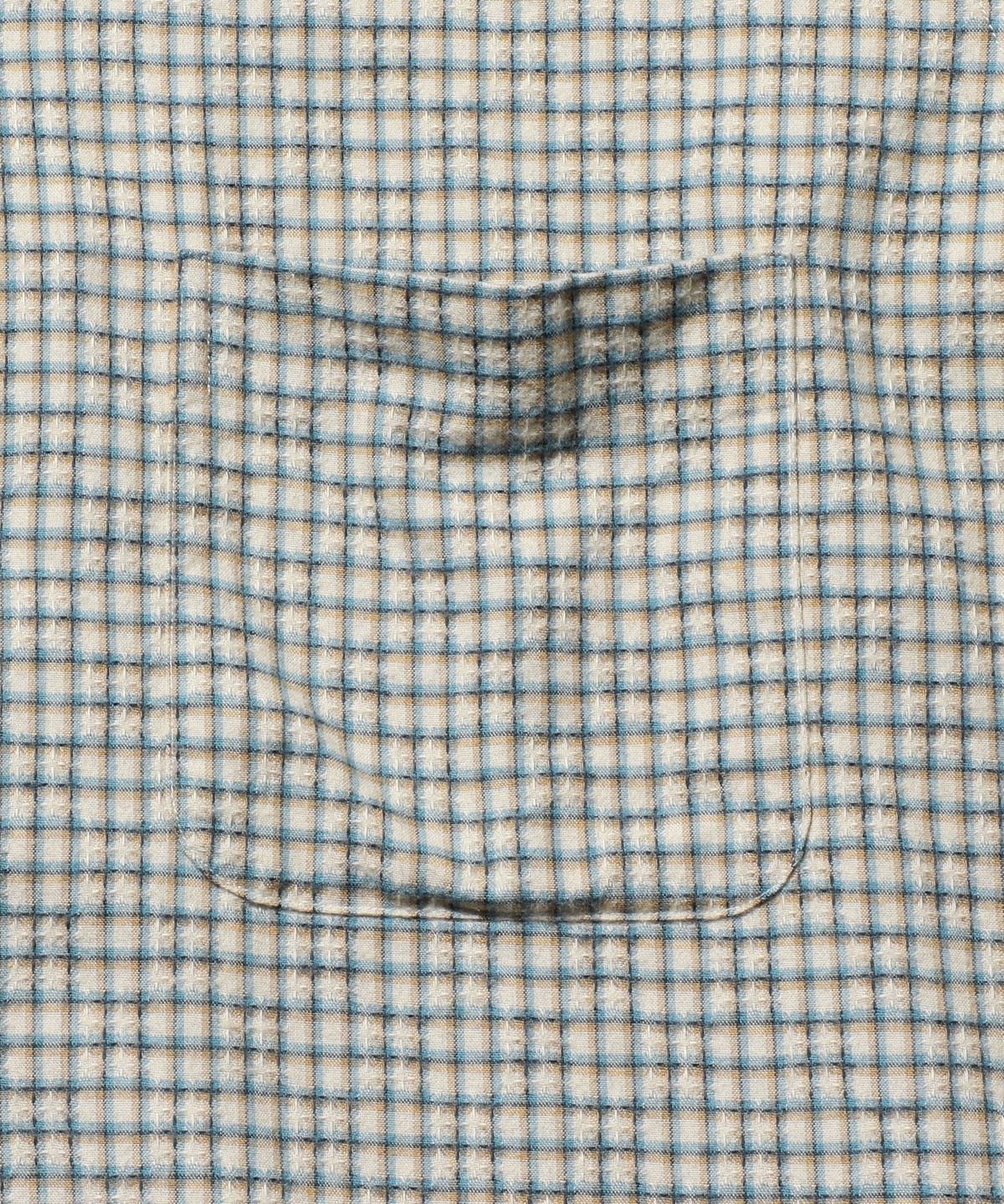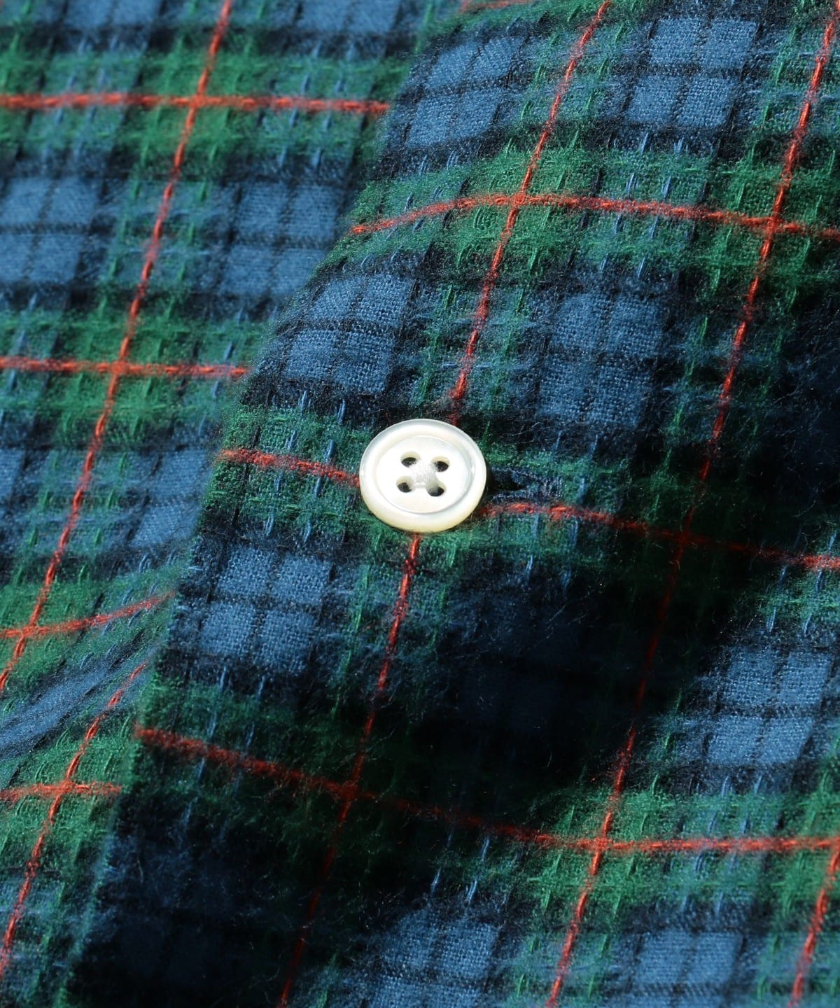 오픈 칼라와 버튼다운을 절묘하게 조합한 스탠드 칼라가 없는 디자인으로, 윗단추나 칼라 끝 단추의 여밈에 따라 다양한 스타일 연출이 가능합니다. 왼쪽 가슴에는 패치 포켓을 더했으며, 소매 끝단에는 파이핑 디테일을 적용했습니다.