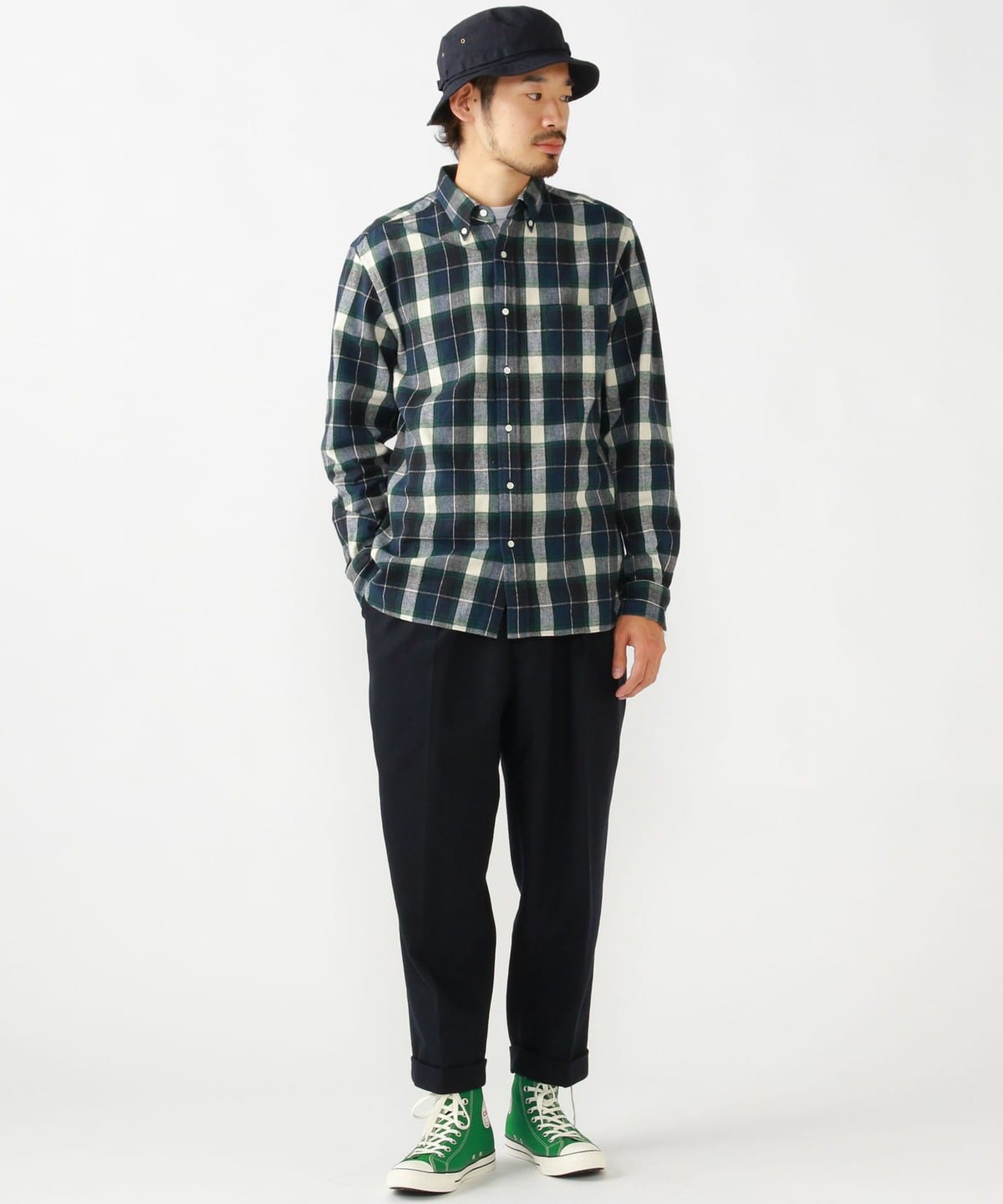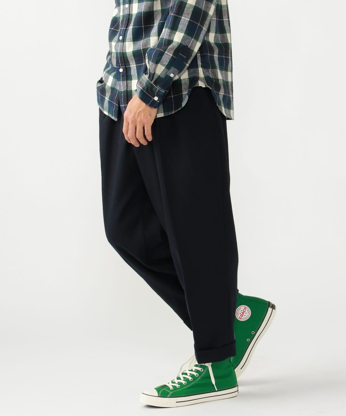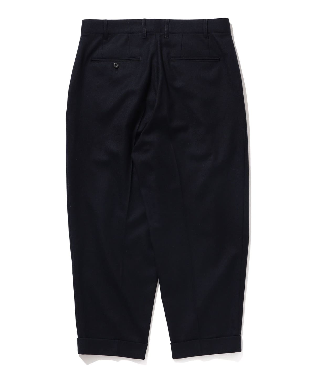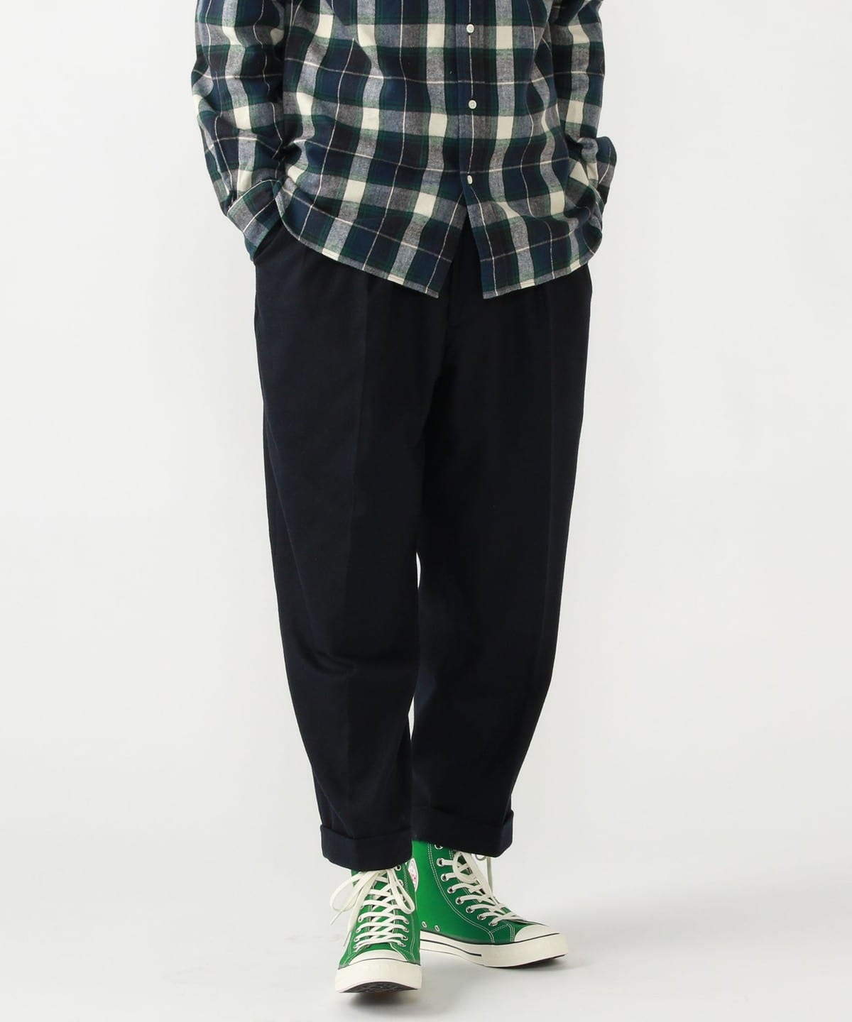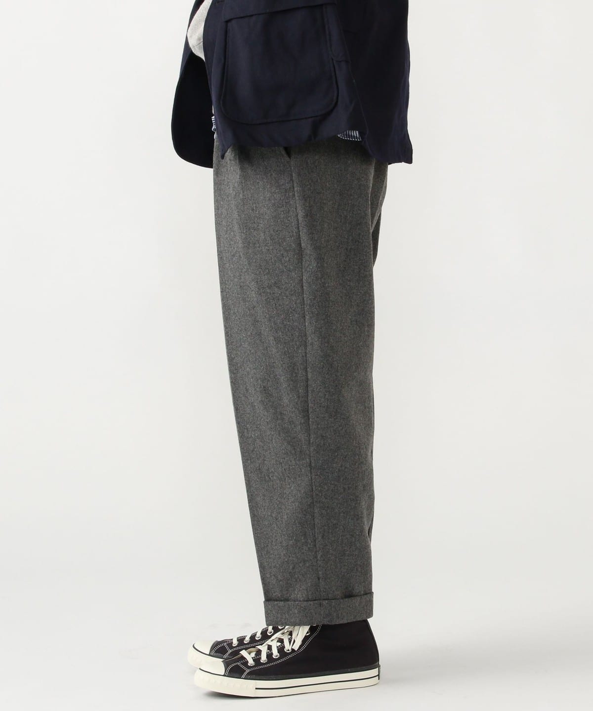 은은한 색감과 기모 가공된 따뜻한 소재감이 돋보이는 BEAMS PLUS의 투플리츠 팬츠. 허리와 힙 라인은 여유 있게 잡고, 밑단으로 갈수록 좁아지는 테이퍼드 실루엣입니다.