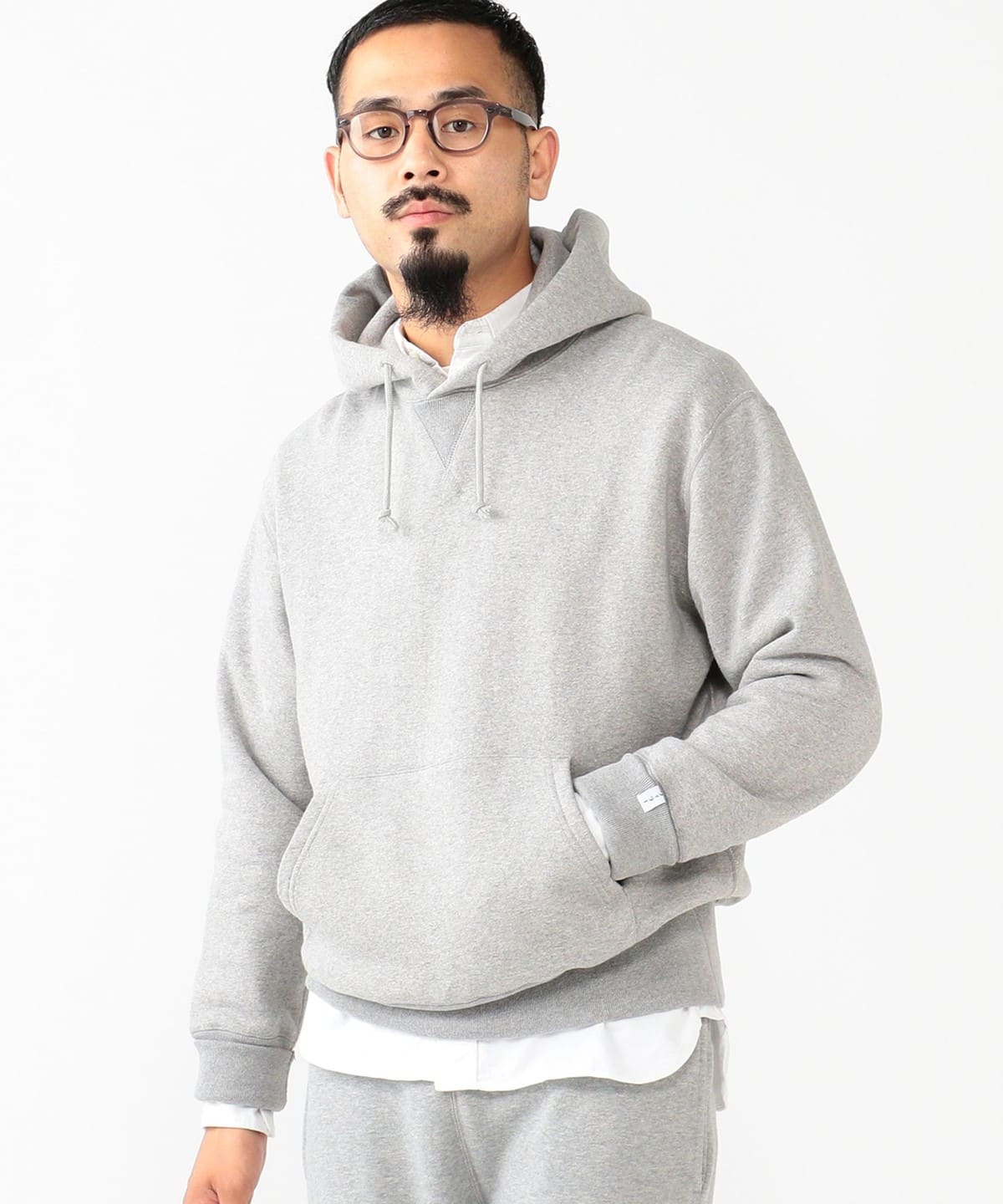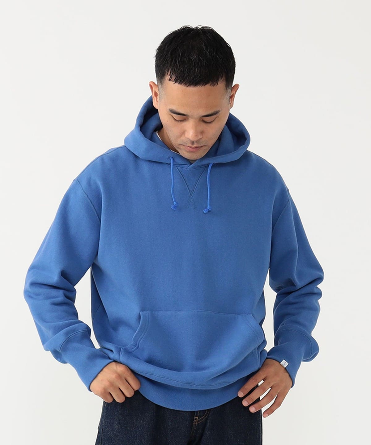 심플한 디자인의 후드 스웨트 셔츠. 클래식한 V마치와 캥거루 포켓이 있는 디자인입니다.