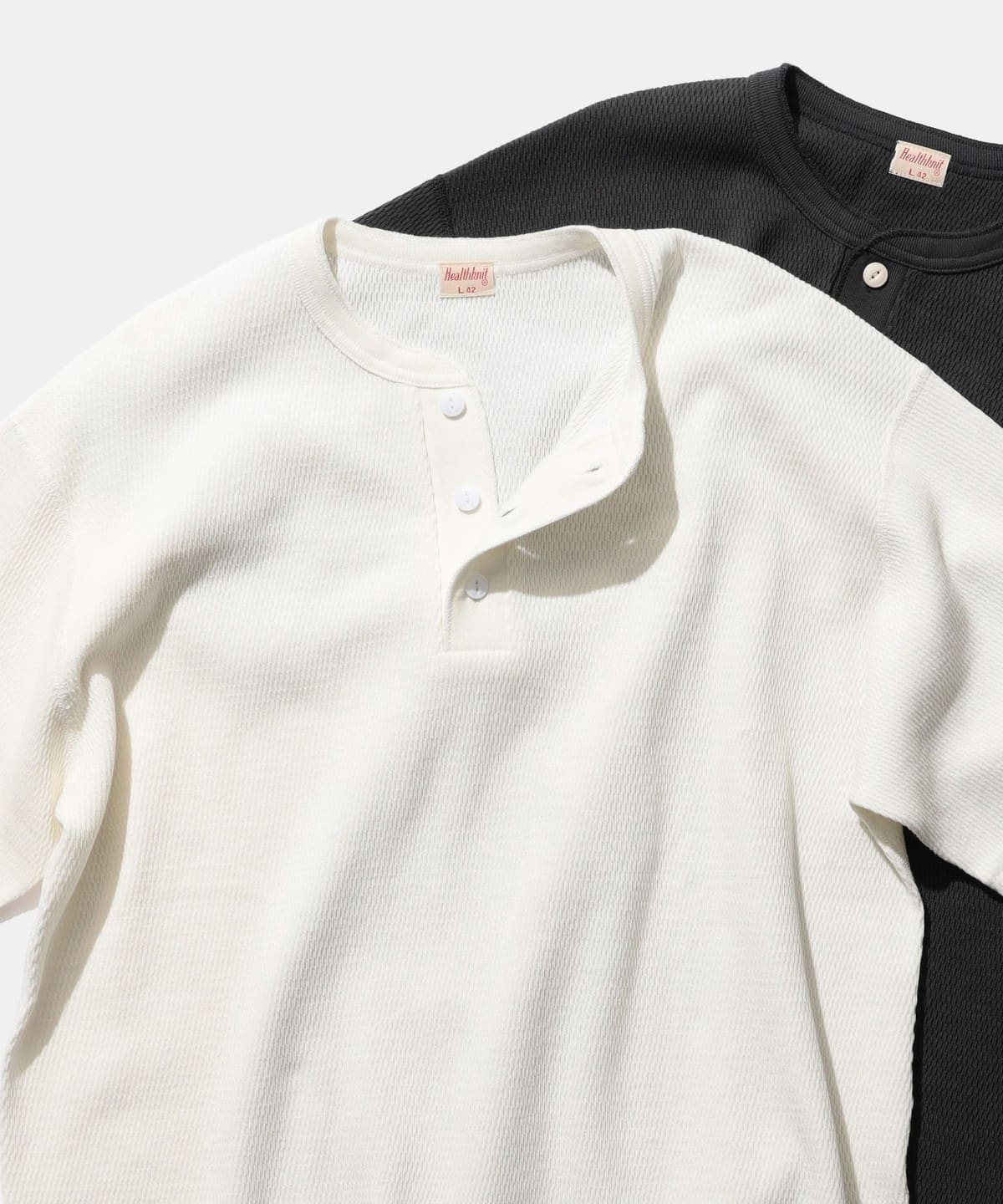 본래는 언더웨어로 사용되던 헨리넥 티셔츠 를 BEAMS PLUS가 단독 착용이 가능하도록 핏과 소재를 재구성 한 별주 아이템입니다.