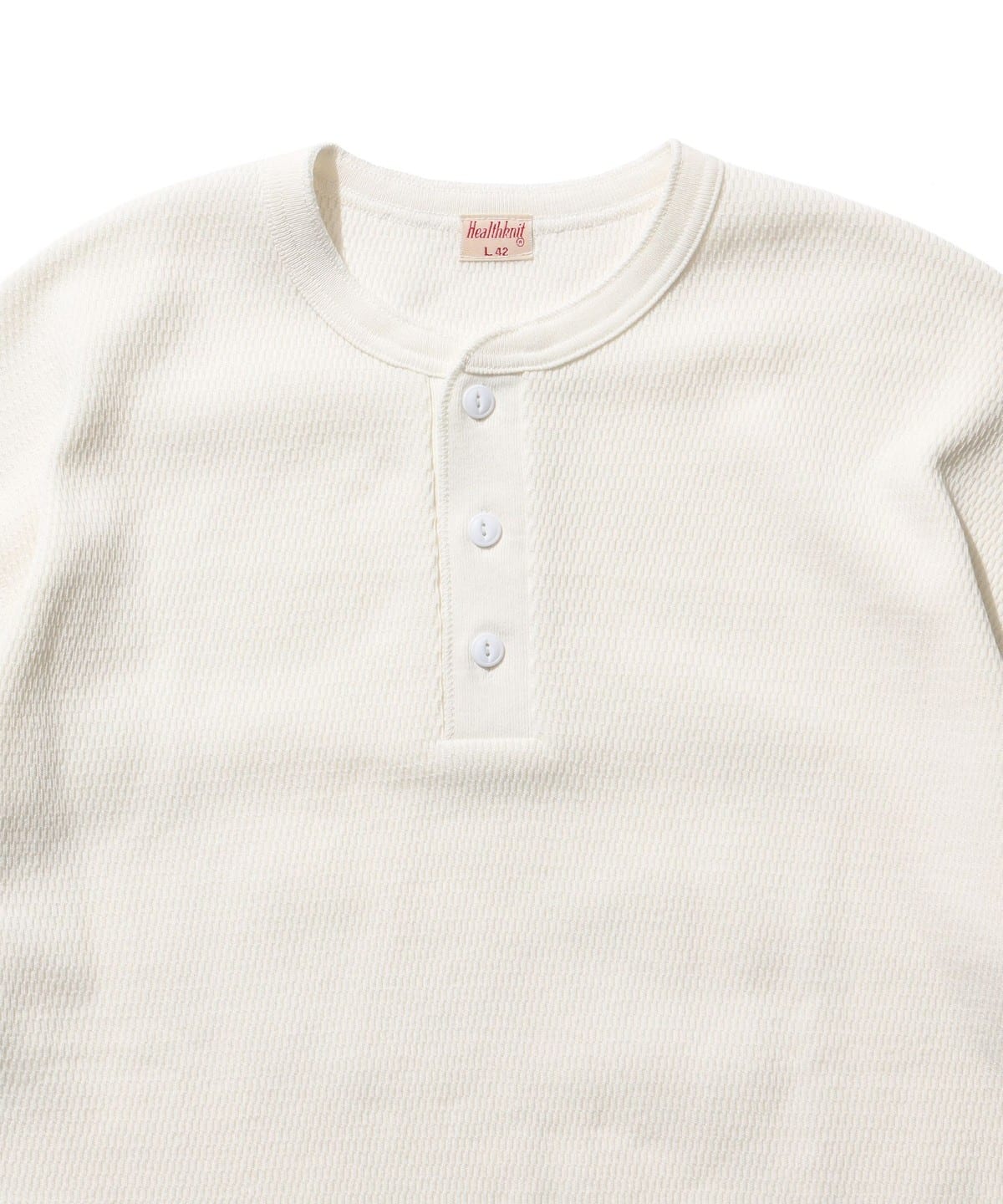 Healthknit 특유의 코튼 하니컴 서멀 조직으로, 공기방울처럼 부풀어 오른 텍스처가 특징입니다.