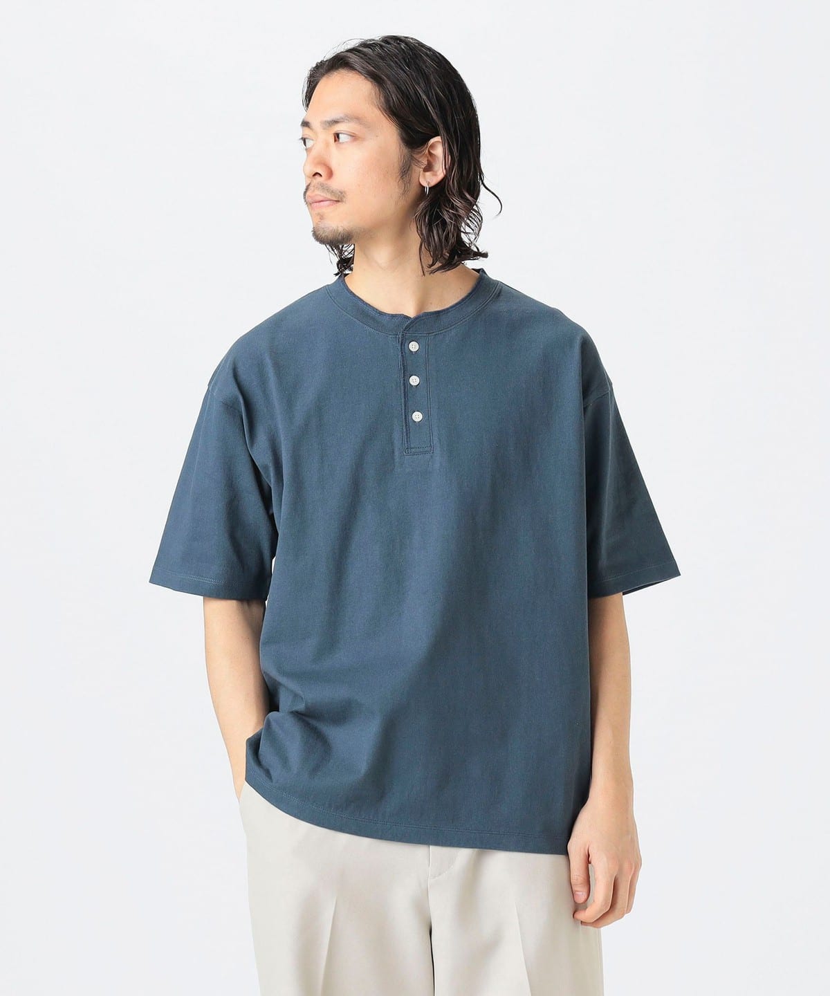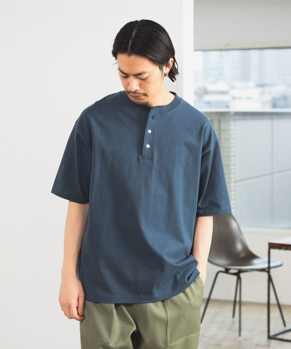 B MING by BEAMS 헤비웨이트 3 버튼 헨리 넥 반팔 티 셔츠