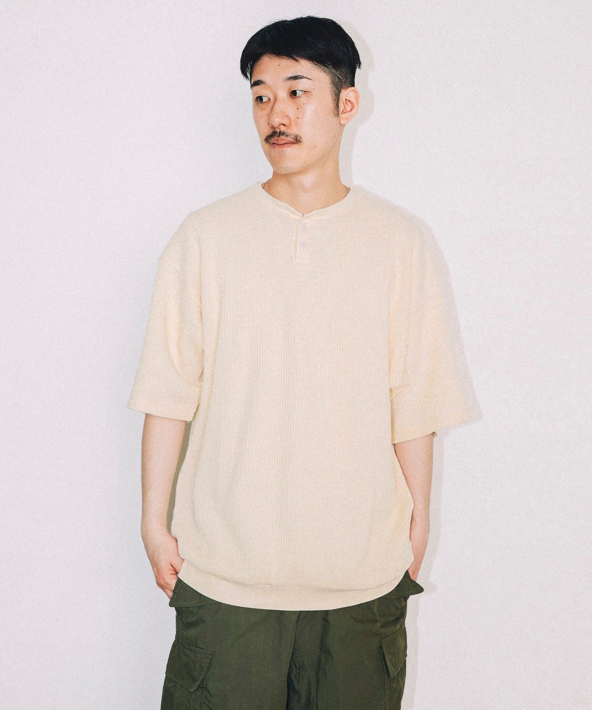 빔즈 T 헨리넥 와플 반팔 티 75-04-0065-147 일본 빈티지 패션 SPA 편집샵 직구