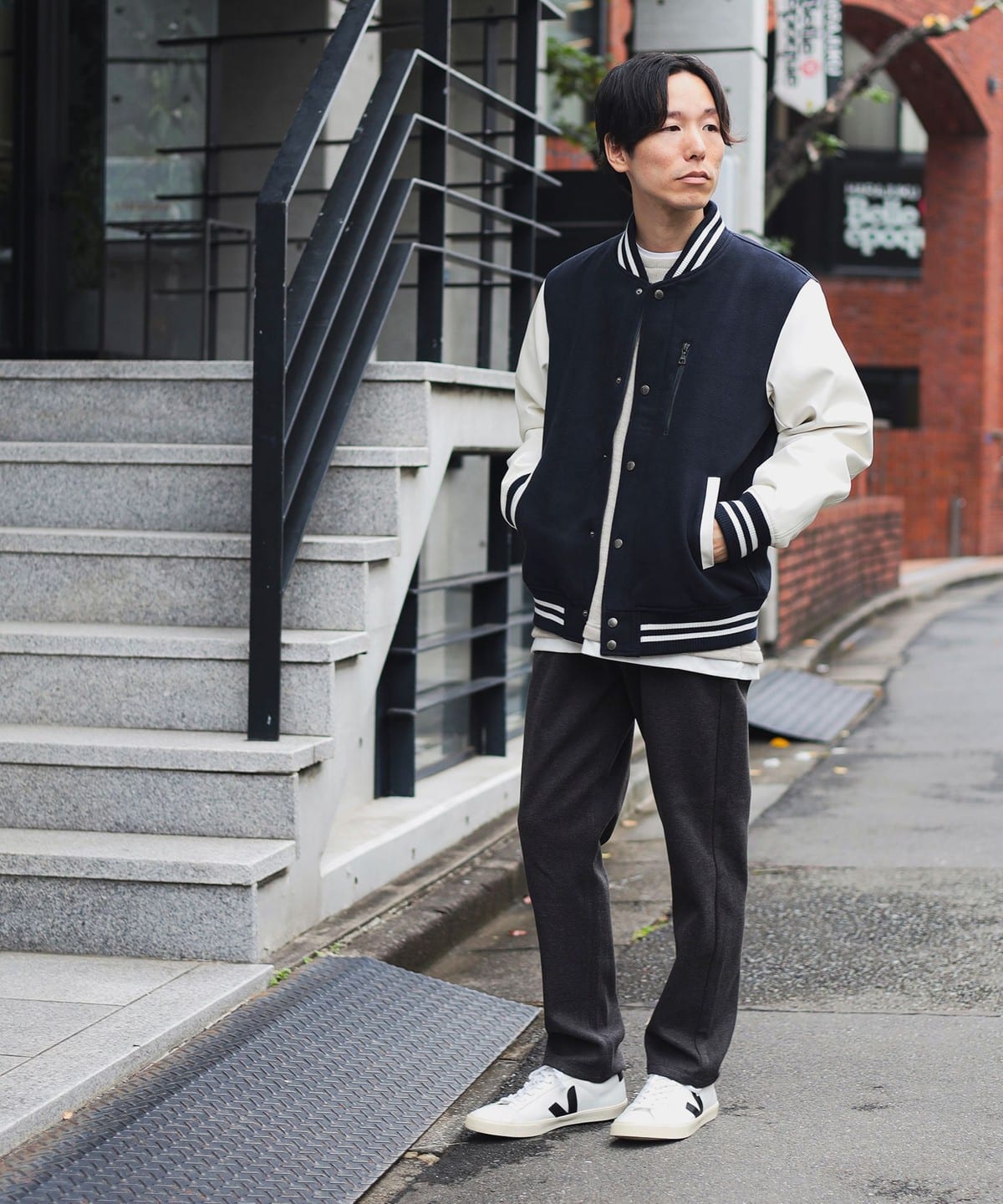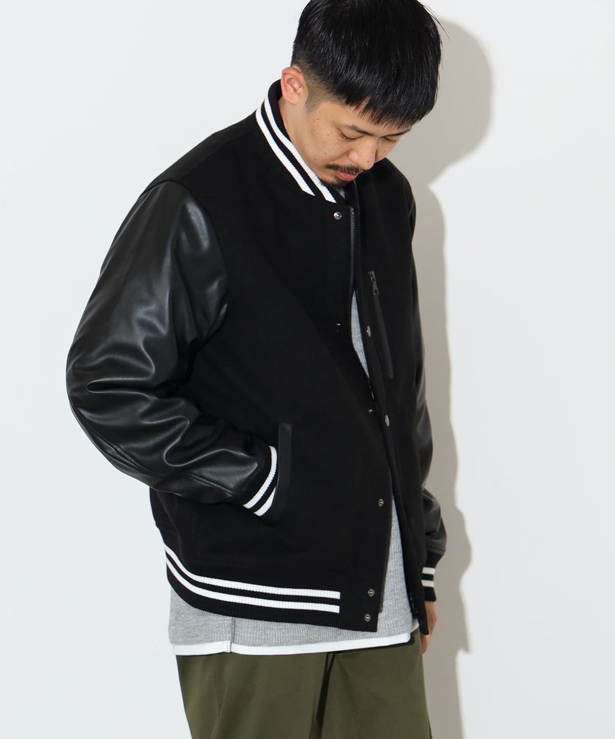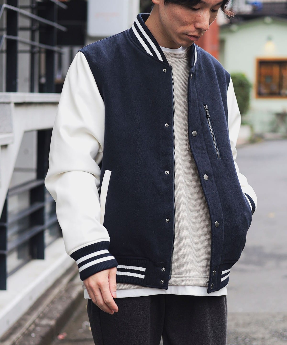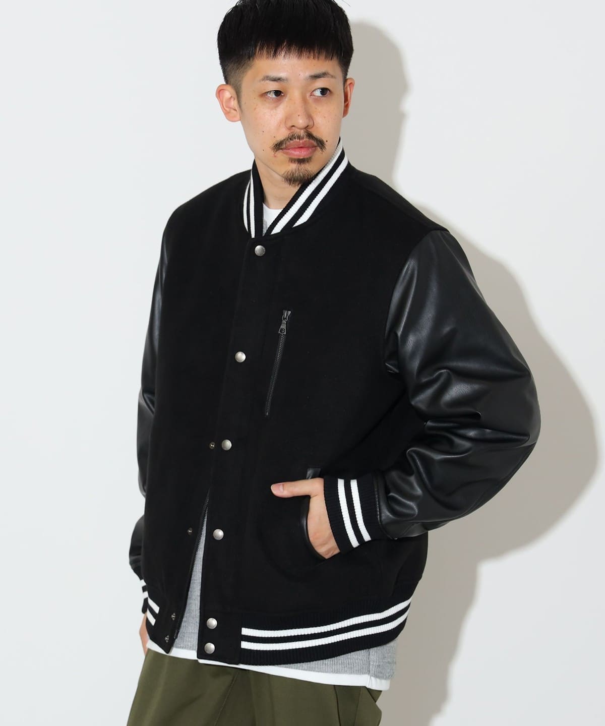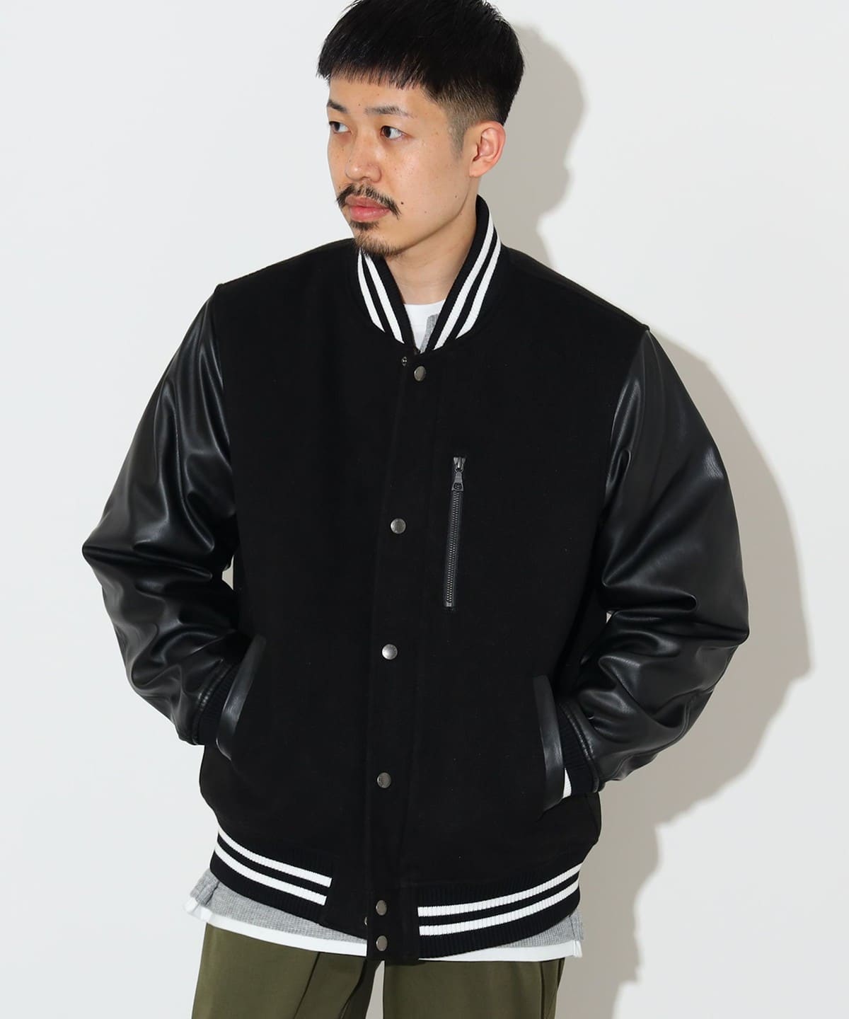 클래식한 스타디움 점퍼의 디자인을 베이스로, 가슴 부분의 지퍼 포켓이 있습니다.
