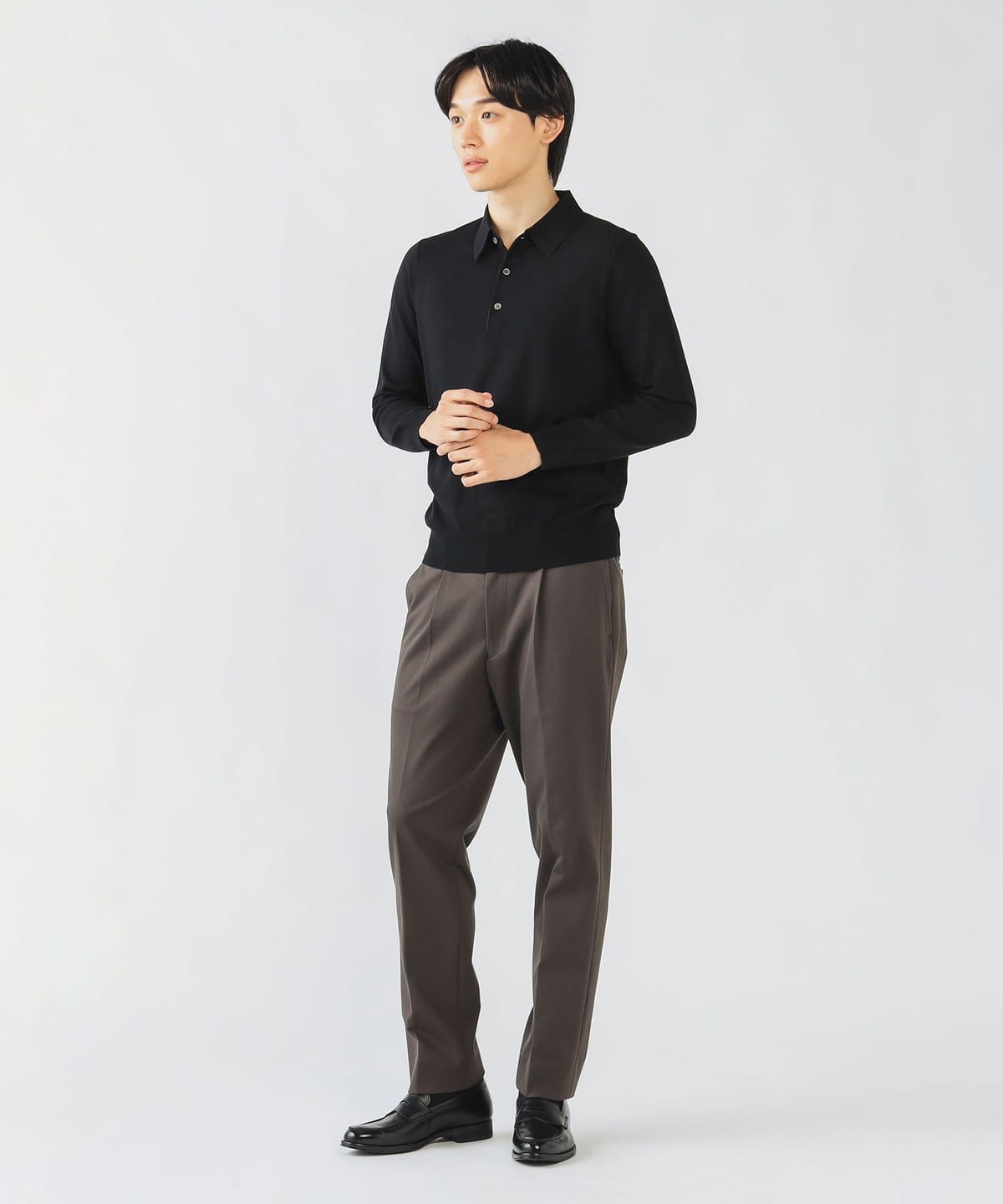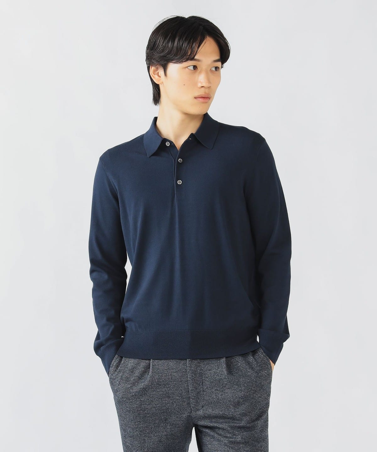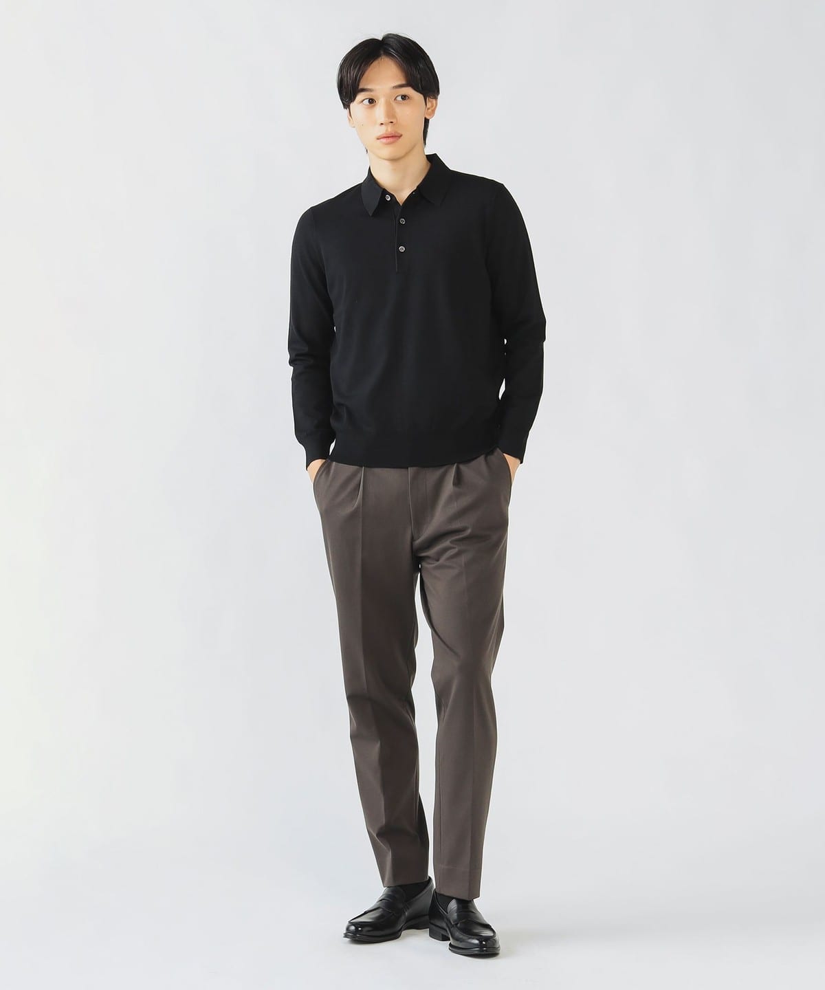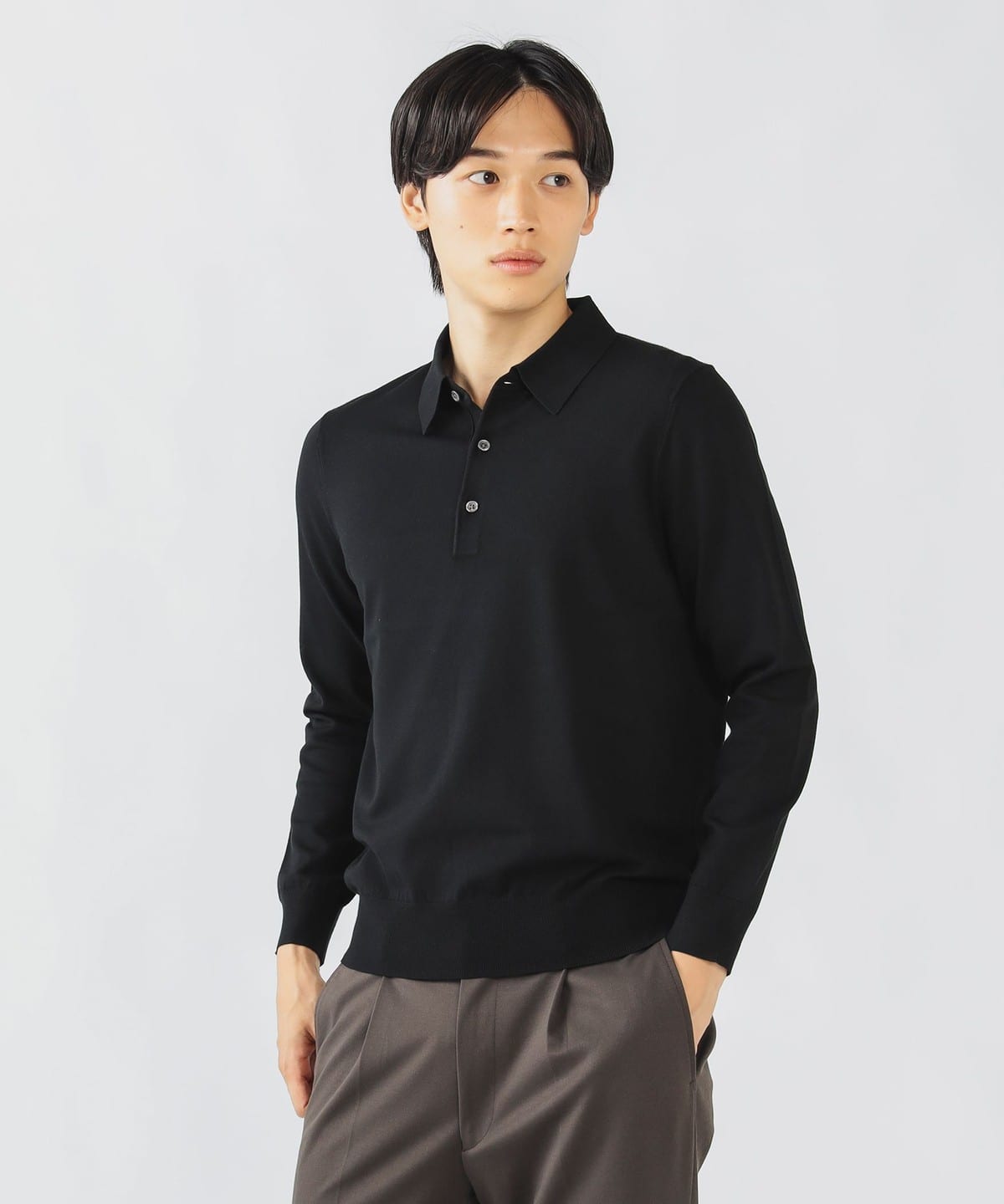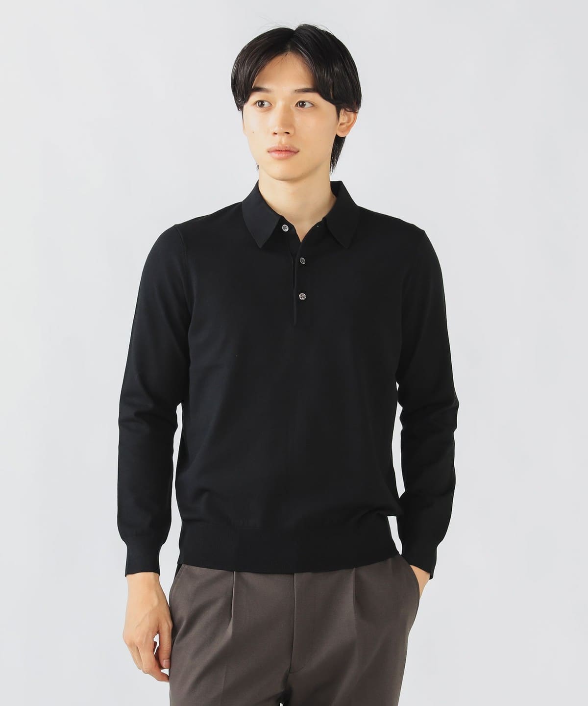 버튼을 열었을 때도 우아하게 펼쳐지는 테일러드 카라 디자인의 폴로 니트.