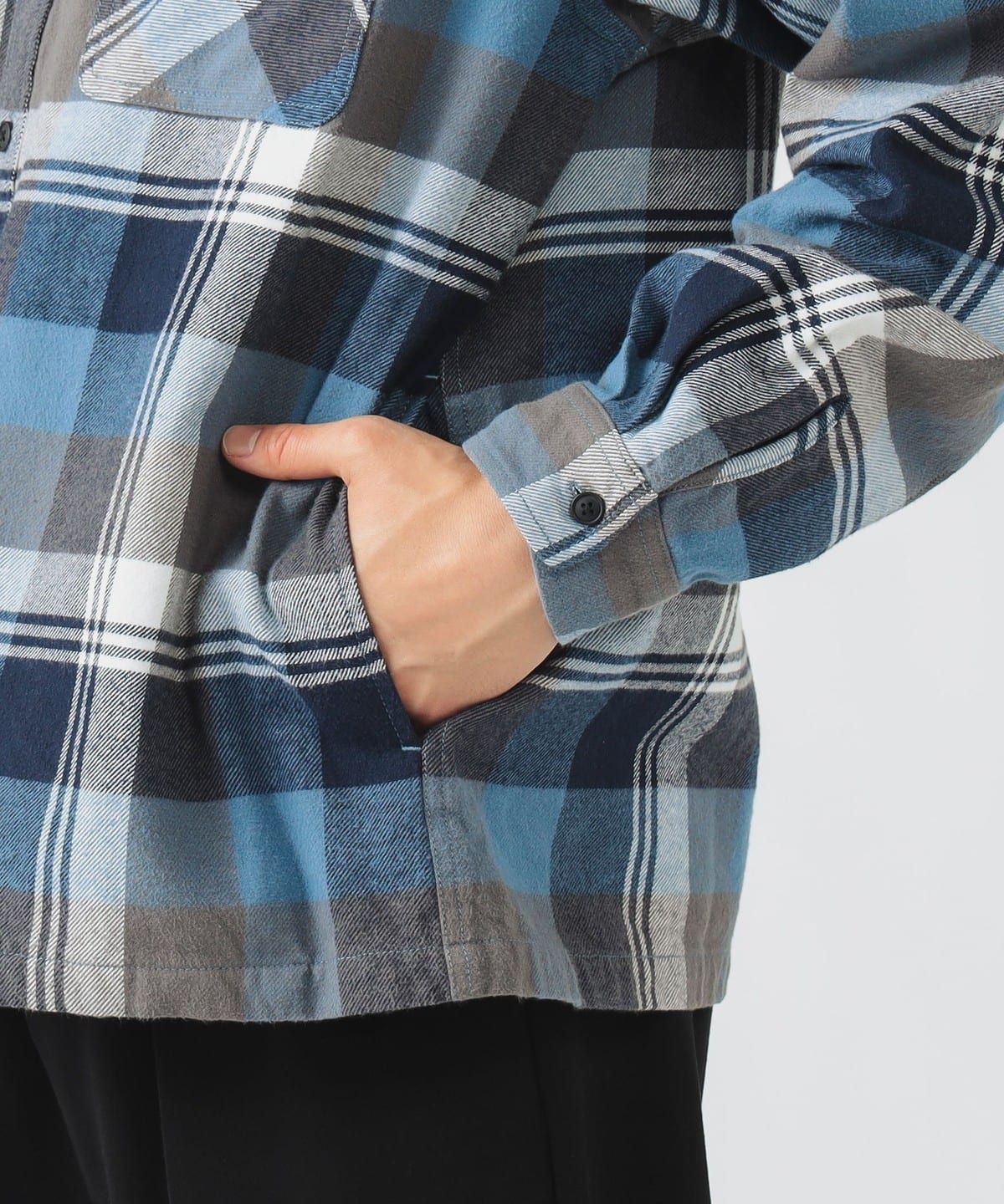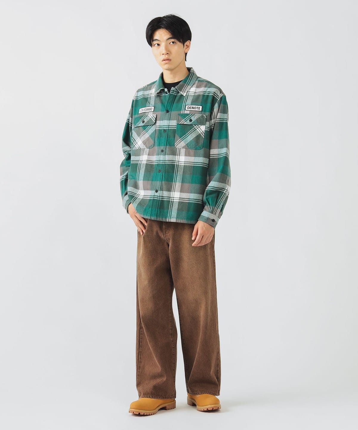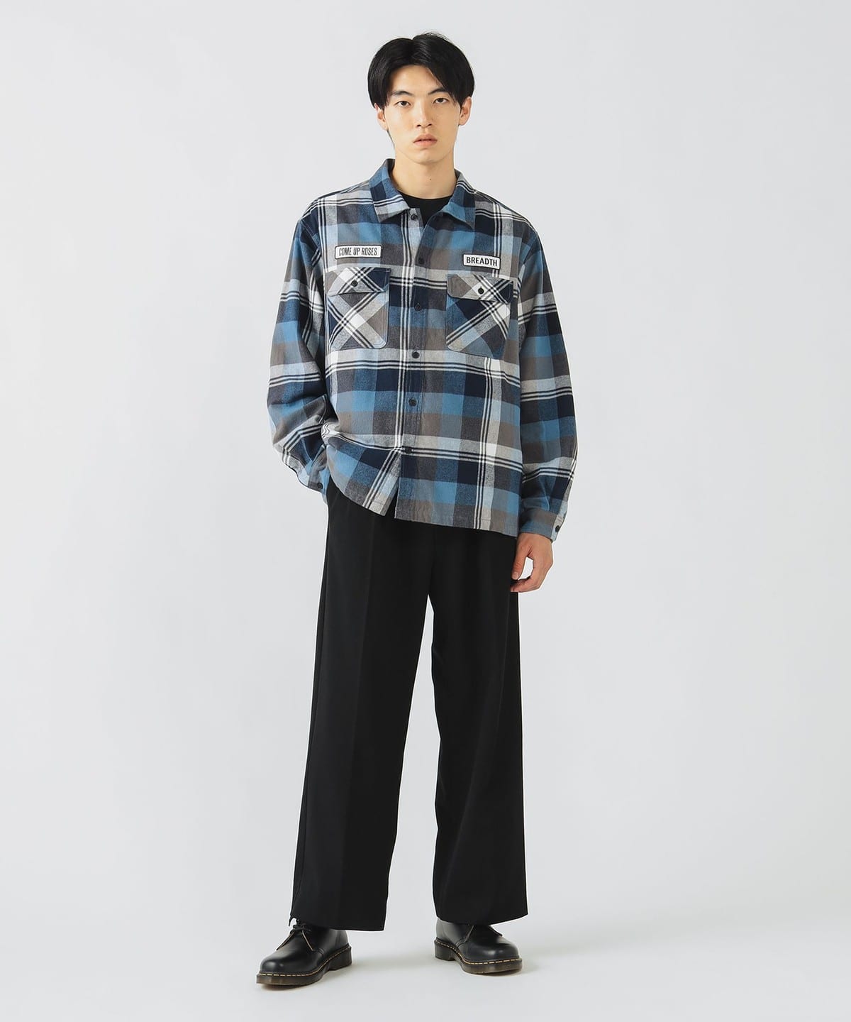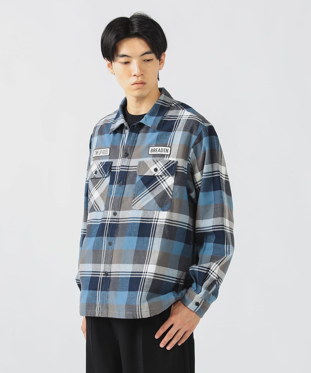 고풍스러운 빈티지 워크 셔츠를 모티브로 한 롱슬리브 셔츠입니다. 가슴에 와펜 디테일이 있으며 따뜻한 체크 패턴을 사용 했습니다.