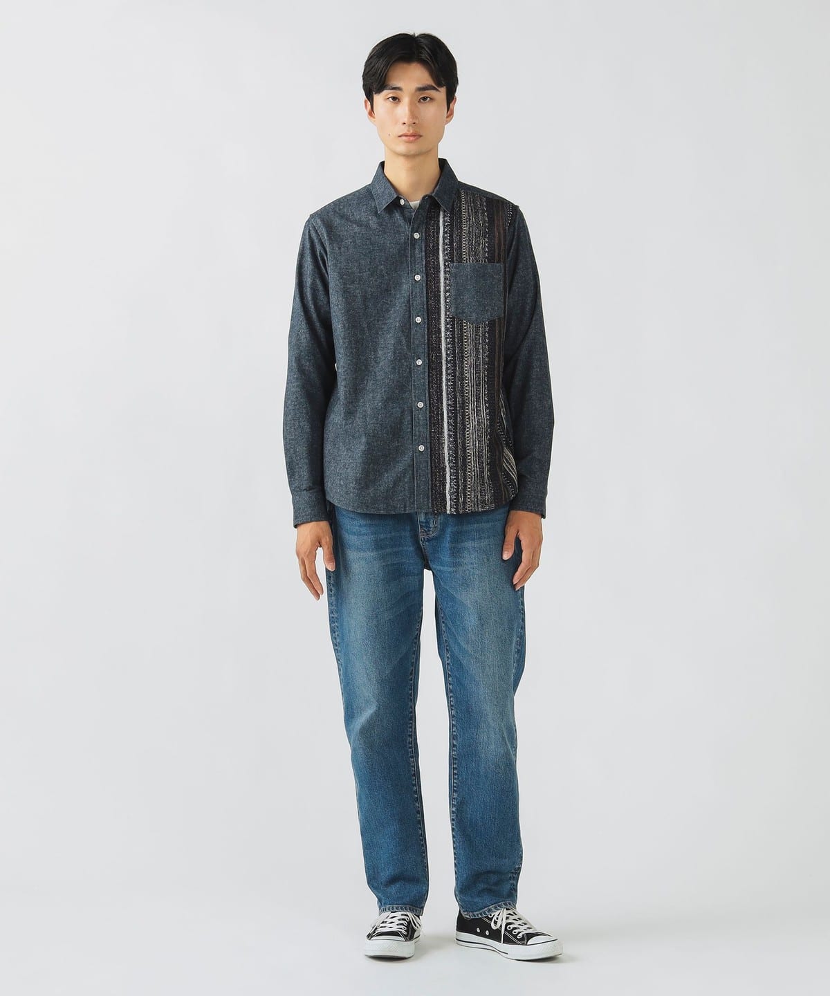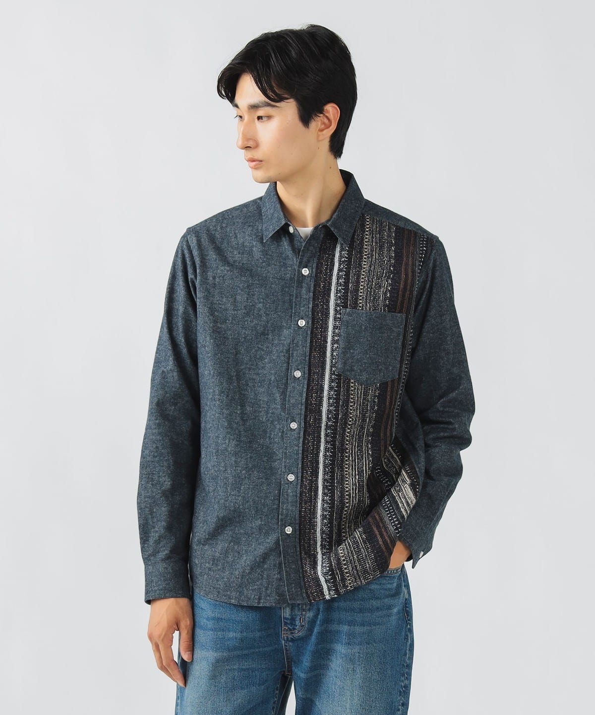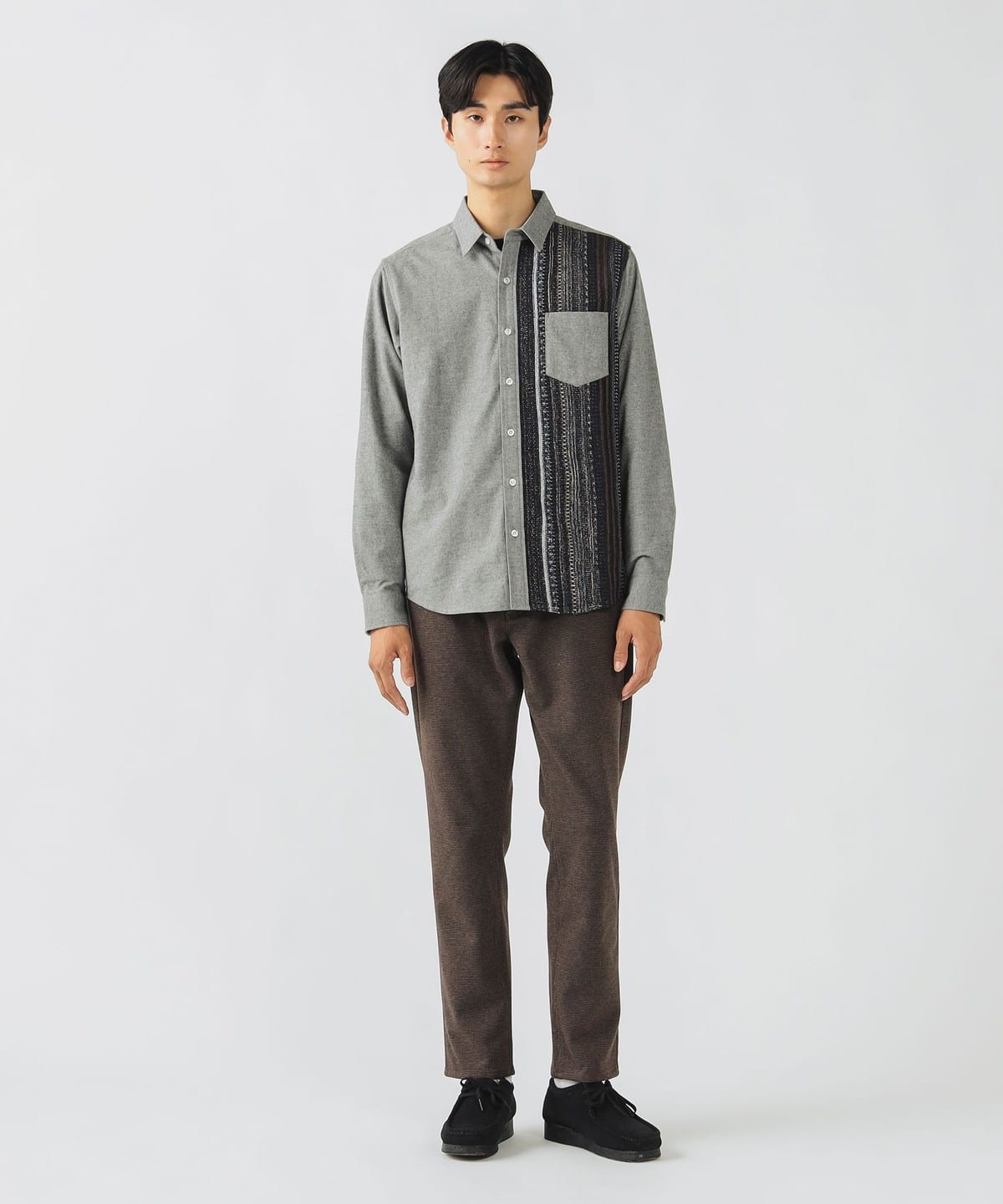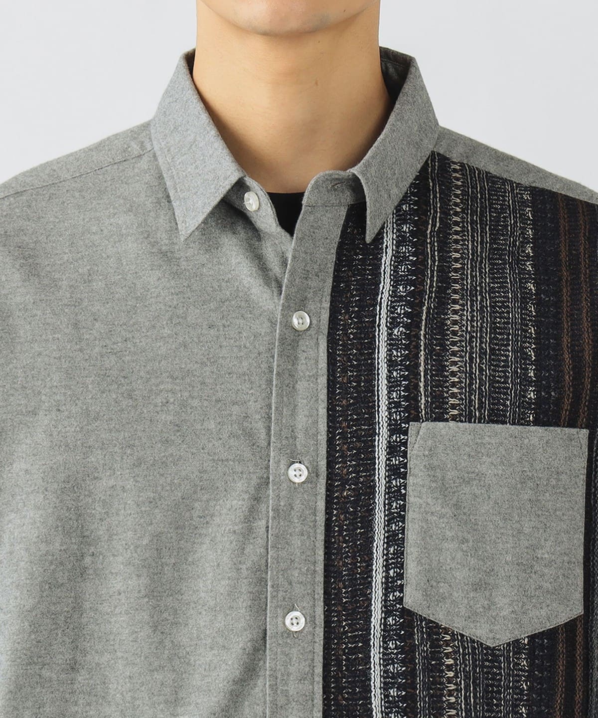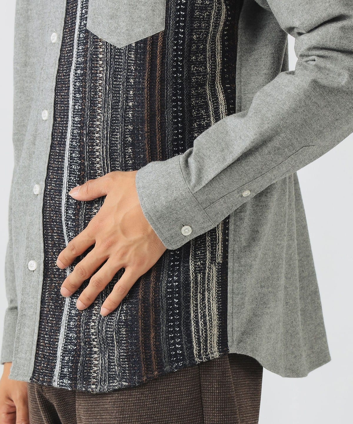 코튼 플란넬과 레트로 패턴 아크릴 자카드 니트 를 배색한 콤비 셔츠 입니다.