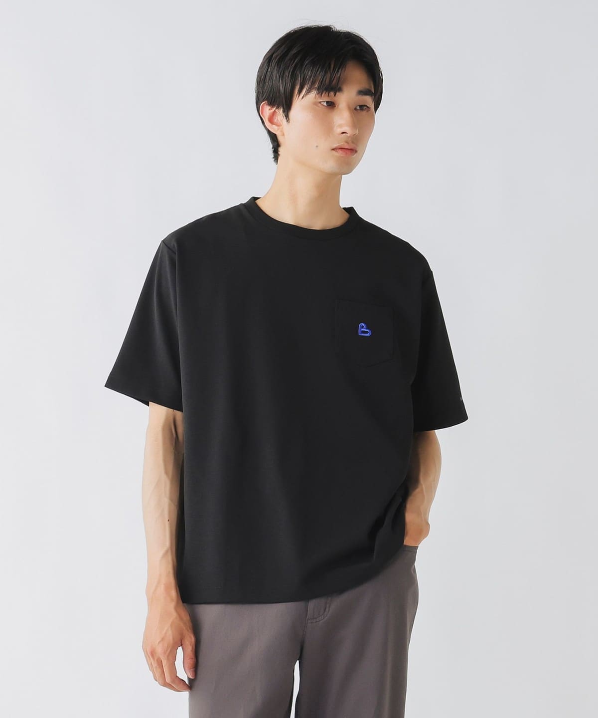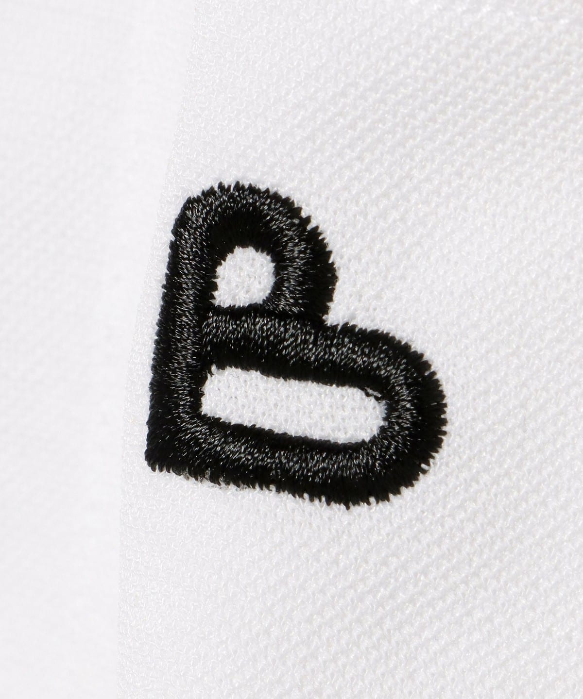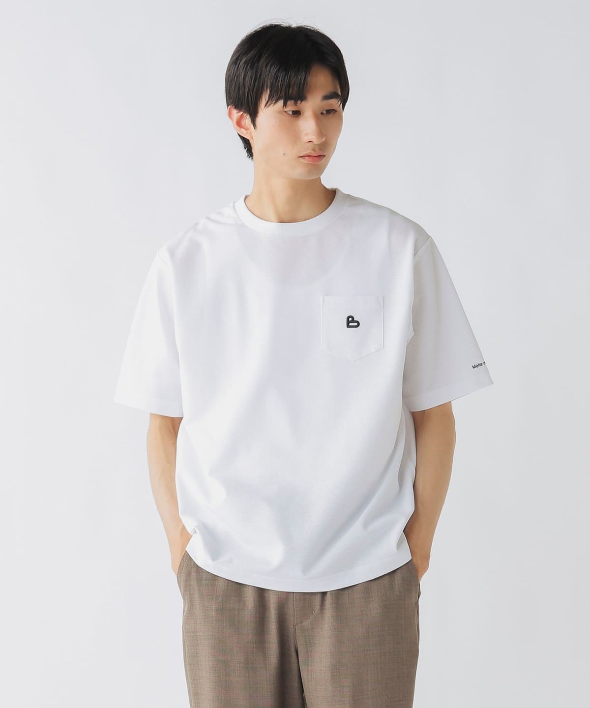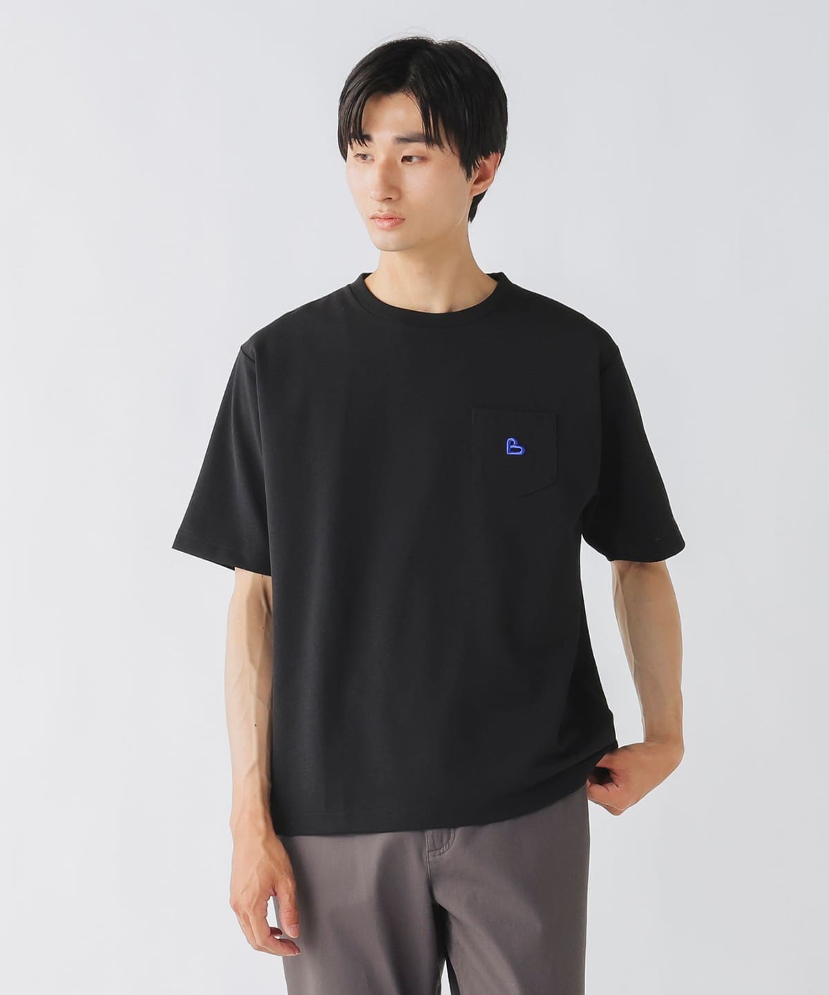 가슴에 B 또는 하트로 보이는 아이콘 자수가 들어간 반팔 티셔츠입니다. 적당한 여유가 있는 릴랙스 핏으로, 밸런스 잡기 쉬운 베이직한 실루엣입니다.