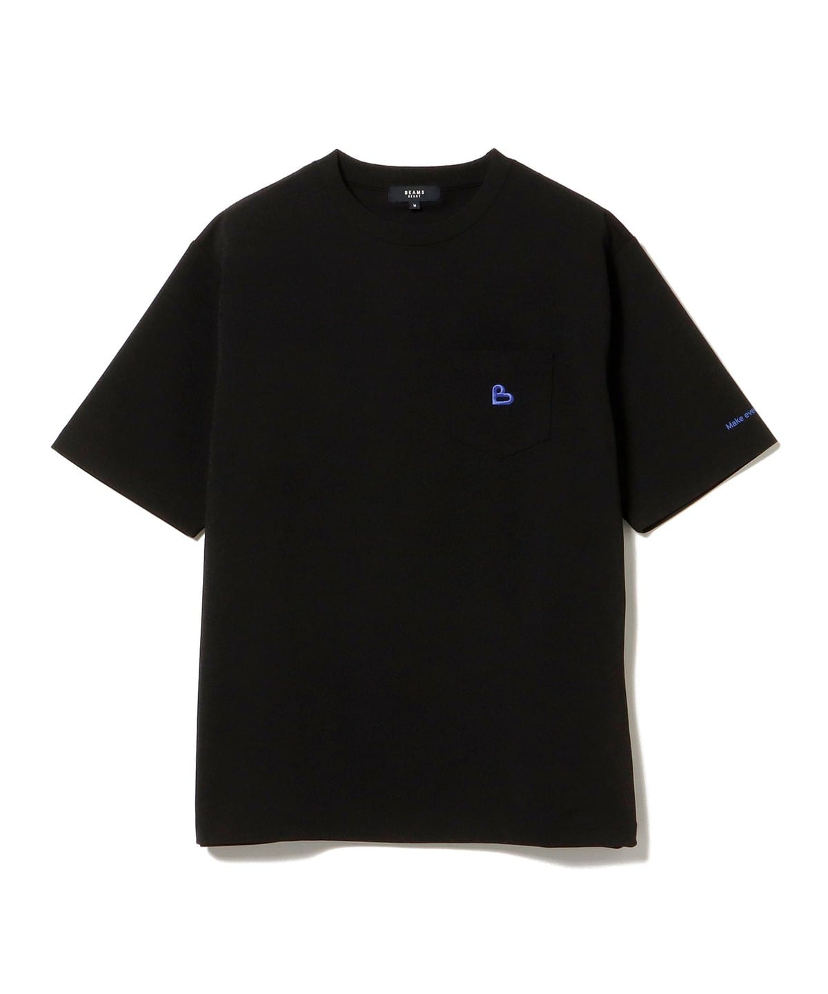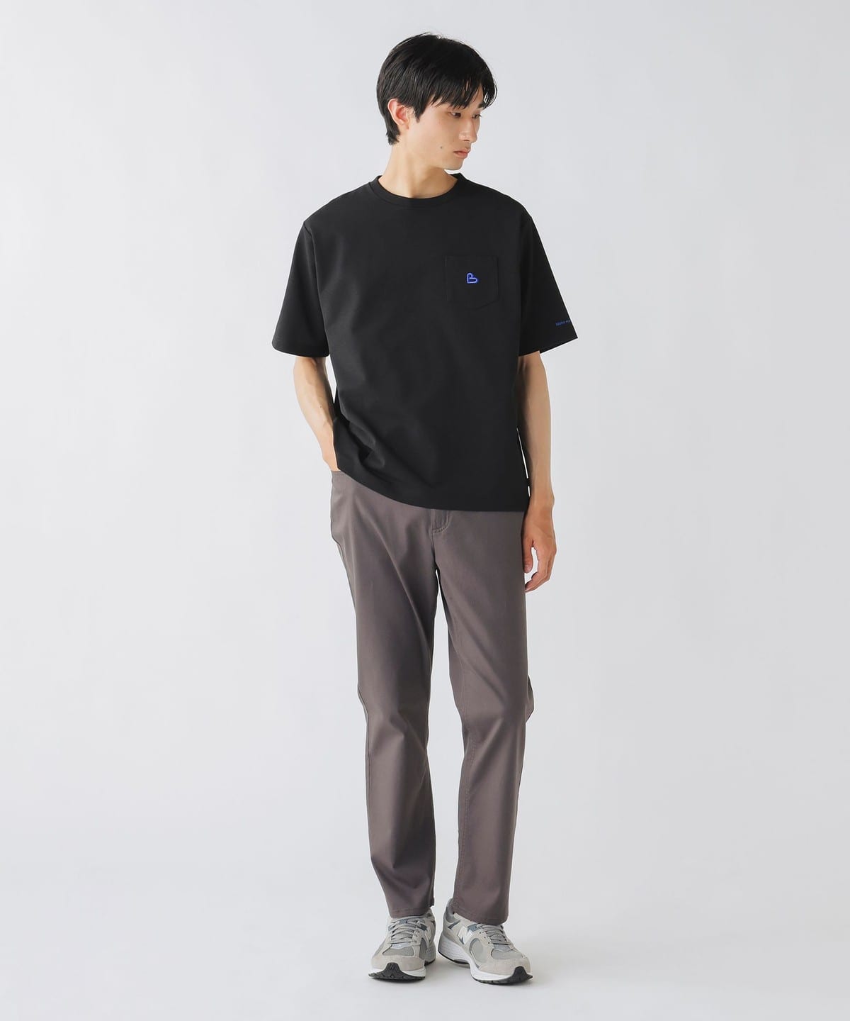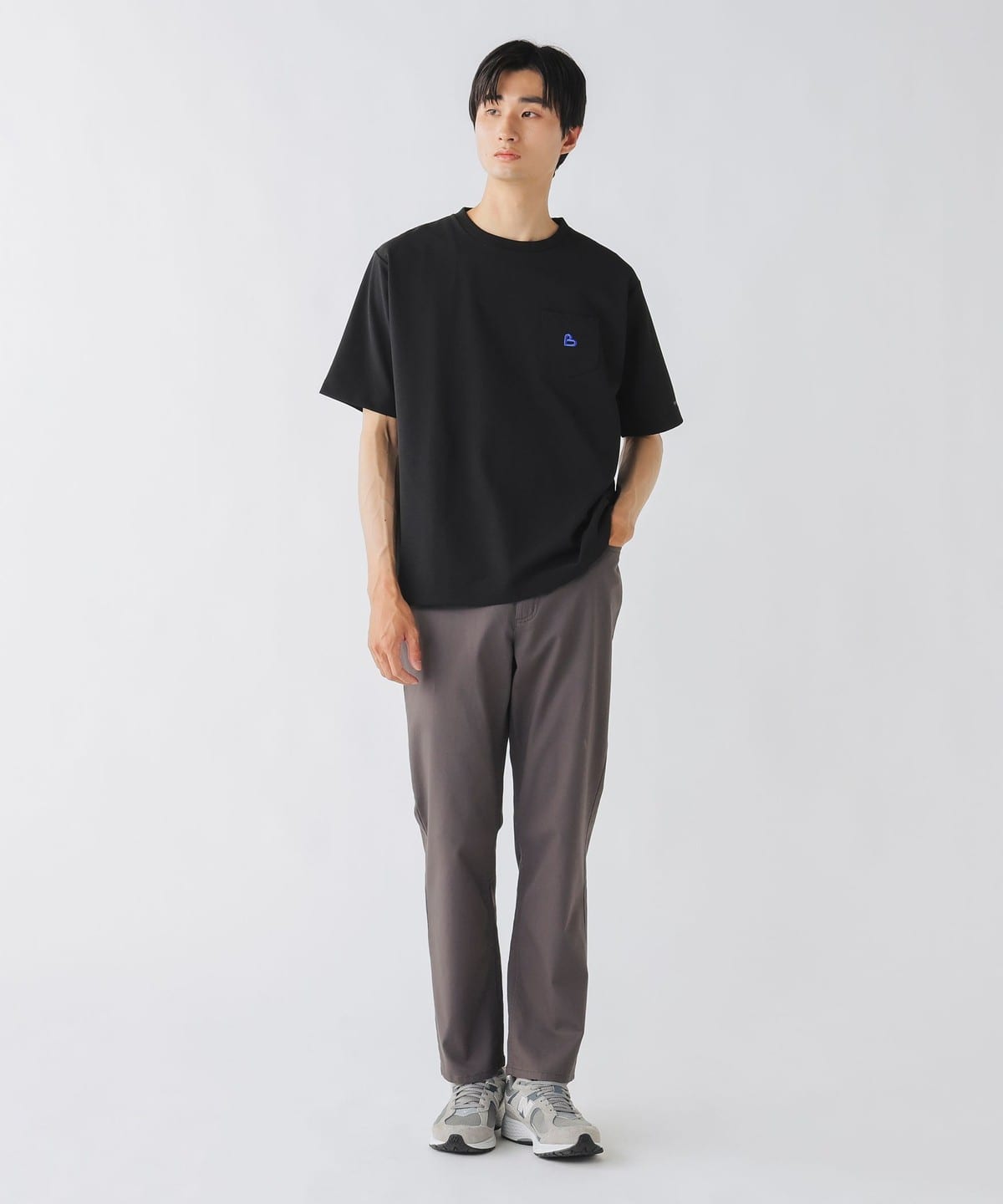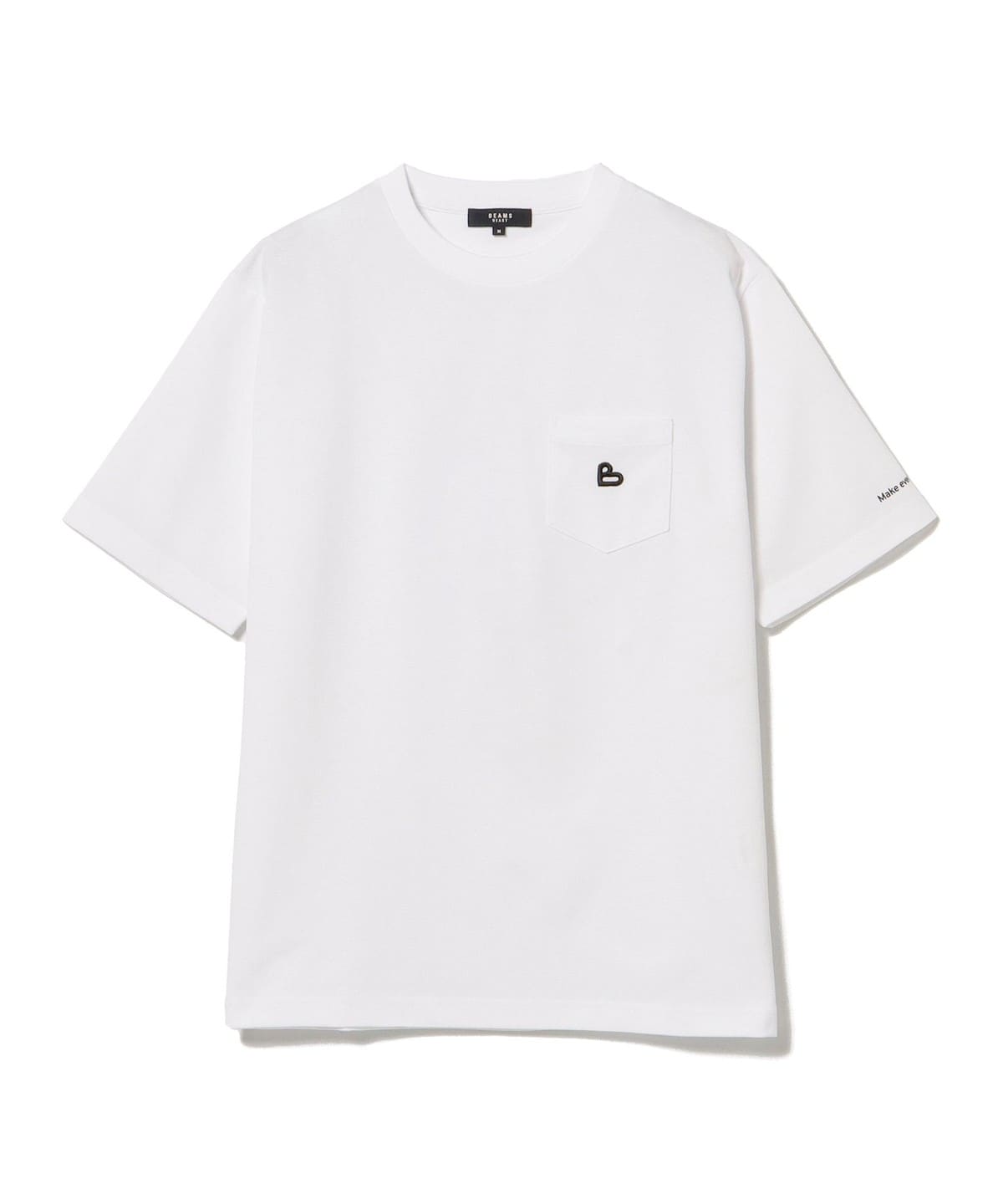 가슴에 B 또는 하트로 보이는 아이콘 자수가 들어간 반팔 티셔츠입니다. 적당한 여유가 있는 릴랙스 핏으로, 밸런스 잡기 쉬운 베이직한 실루엣입니다.
