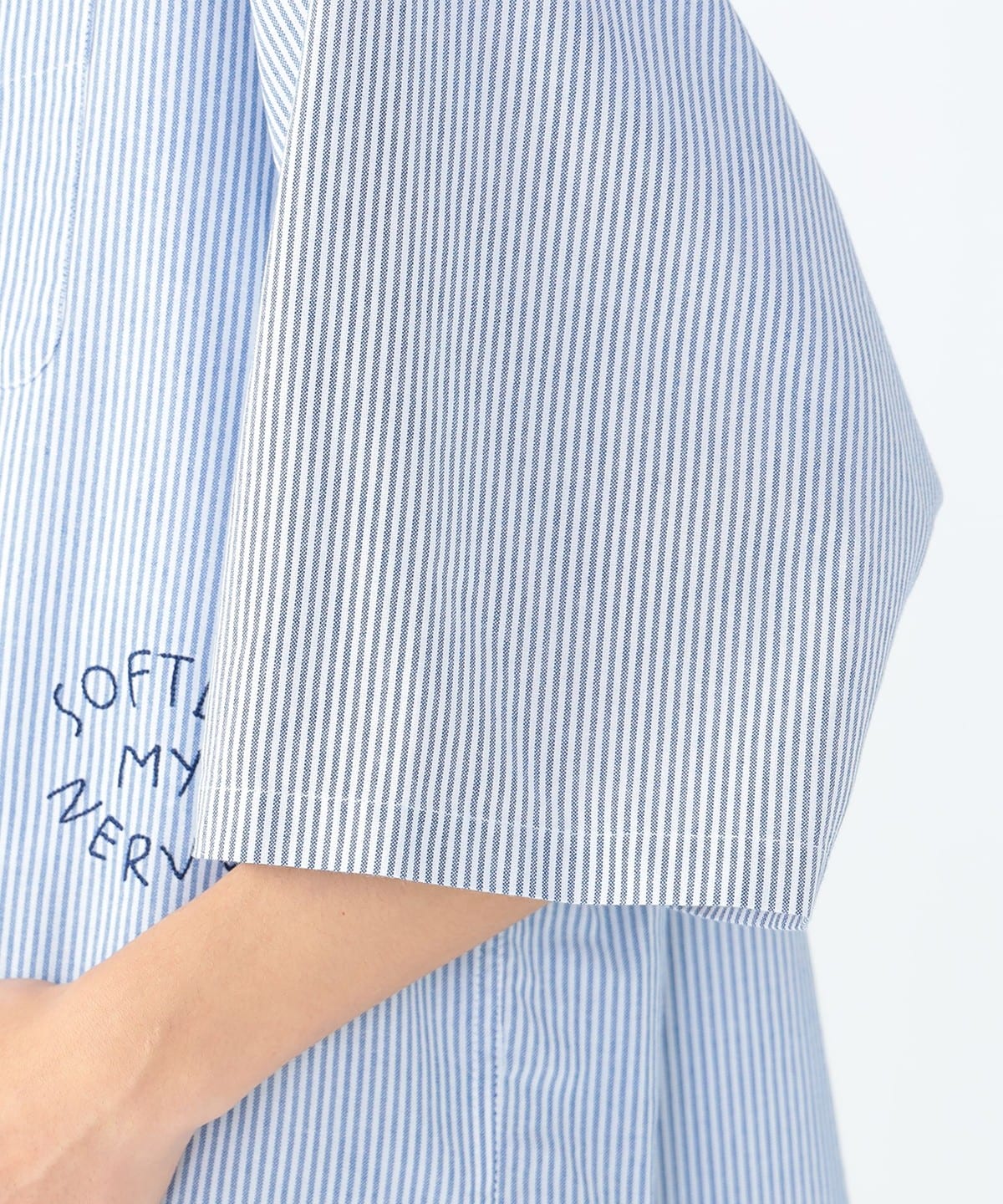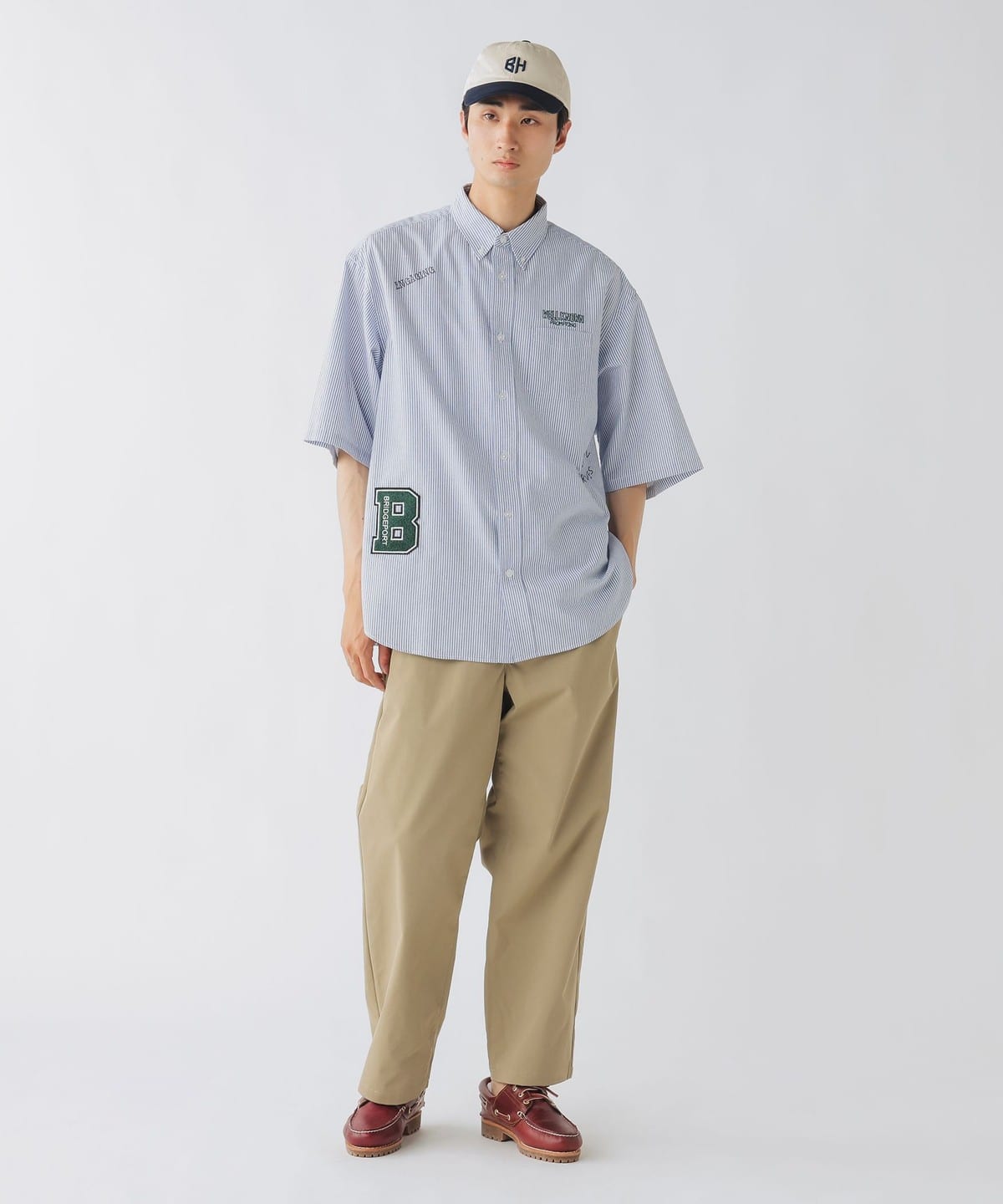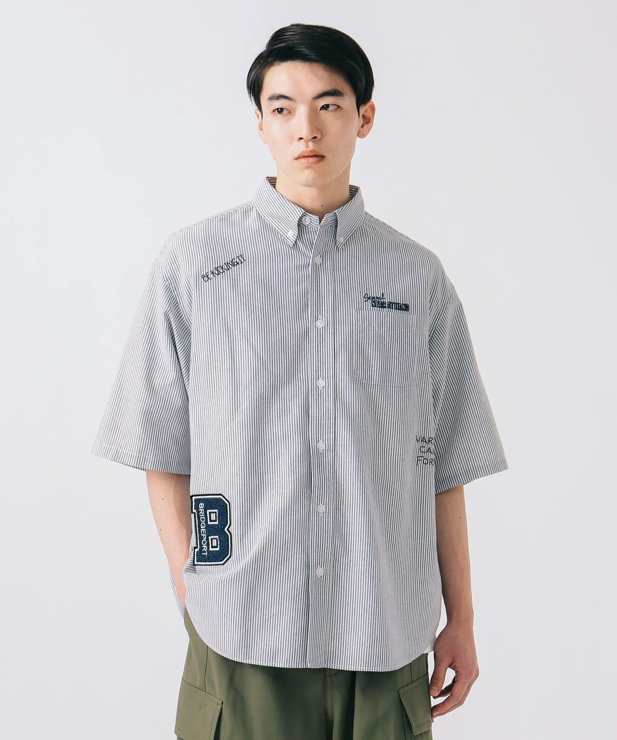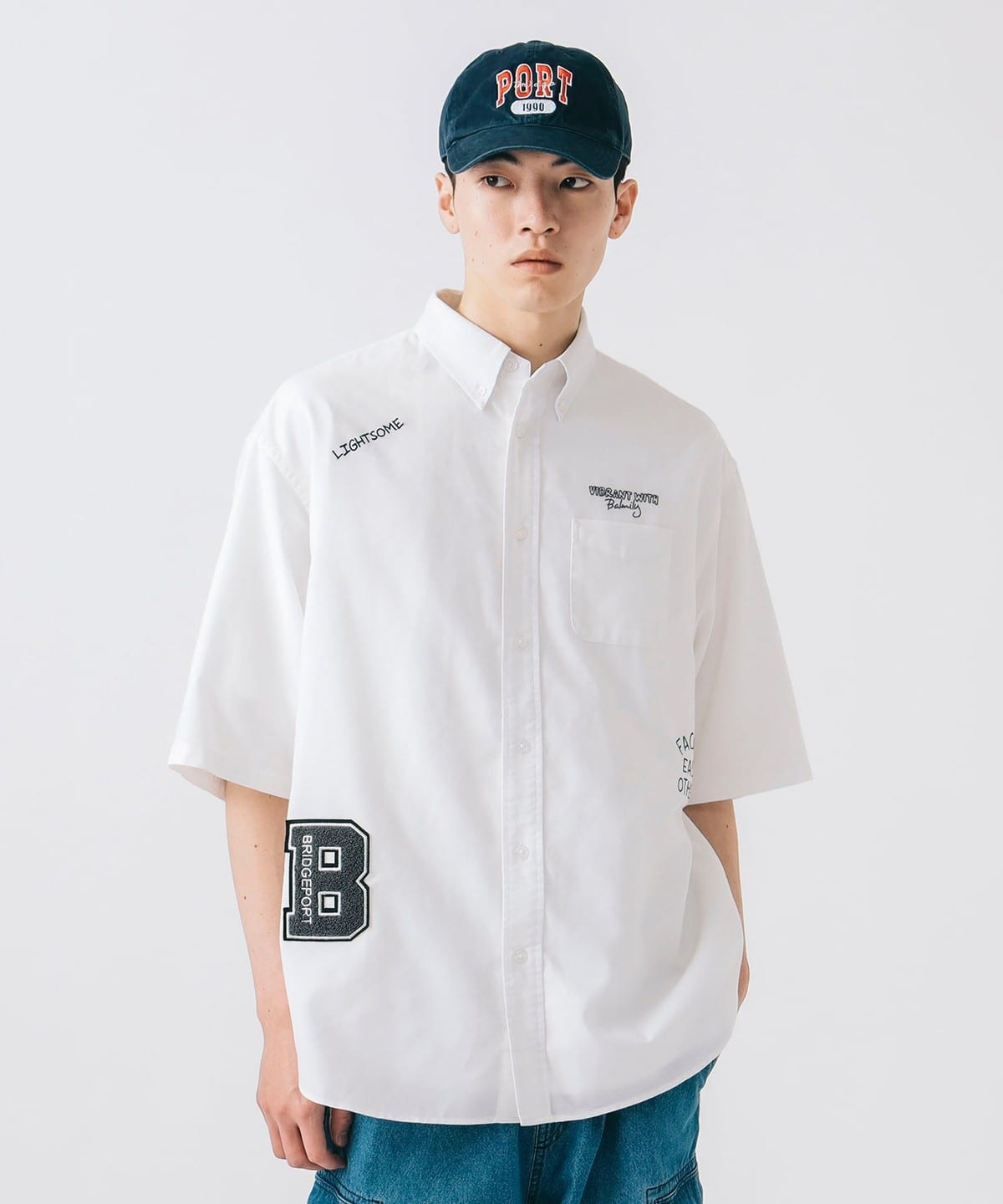 레터링 자수 패치와 다양한 자수 장식이 시선을 끄는 반소매 옥스포드 셔츠입니다. 빈티지 메모리얼 재킷에서 착안한 랜덤 자수 디자인으로 위트 있는 개성을 더했습니다. 고급스러운 광택과 탄력 있는 T/C 옥스포드 원단을 사용했습니다.