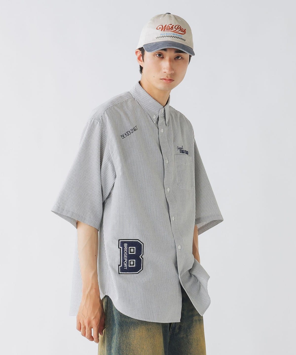 빔즈 플러스 반팔 워크 셔츠 스트라이프 38-01-0058-388