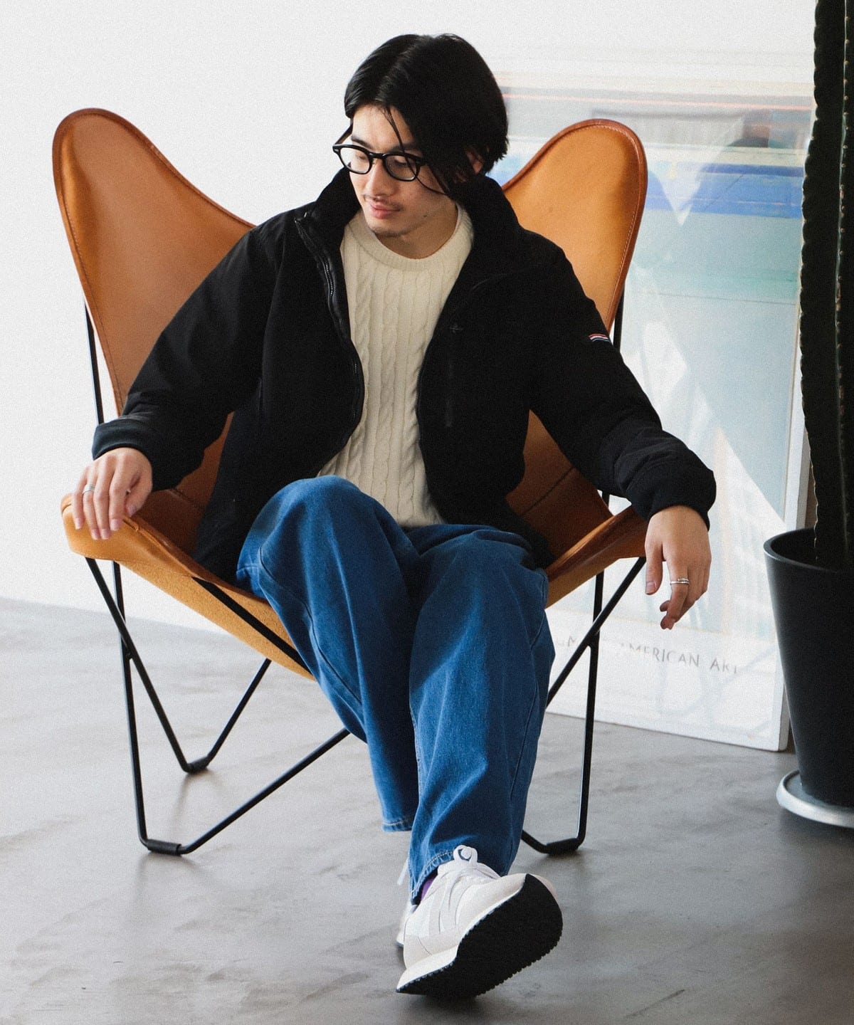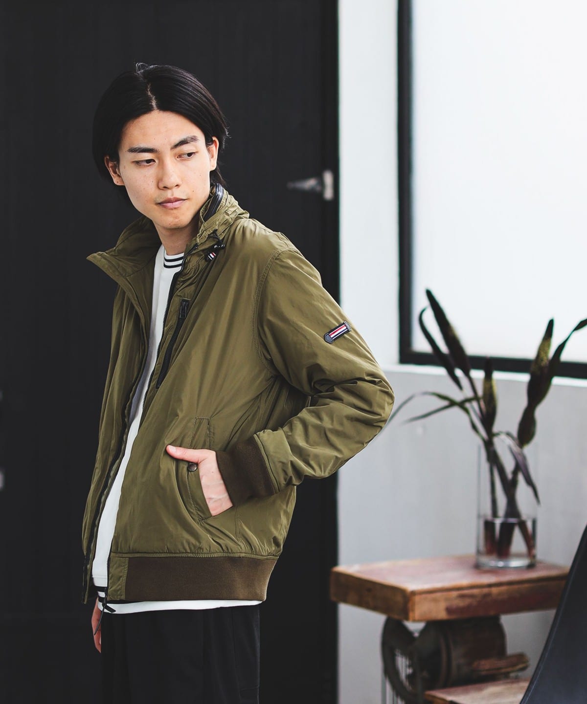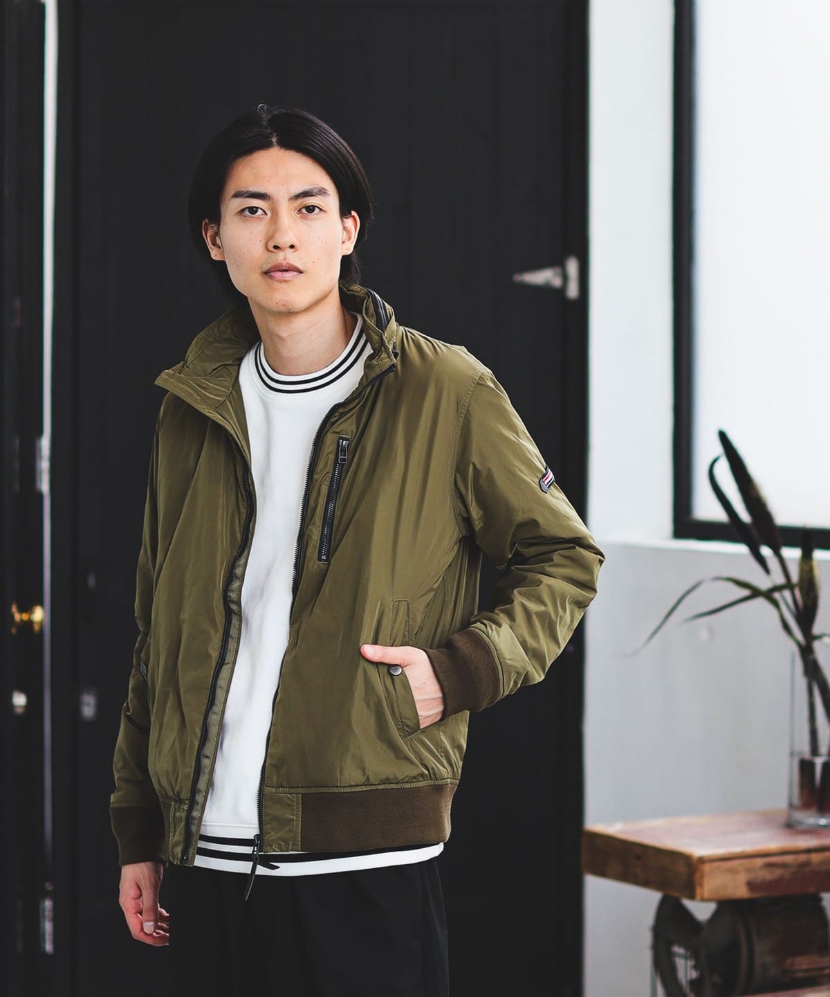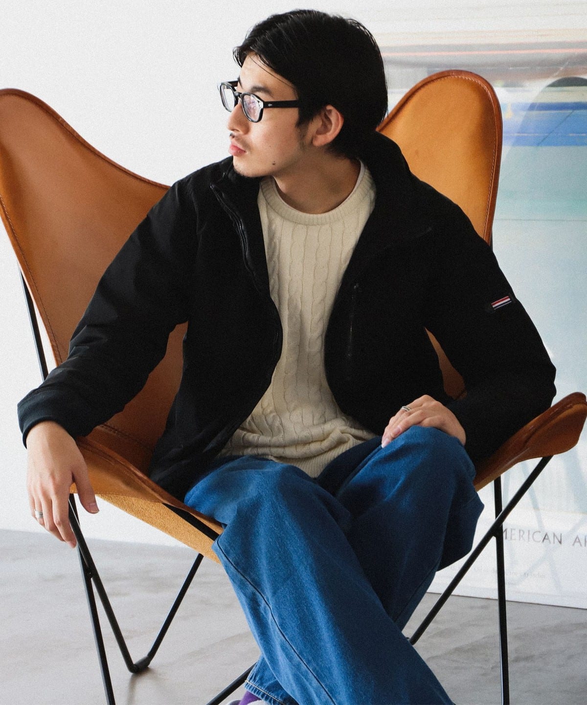 독특한 탄력과 탄력을 가진 볼륨 넥 블루종. 심플한 디자인이지만, 옷깃 안쪽과 옷자락 부분의 골지 안쪽은 배색으로 안감을 덧대고 미묘한 포인트가 되고 있습니다.