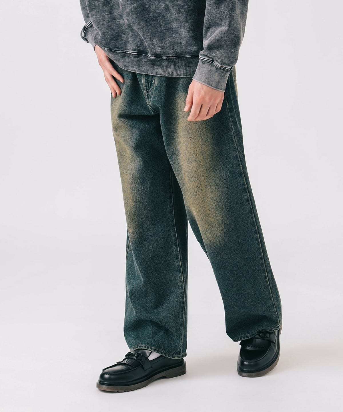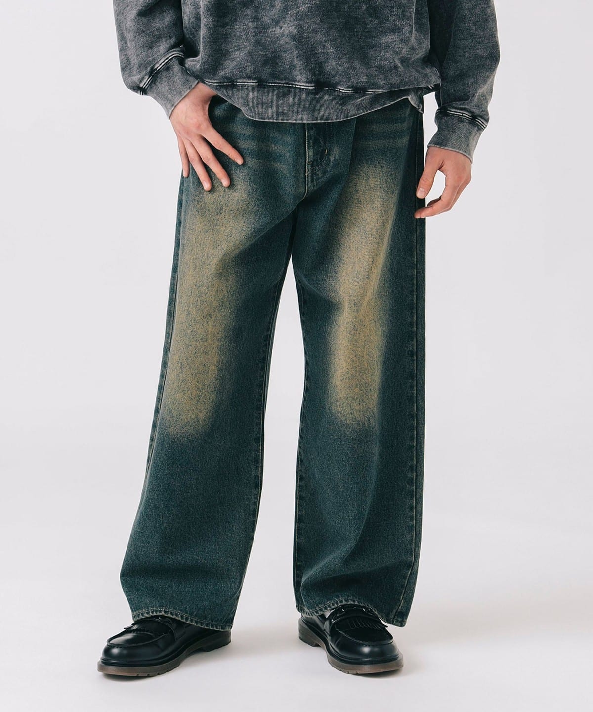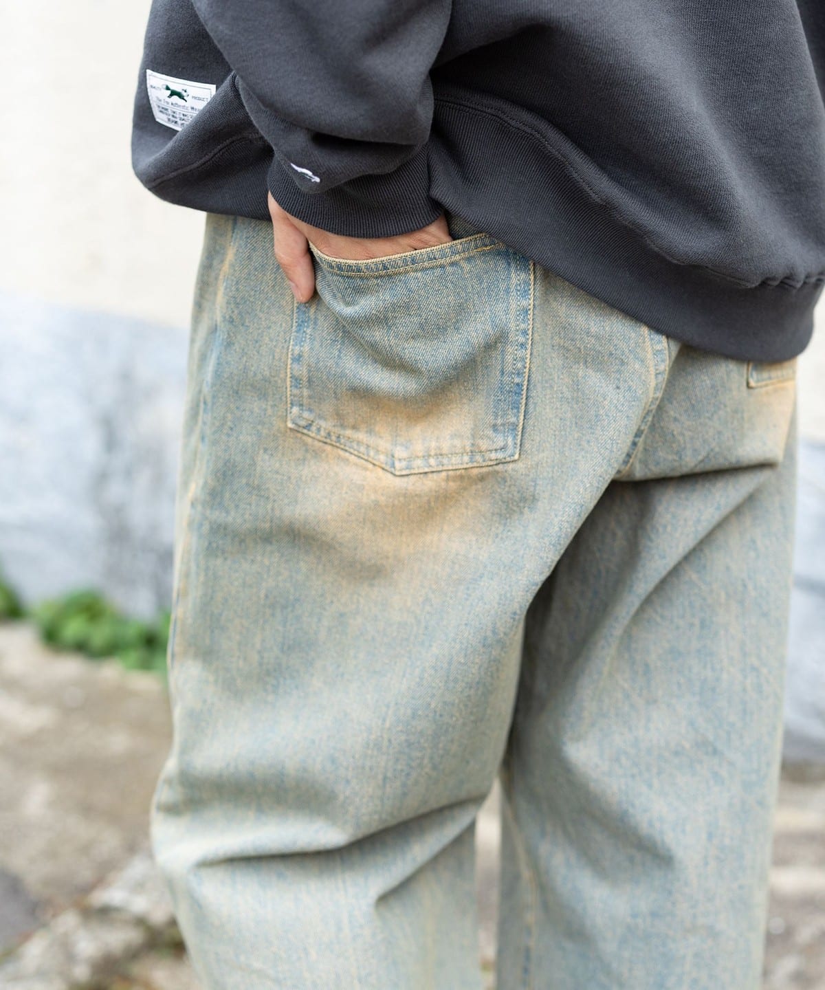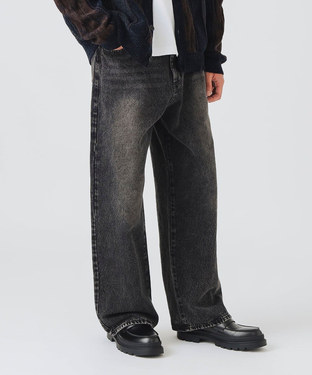 허리부터 엉덩이는 컴팩트한 저스트 사이즈, 허벅지부터 밑단에 걸쳐 와이드 스트레이트 실루엣이 특징입니다. 적당한 두께의 데님 소재를 사용하여 쾌적한 착용감과 내구성을 겸비했습니다.