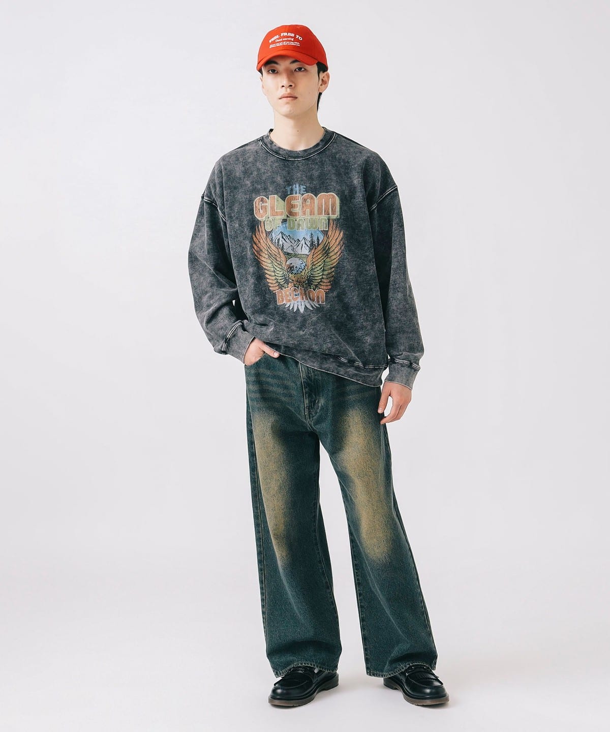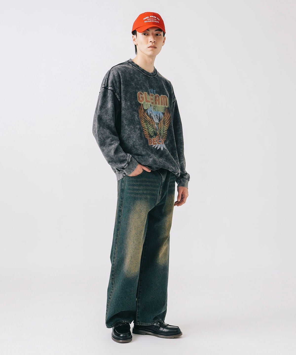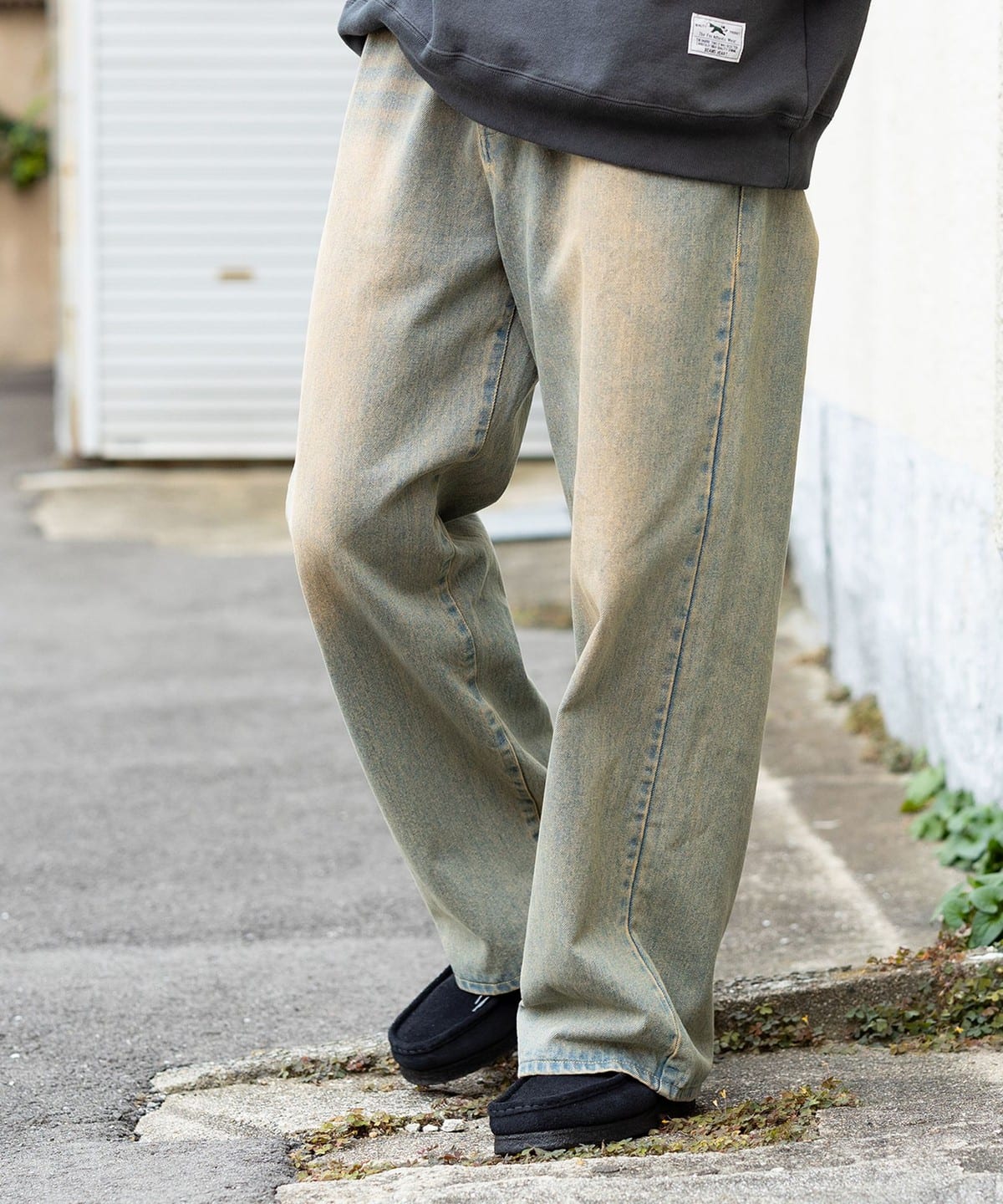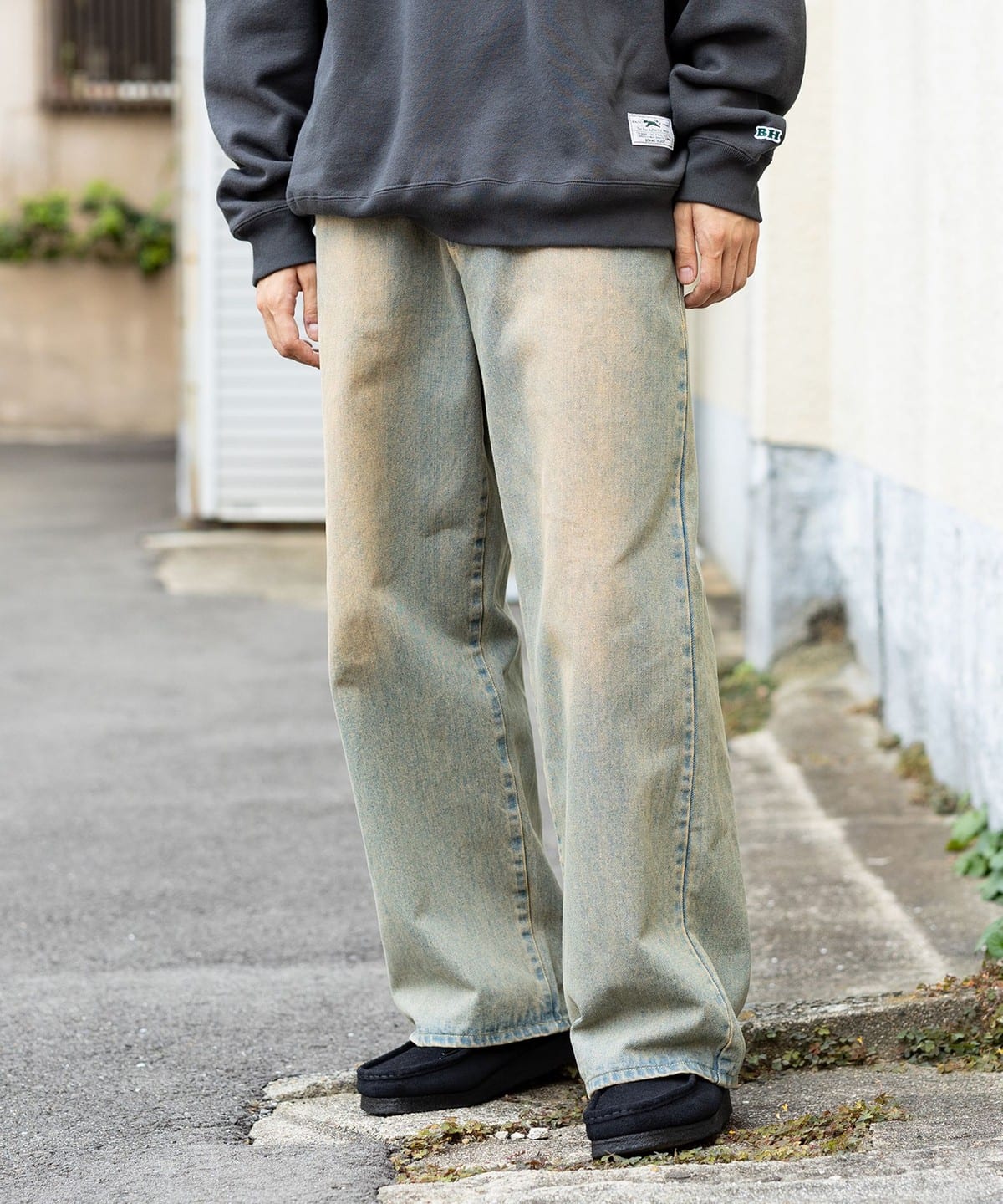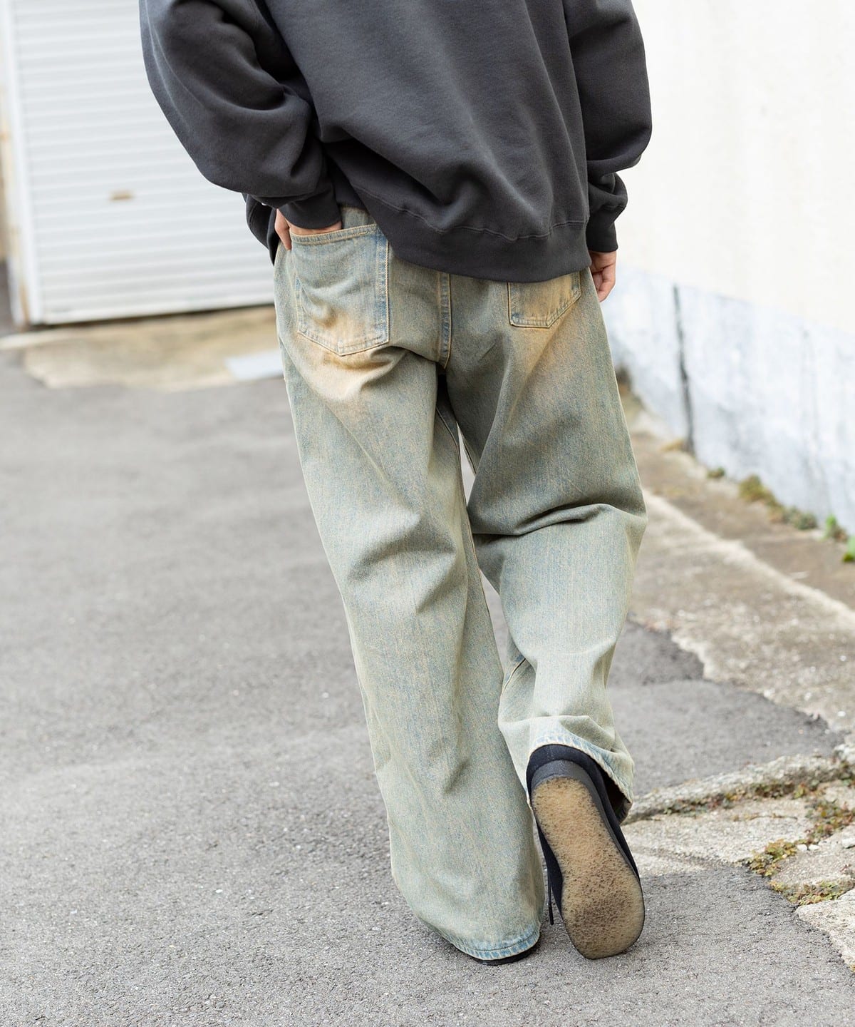 허리부터 엉덩이는 컴팩트한 저스트 사이즈, 허벅지부터 밑단에 걸쳐 와이드 스트레이트 실루엣이 특징입니다. 적당한 두께의 데님 소재를 사용하여 쾌적한 착용감과 내구성을 겸비했습니다.