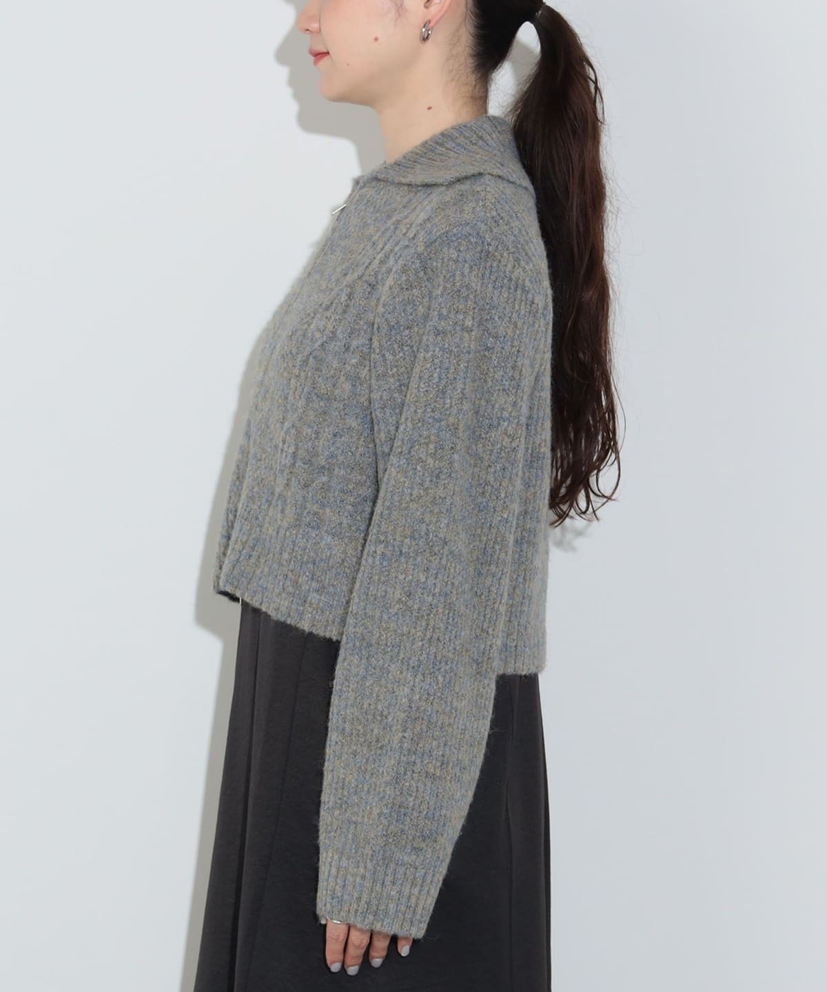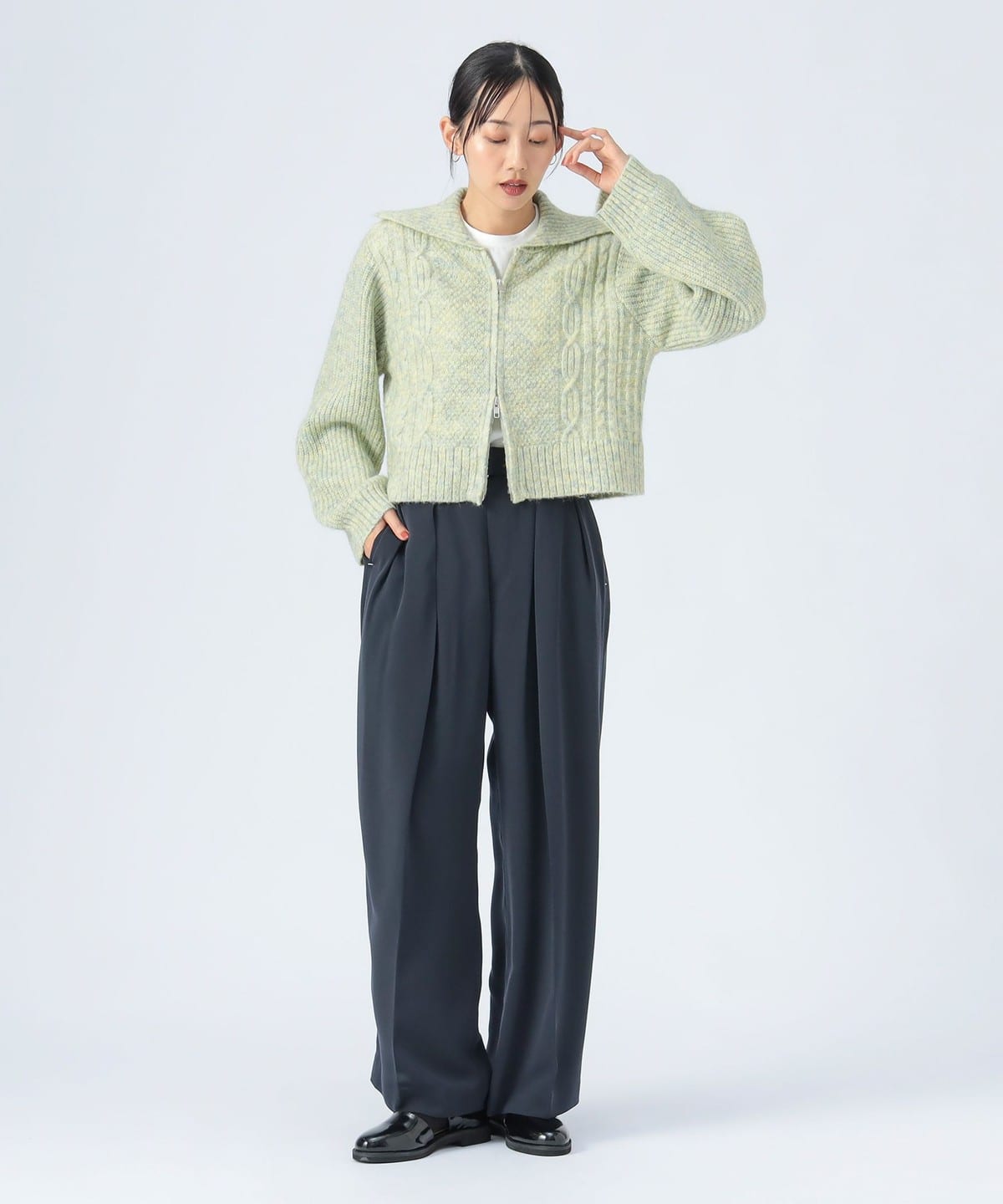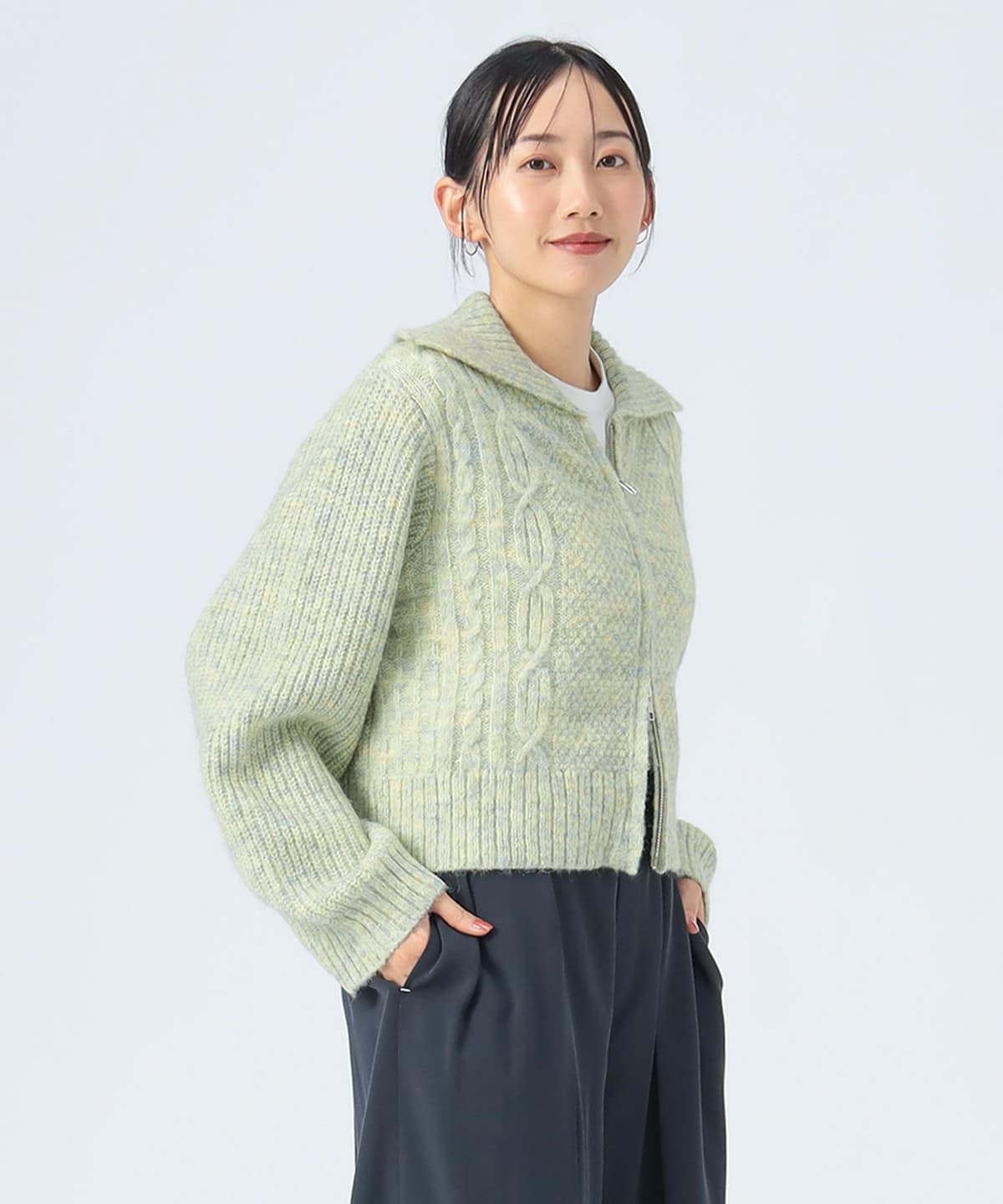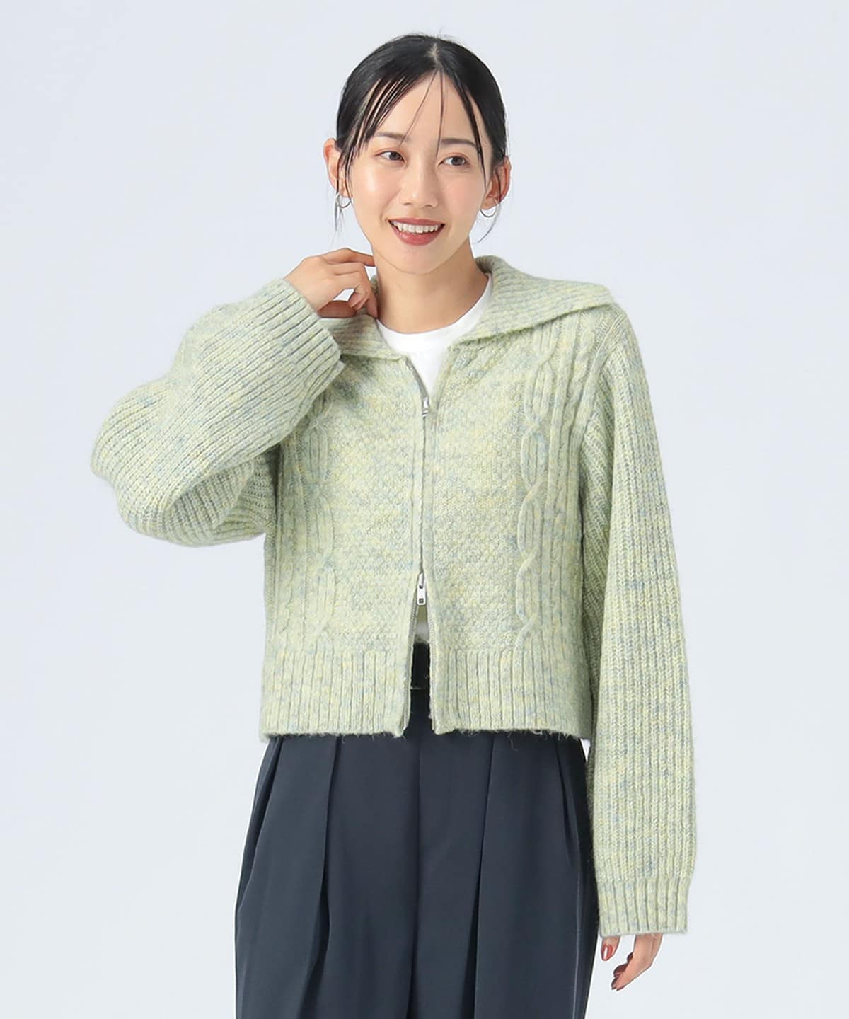 빔즈 하트 빅 칼라 더블 지퍼 니트 가디건