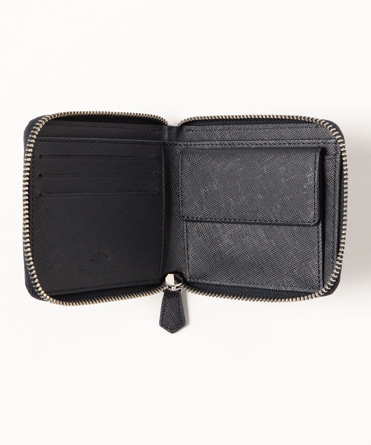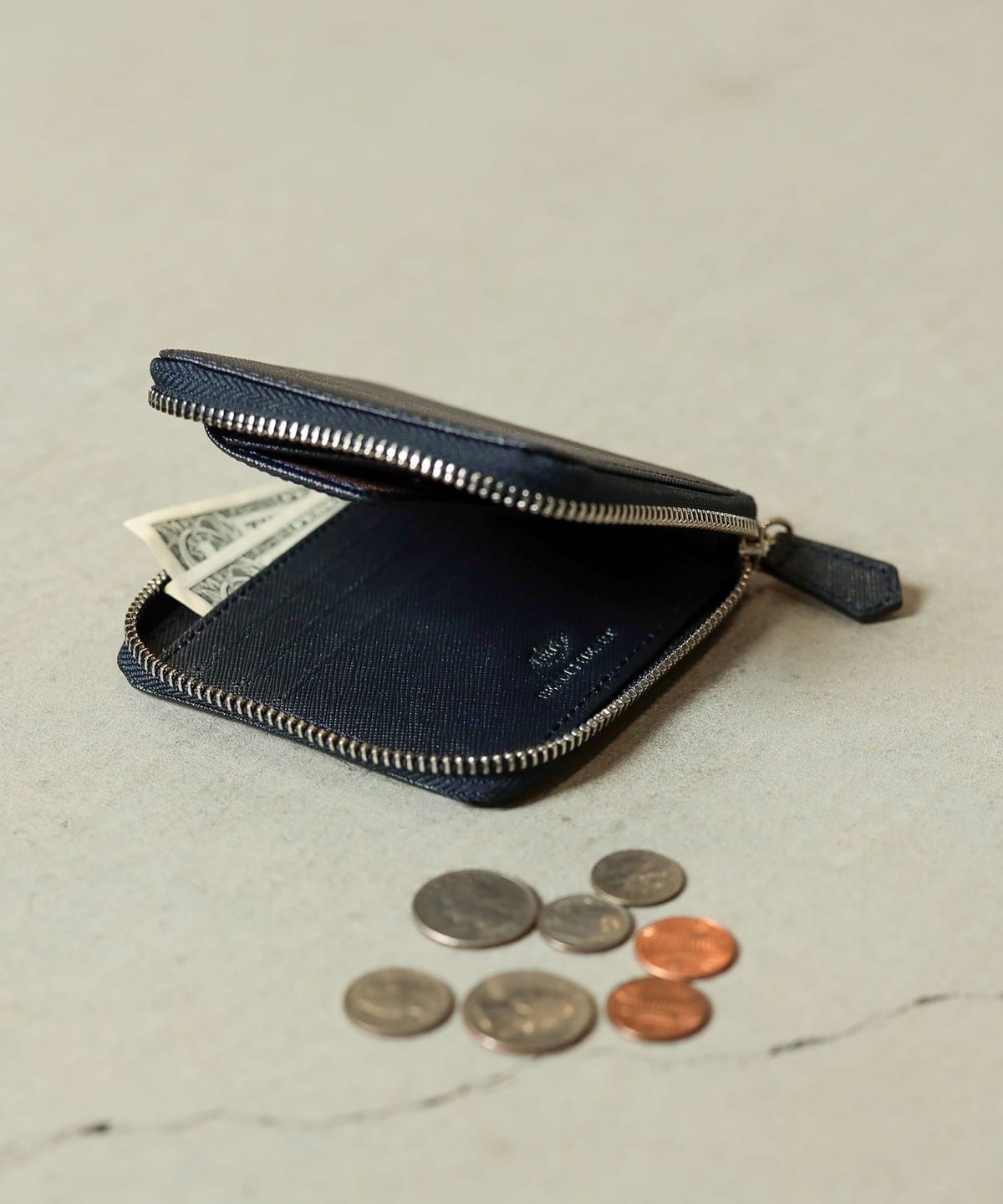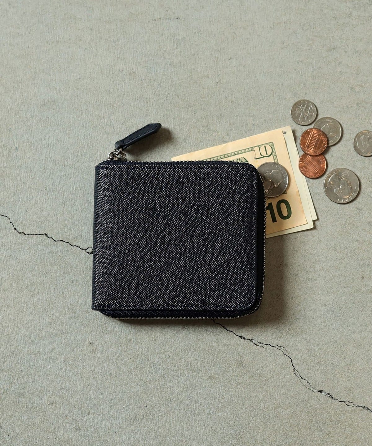 사피아노 가죽으로 만든 엠보싱 지퍼 지갑.