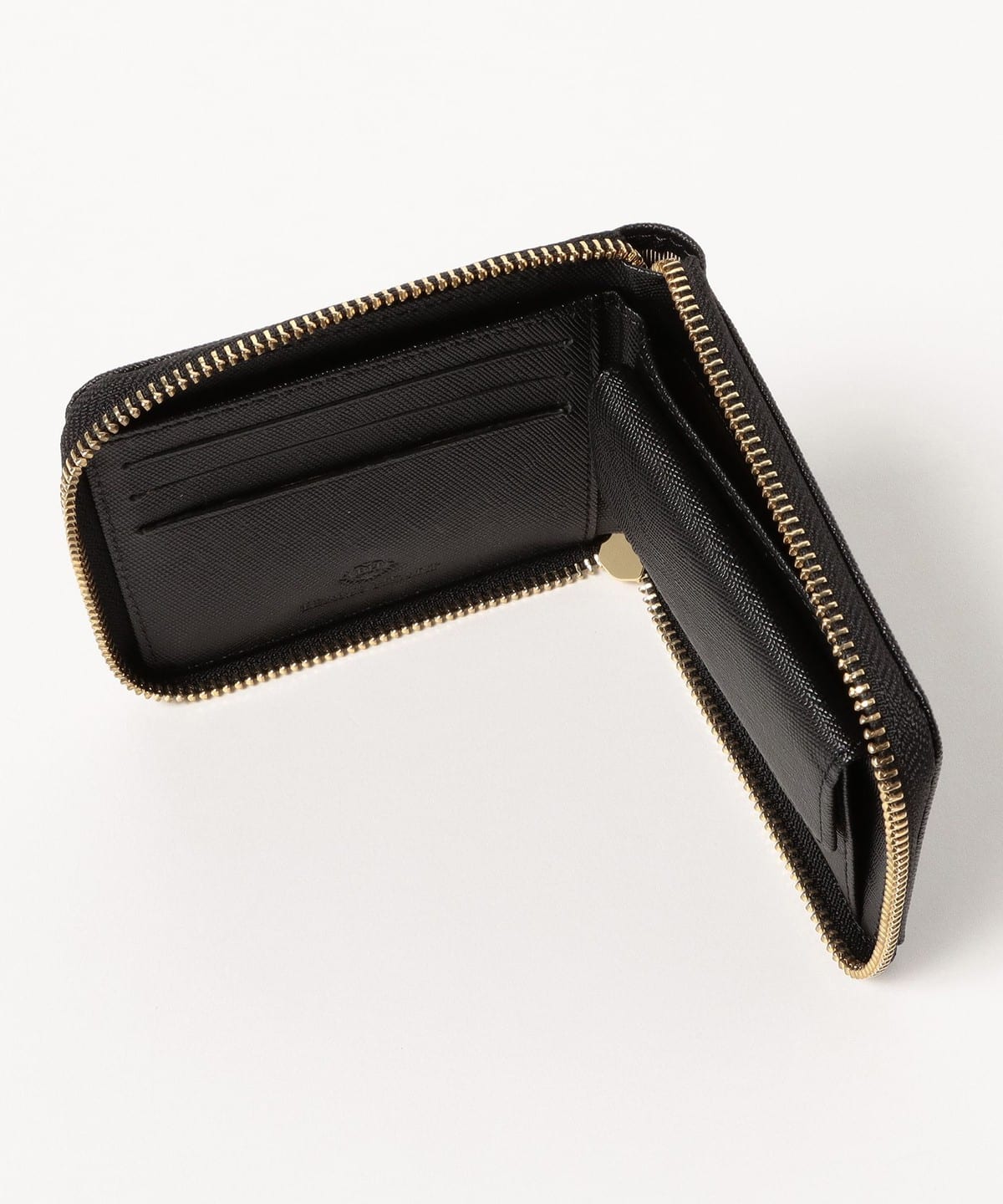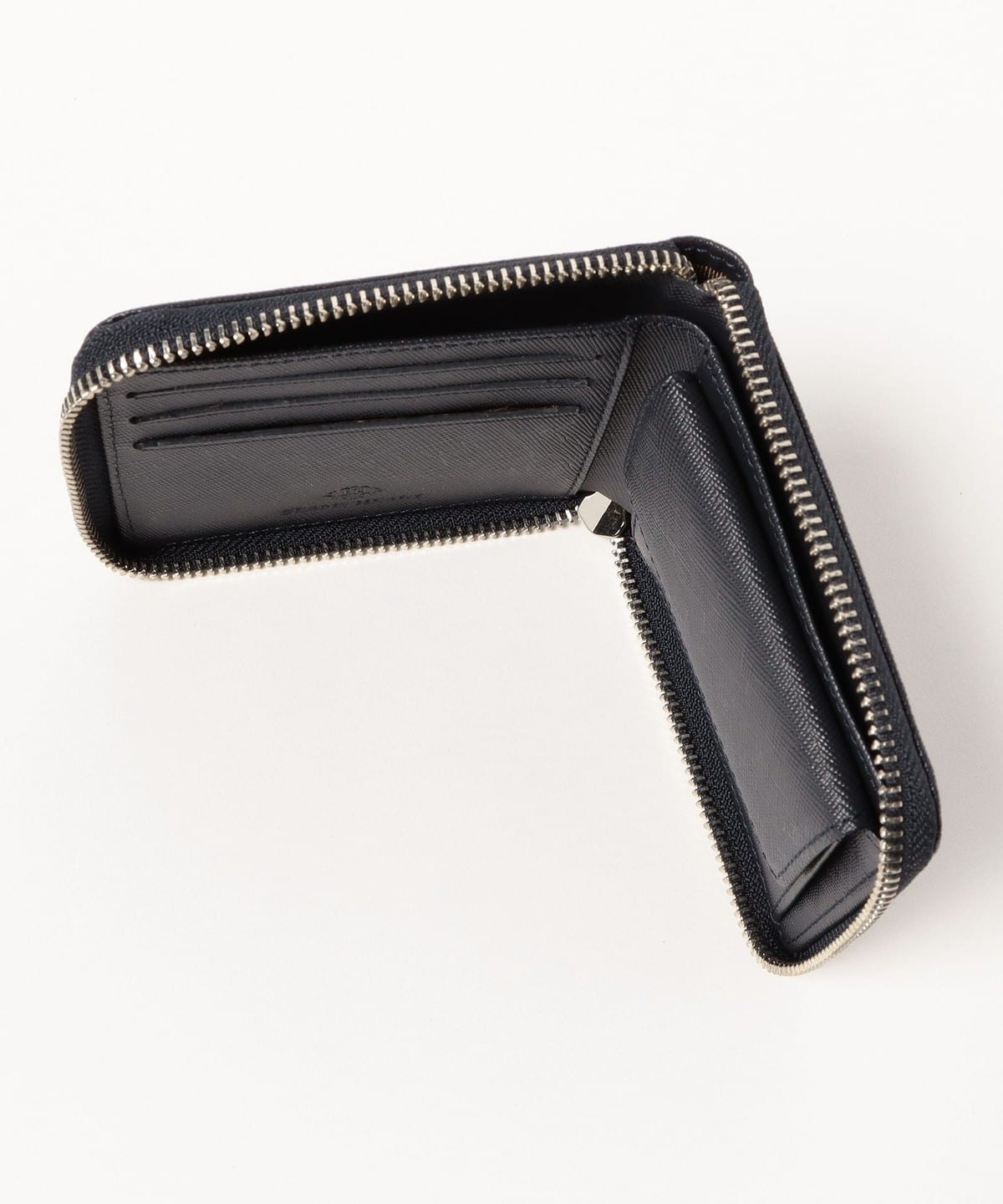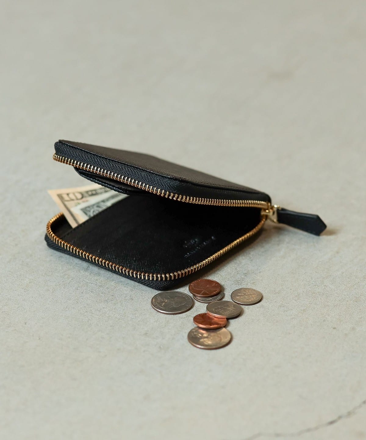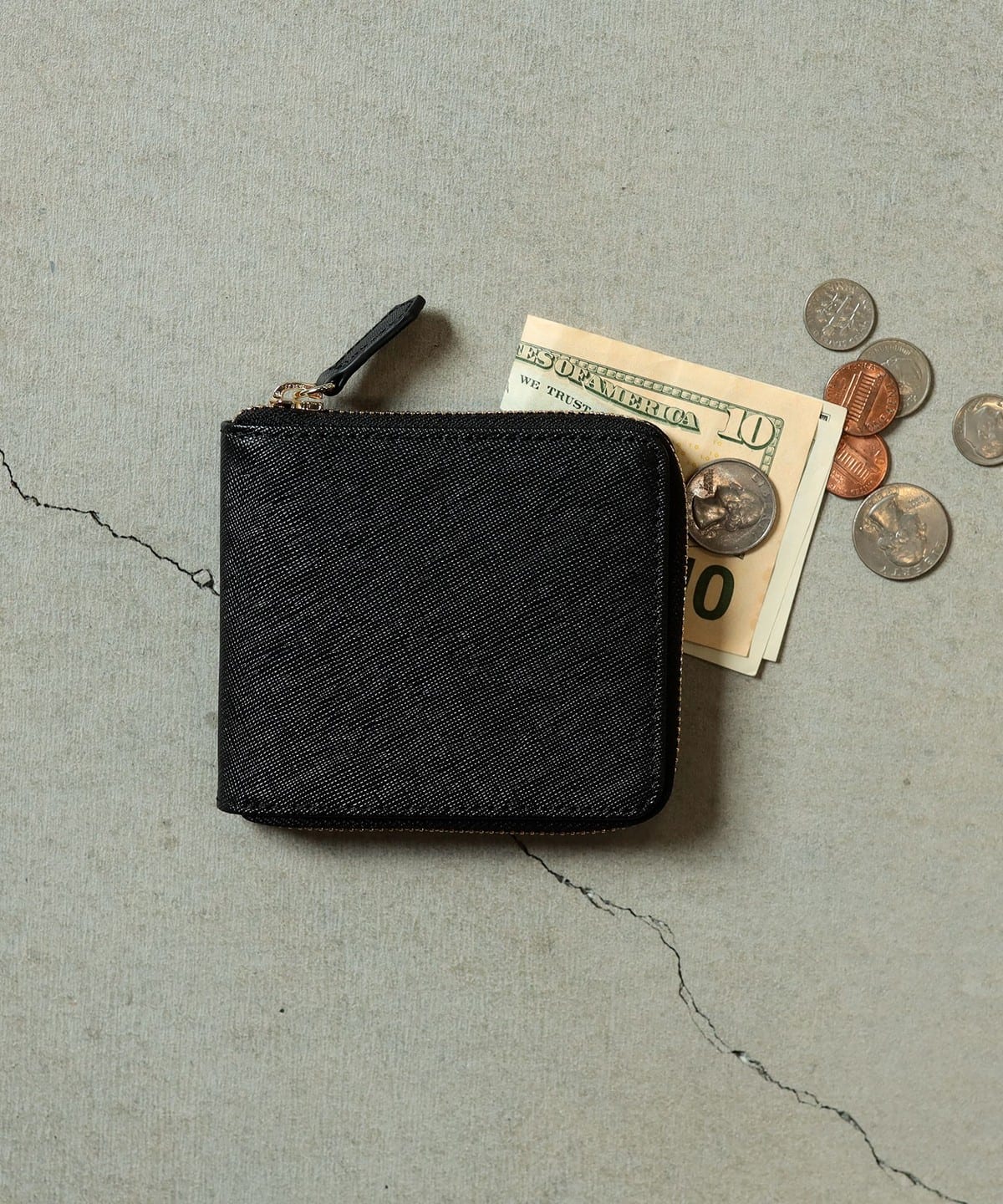사피아노 가죽으로 만든 엠보싱 지퍼 지갑.