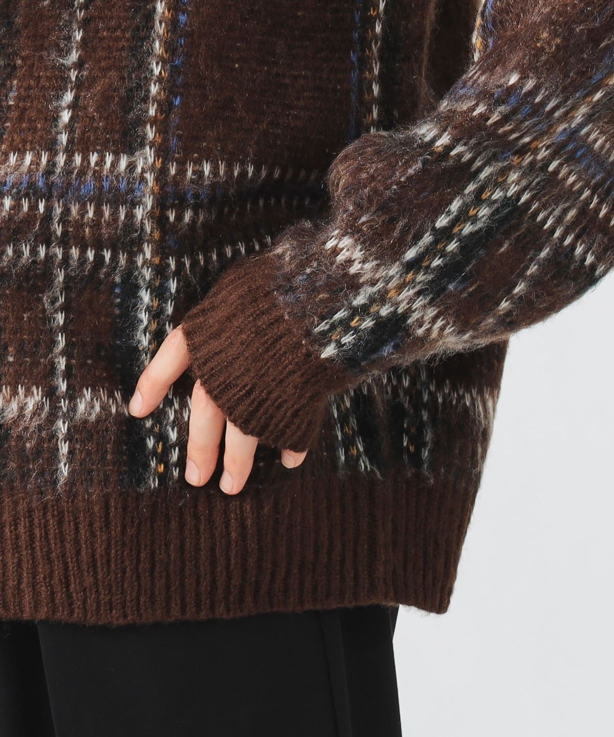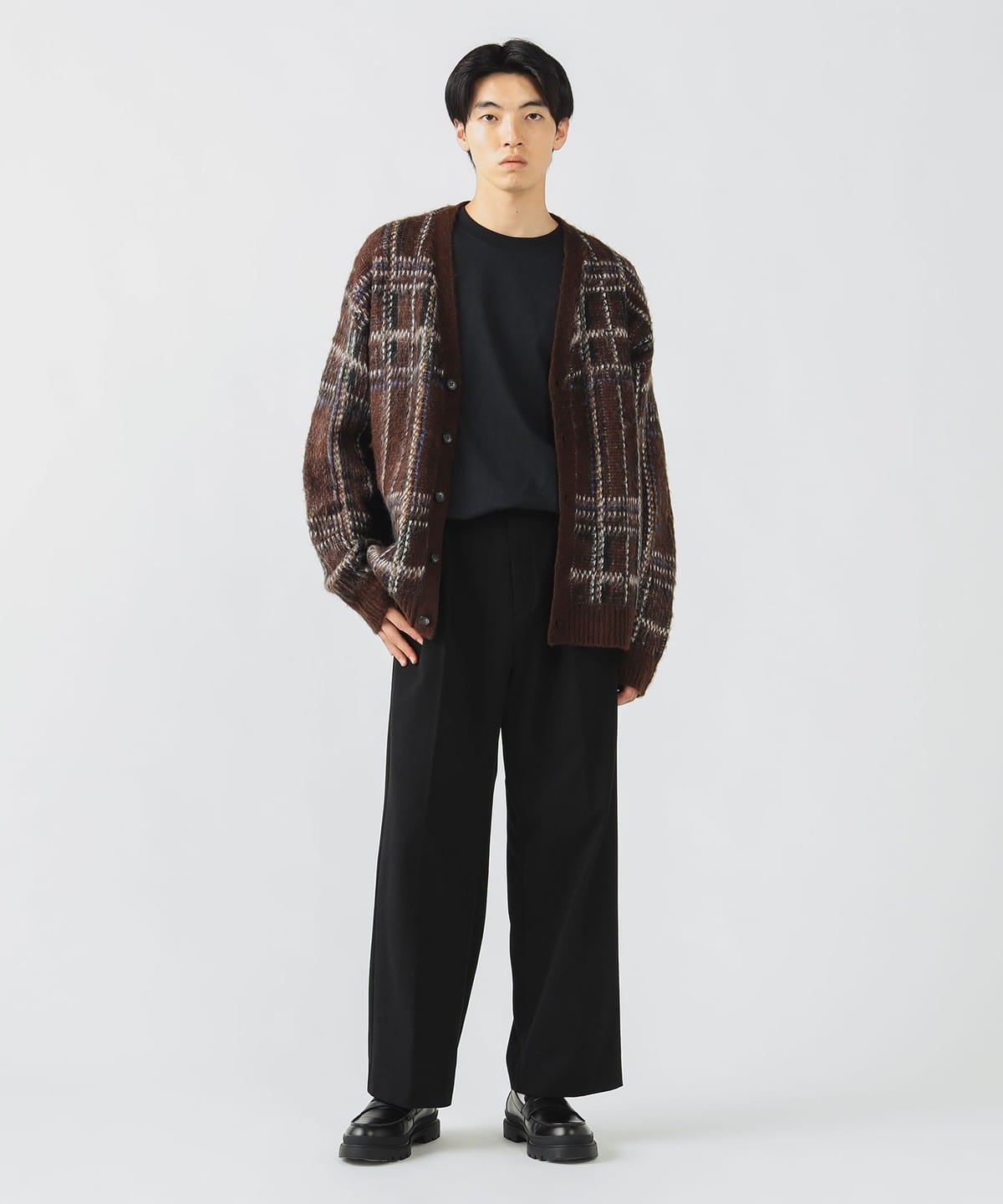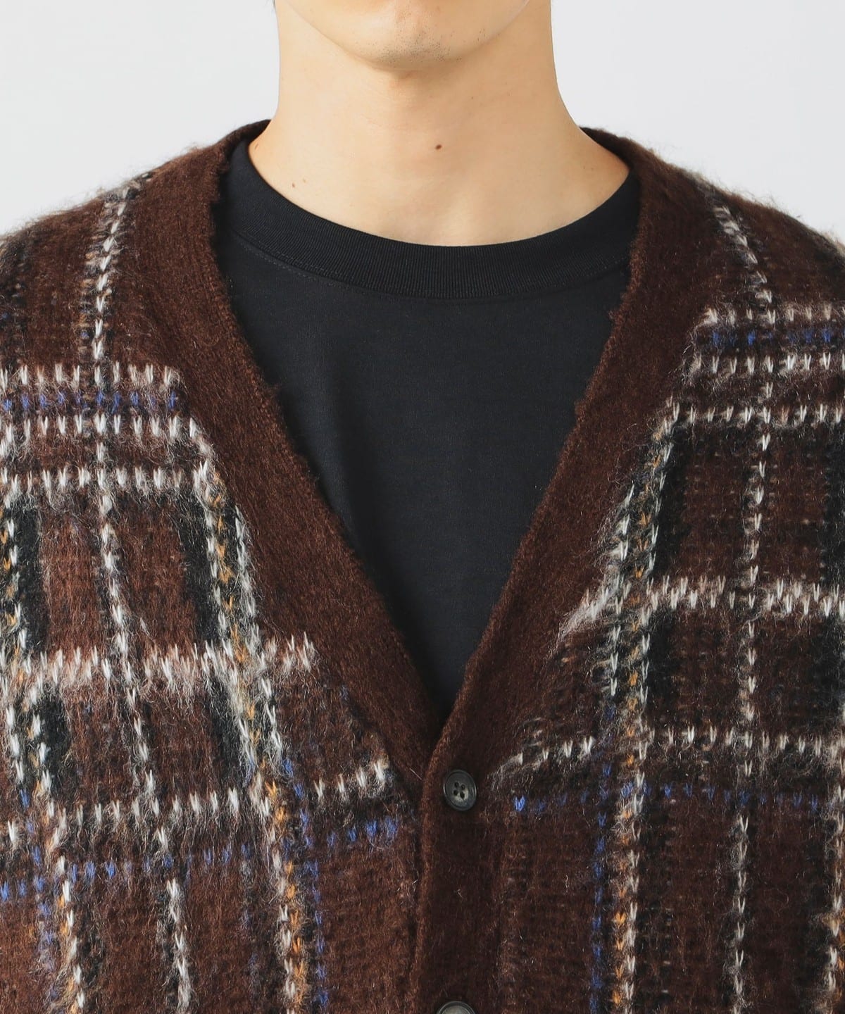 대담한 패턴이 시선을 사로잡는 V넥 카디건입니다. 부드럽고 보송한 샤기 터치의 아크릴 소재를 사용하여, 약간 도톰한 질감이 특징입니다.