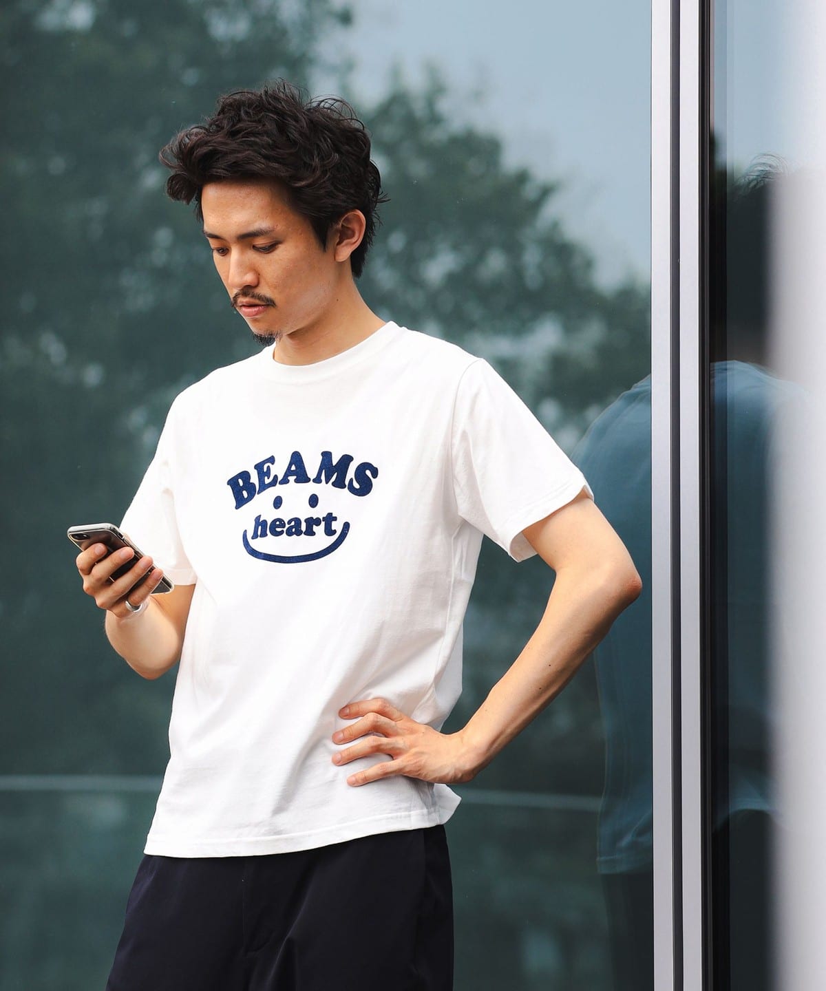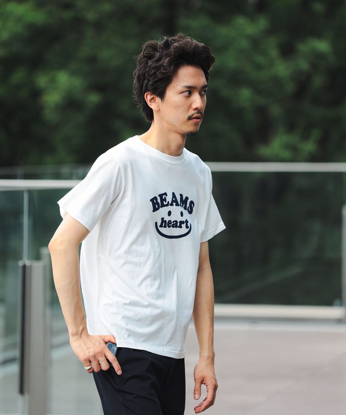 빔즈 하트의 클래식 스마일 로고가 프린트된 티셔츠.