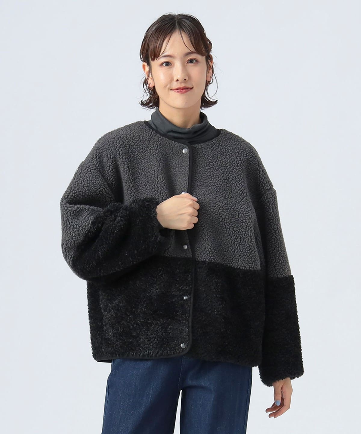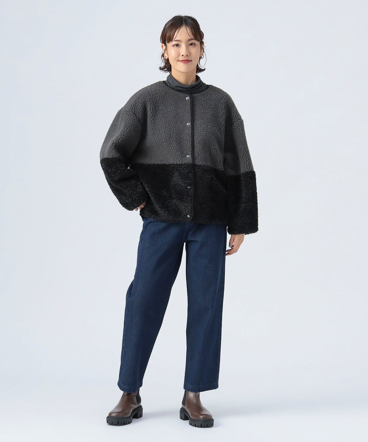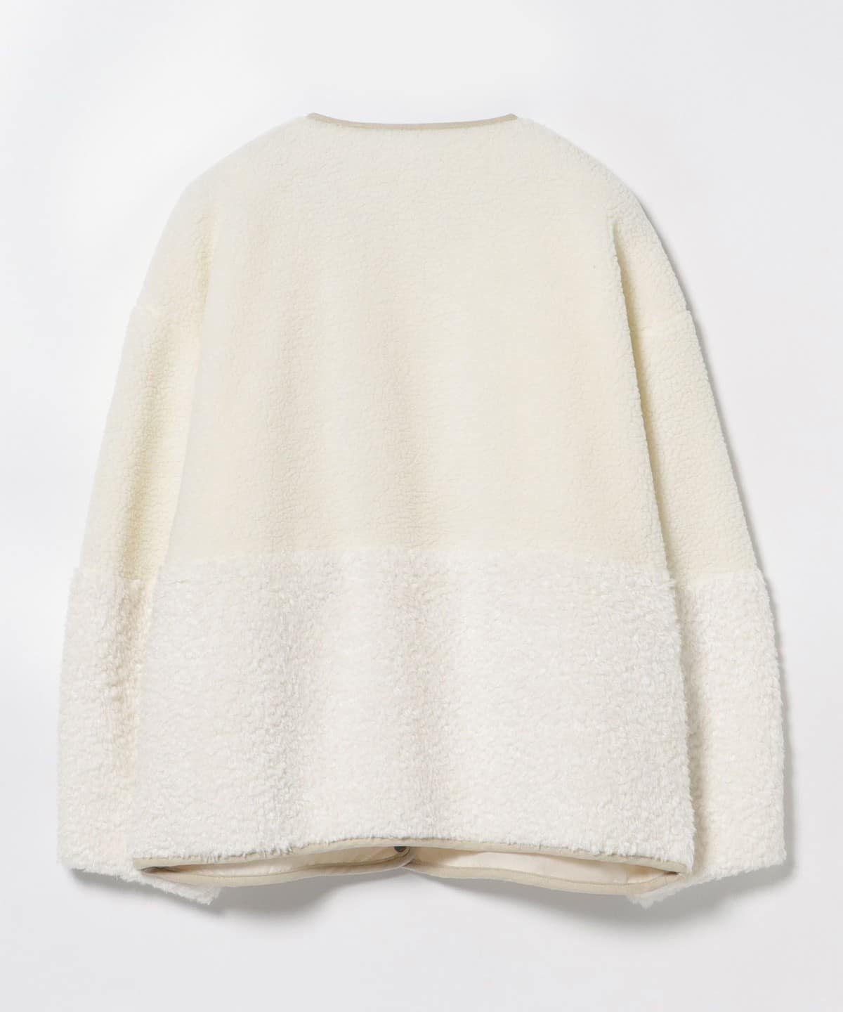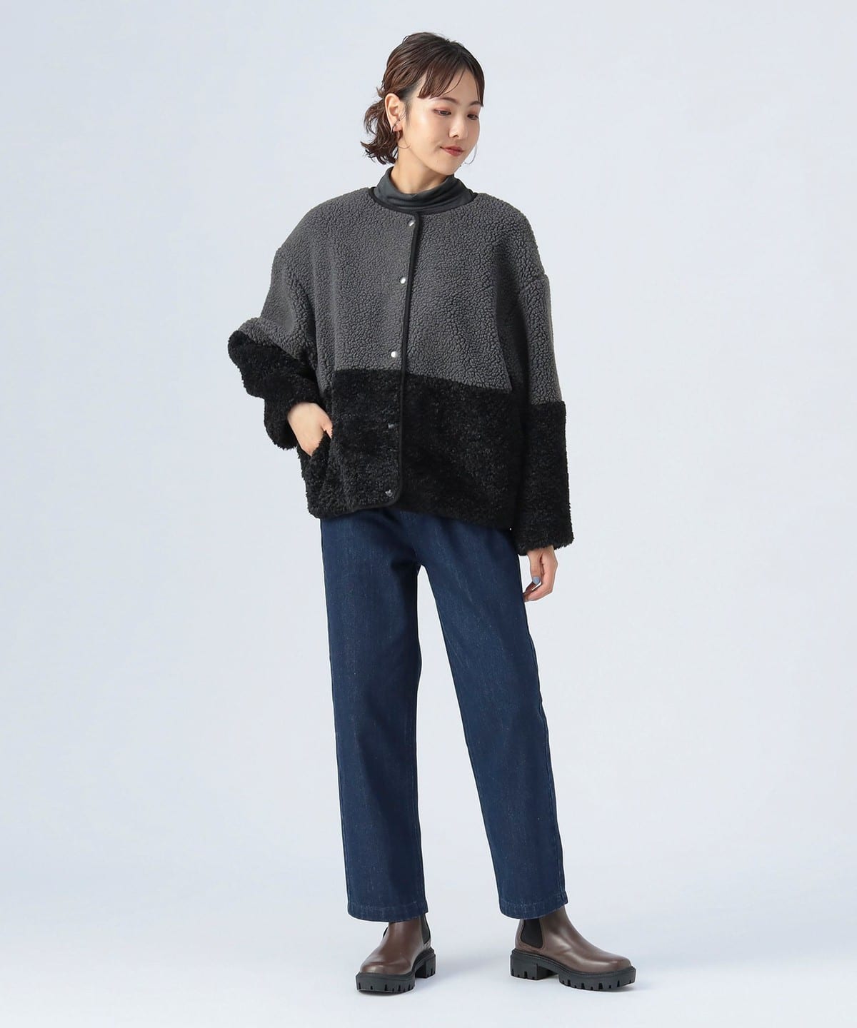 두 가지 다른 보아 소재를 조합해 디자인적인 완성도를 높인 블루종. 네크라인과 전면 중앙에 더해진 파이핑 디테일이 전체적인 라인을 잡아주며 적당히 여유 있는 실루엣입니다.
