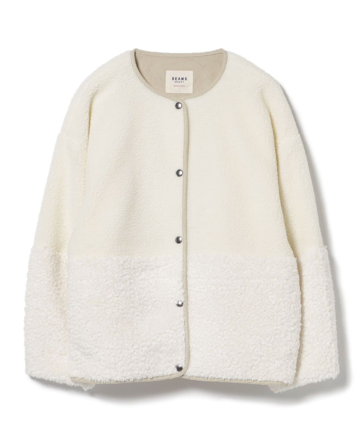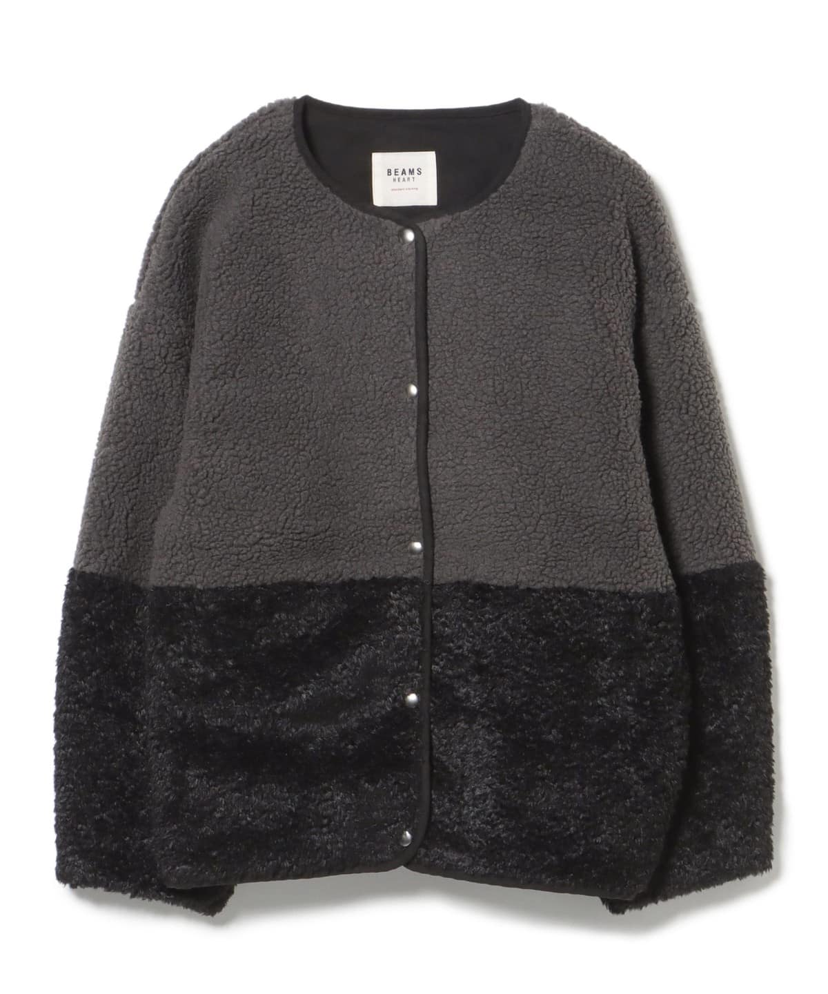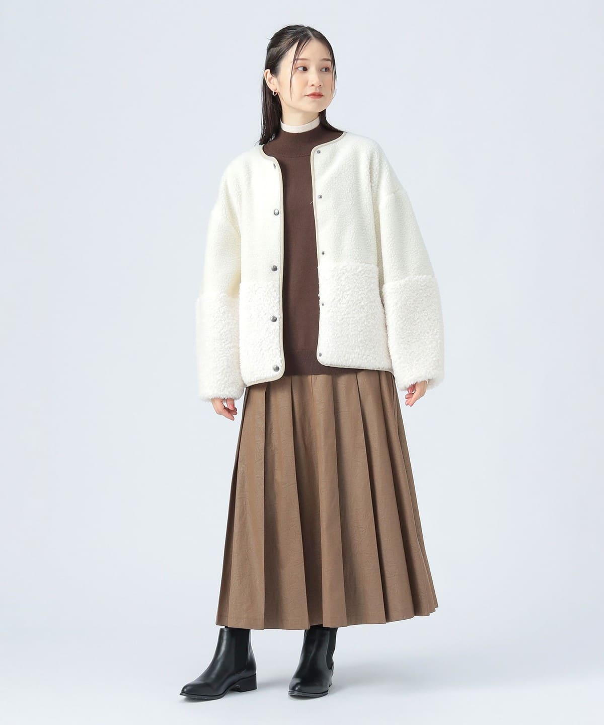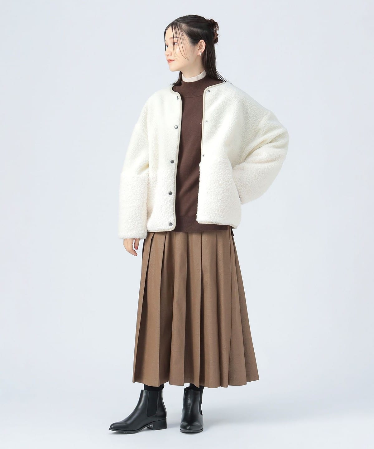 두 가지 다른 보아 소재를 조합해 디자인적인 완성도를 높인 블루종. 네크라인과 전면 중앙에 더해진 파이핑 디테일이 전체적인 라인을 잡아주며 적당히 여유 있는 실루엣입니다.