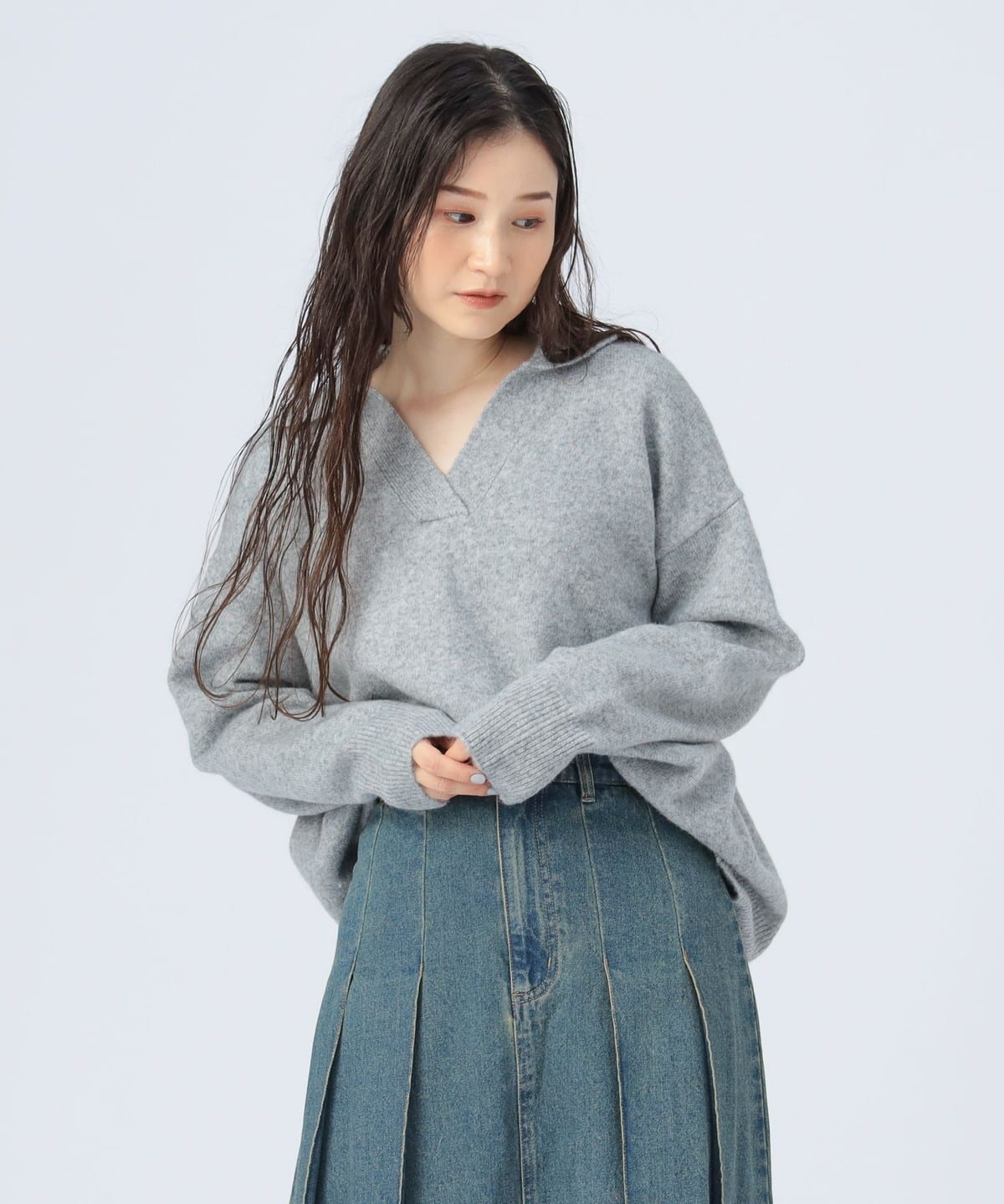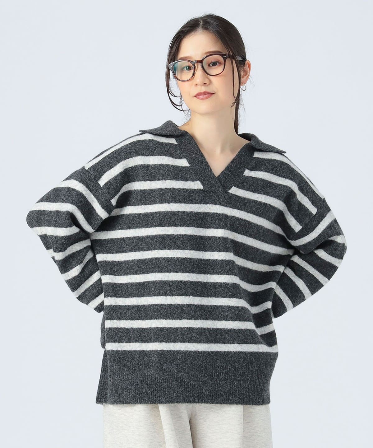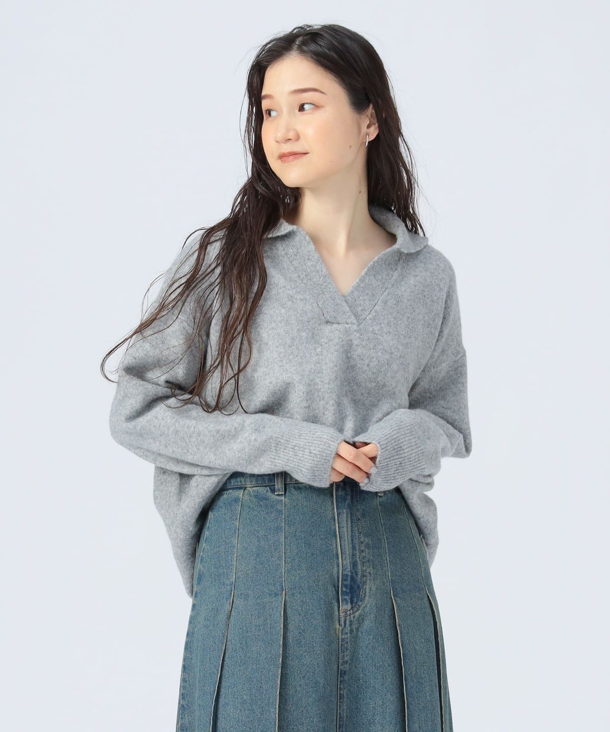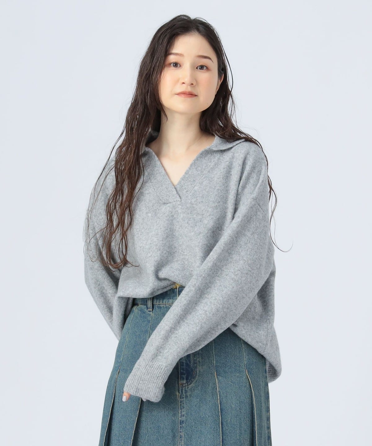 얼굴선을 깔끔하게 보이게 하는 스키퍼 칼라 디자인 이 돋보이는 니트 풀오버입니다. 몸의 라인을 드러내지 않는 오버사이즈 실루엣으로 편안한 착용감을 제공합니다.