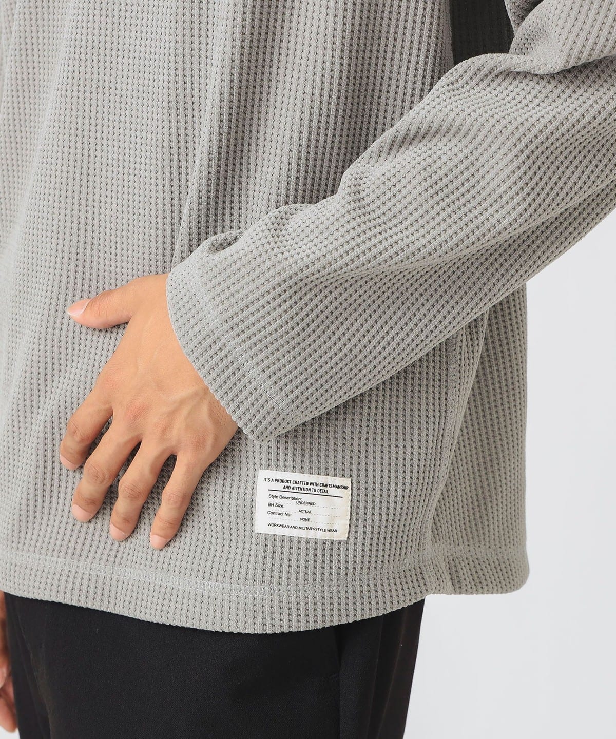 클래식한 와플 조직의 긴팔 티 . 입체감 있는 짜임과 여유로운 실루엣이 특징입니다. 기모감이 느껴지는 따뜻한 질감과 폭신하면서도 부드러운 촉감입니다.