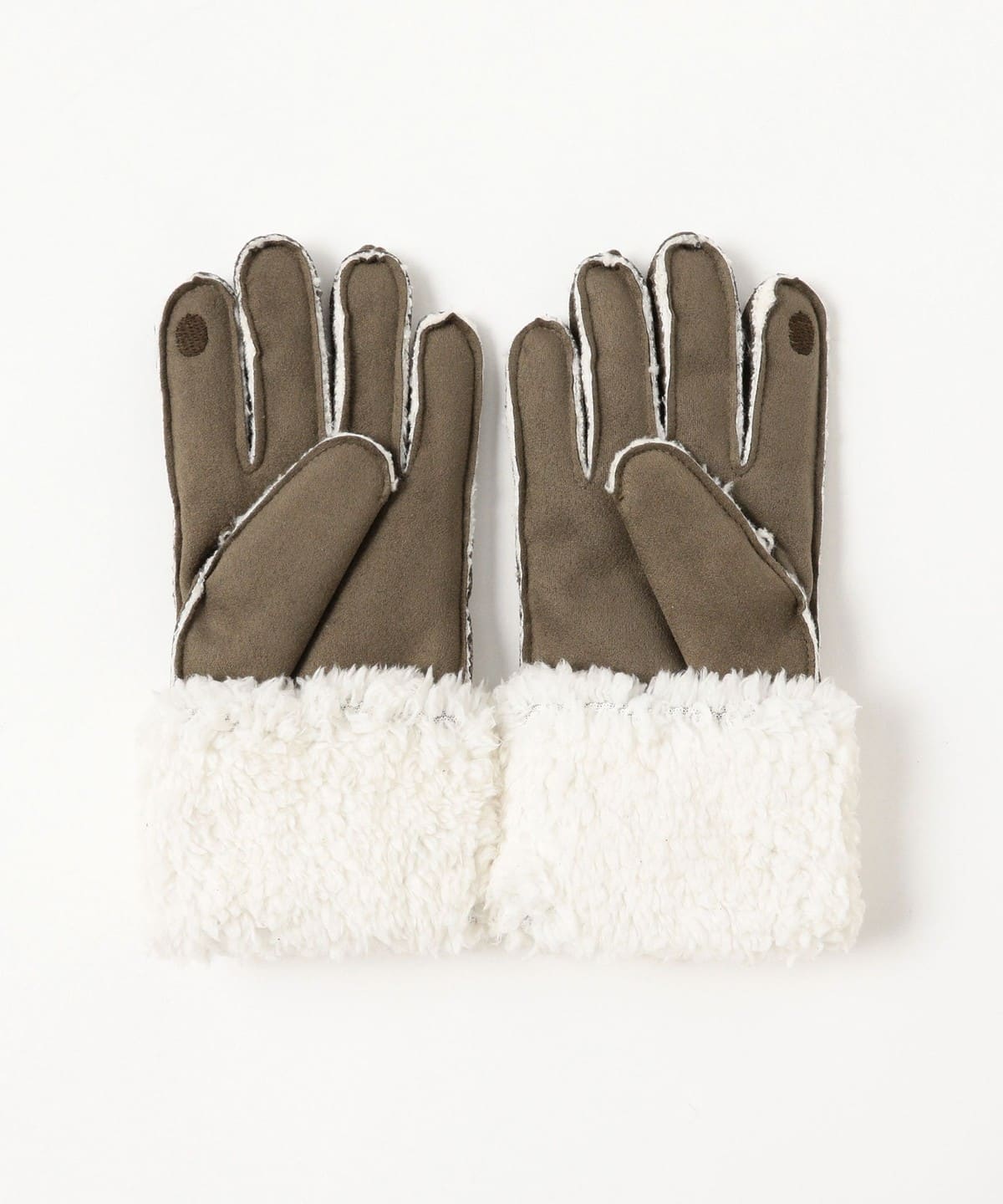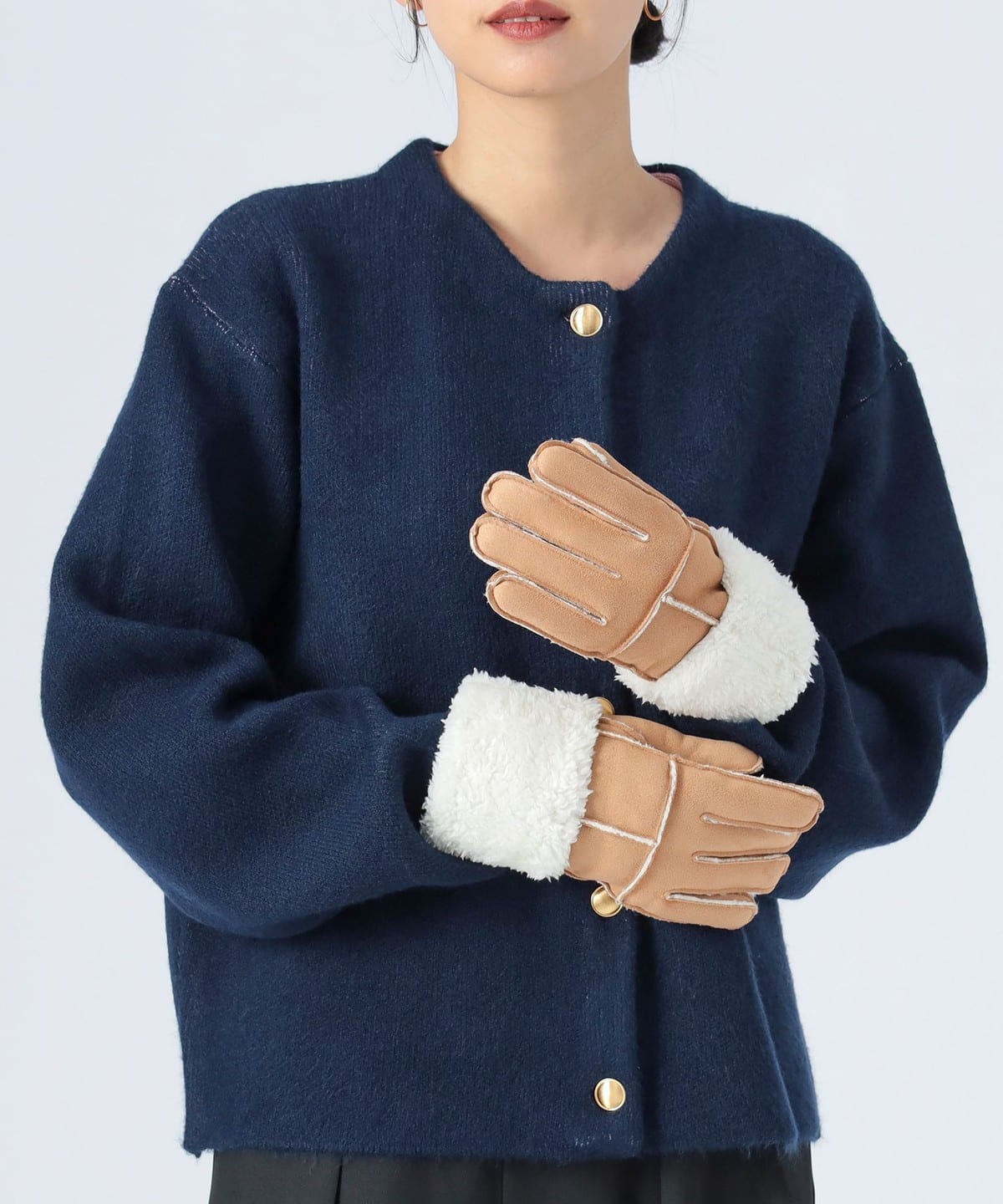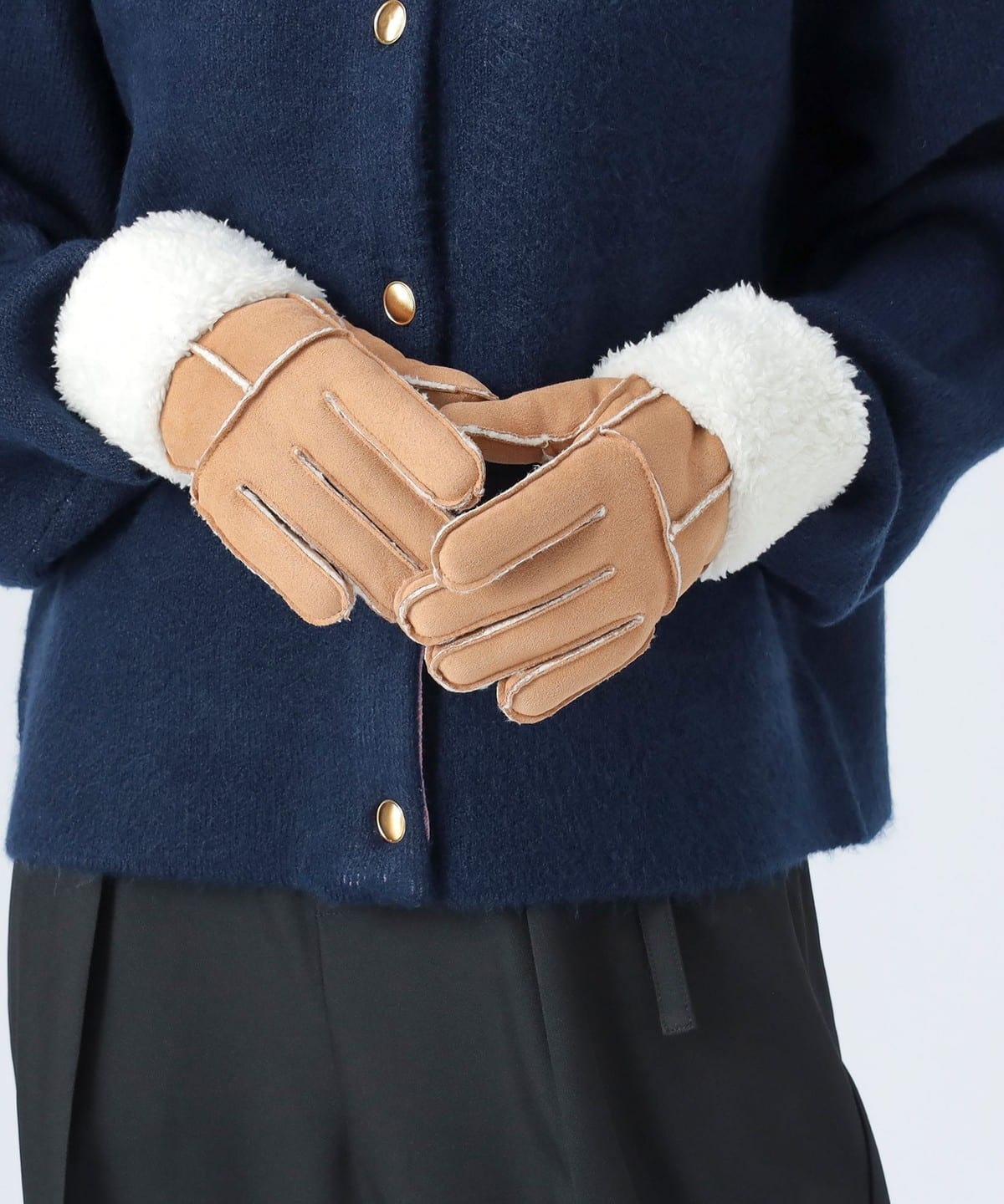 겉감은 따뜻한 인조무스탕 소재, 안감은 털이 긴 보아 소재의 장갑. 손을 부드럽게 감싸주면서도, 캐주얼부터 포멀한 스타일까지 모두 어울리는 깔끔한 디자인입니다.