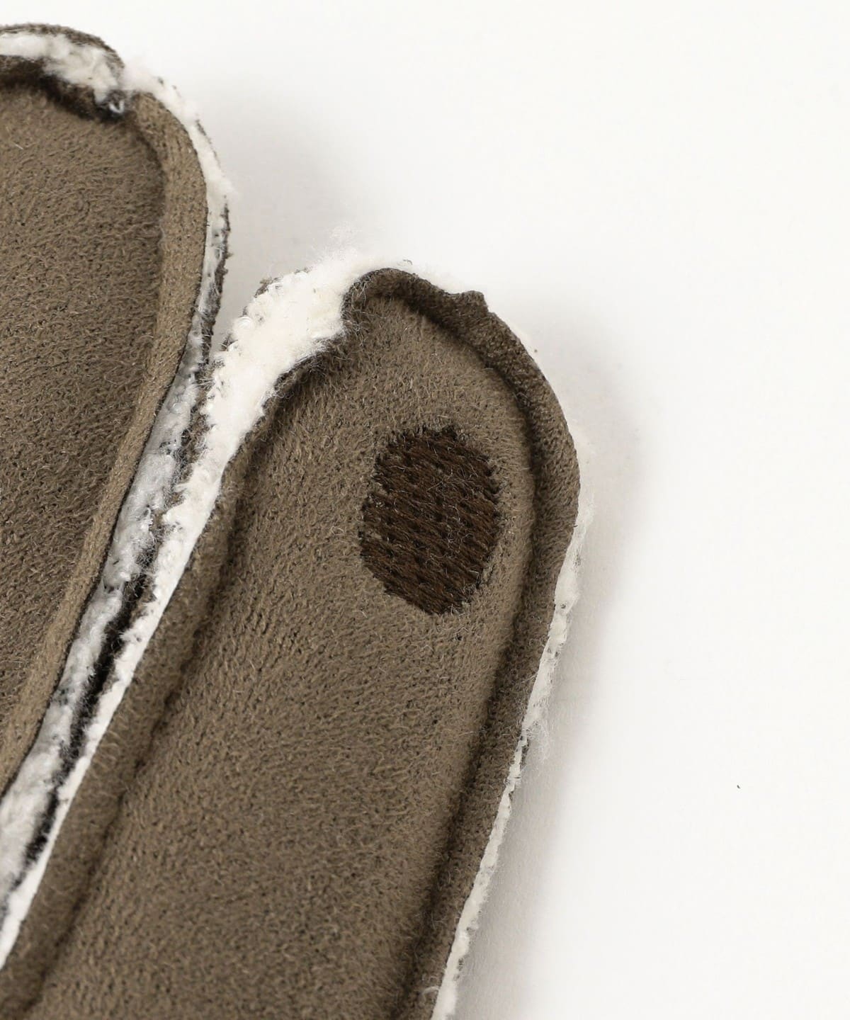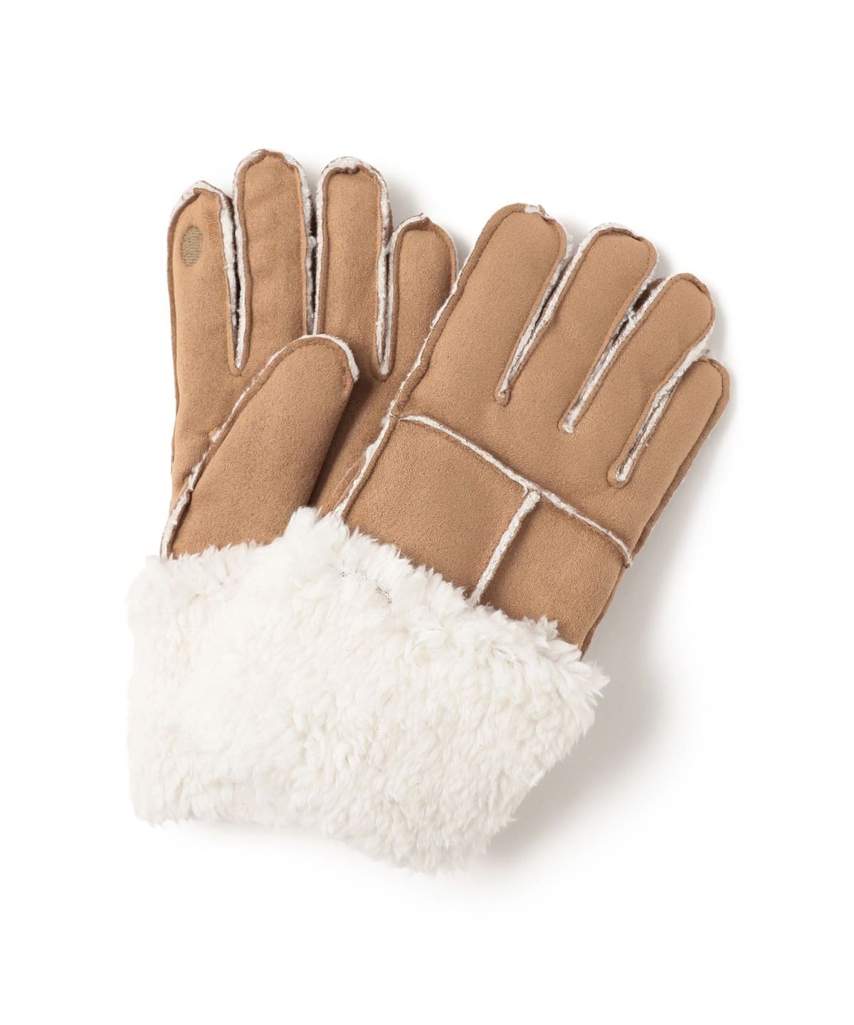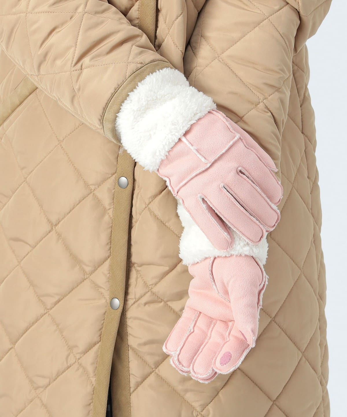 겉감은 따뜻한 인조무스탕 소재, 안감은 털이 긴 보아 소재의 장갑. 손을 부드럽게 감싸주면서도, 캐주얼부터 포멀한 스타일까지 모두 어울리는 깔끔한 디자인입니다.
