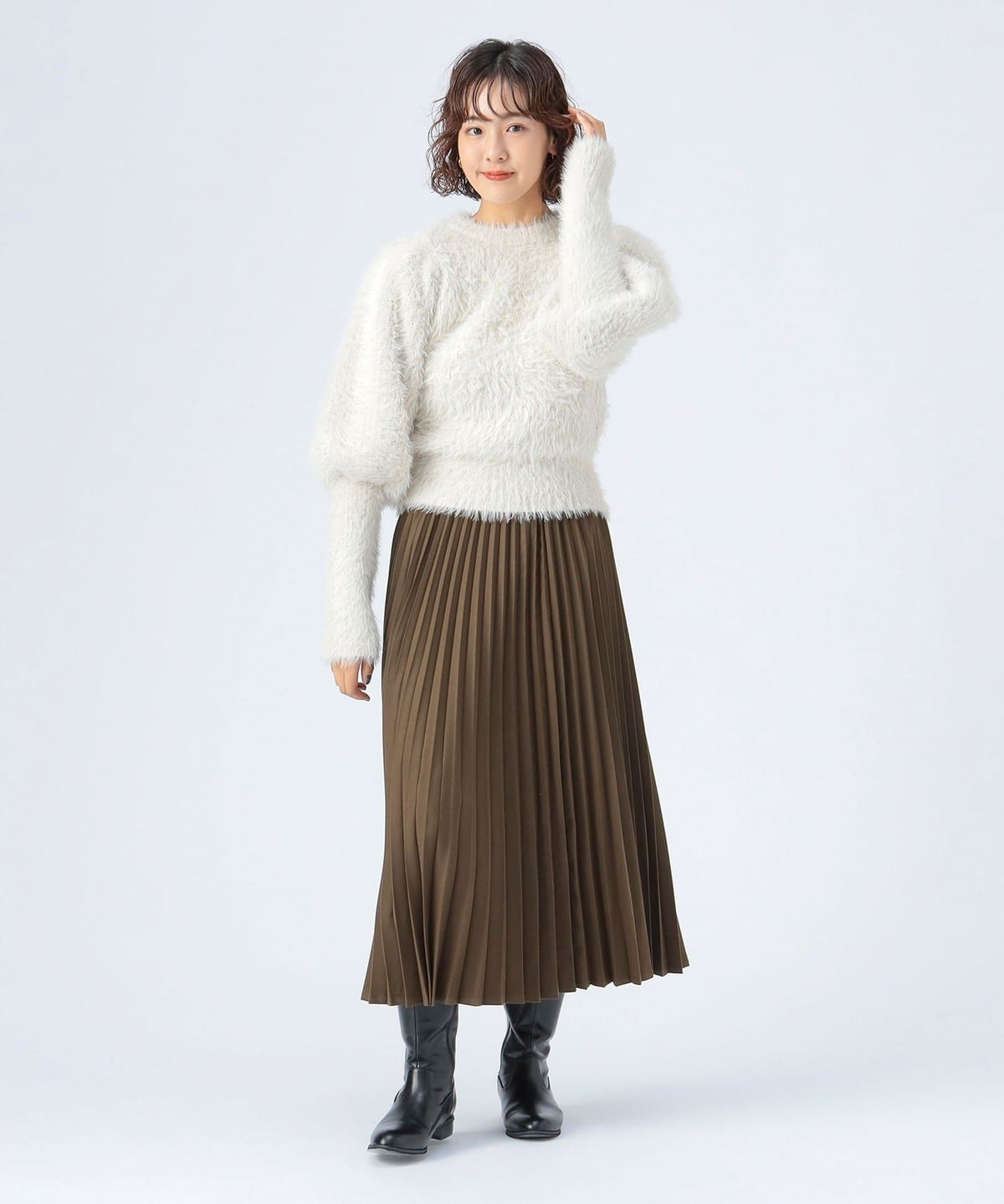 가볍고 아름다운 플리츠 디테일 이 움직일 때마다 우아한 실루엣을 연출하는 스커트입니다.