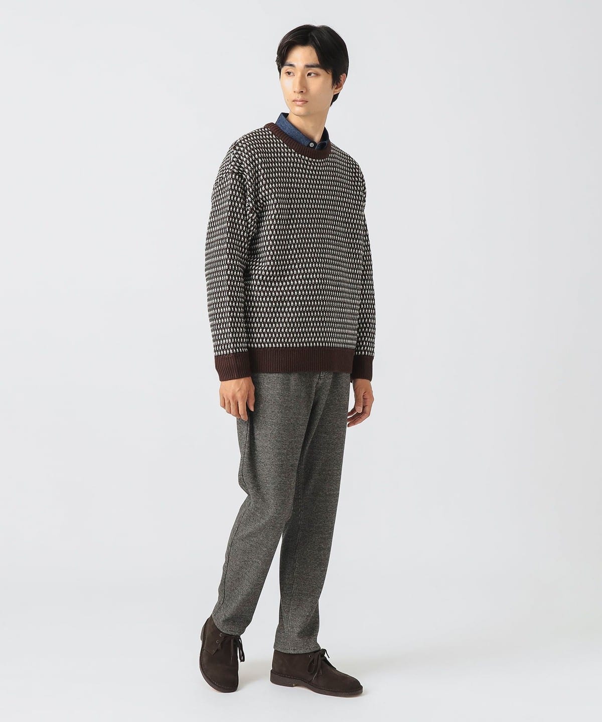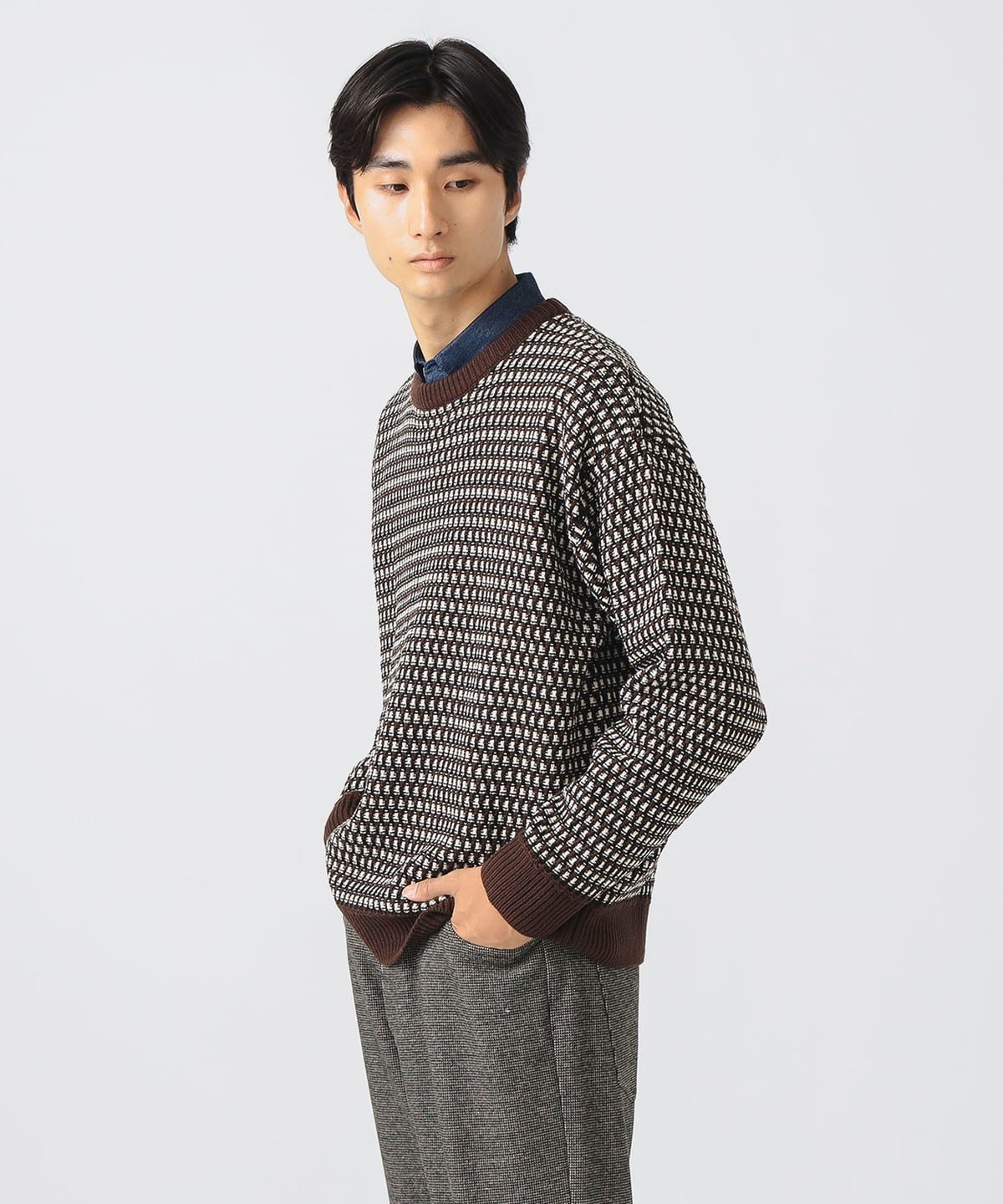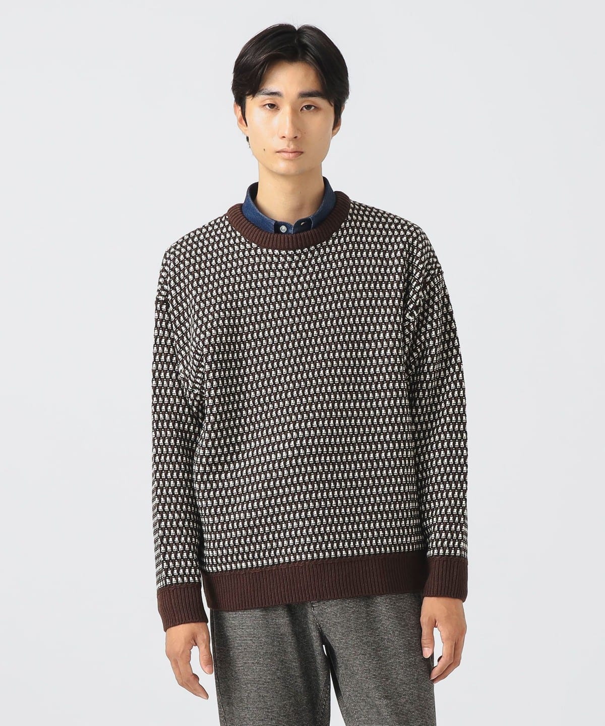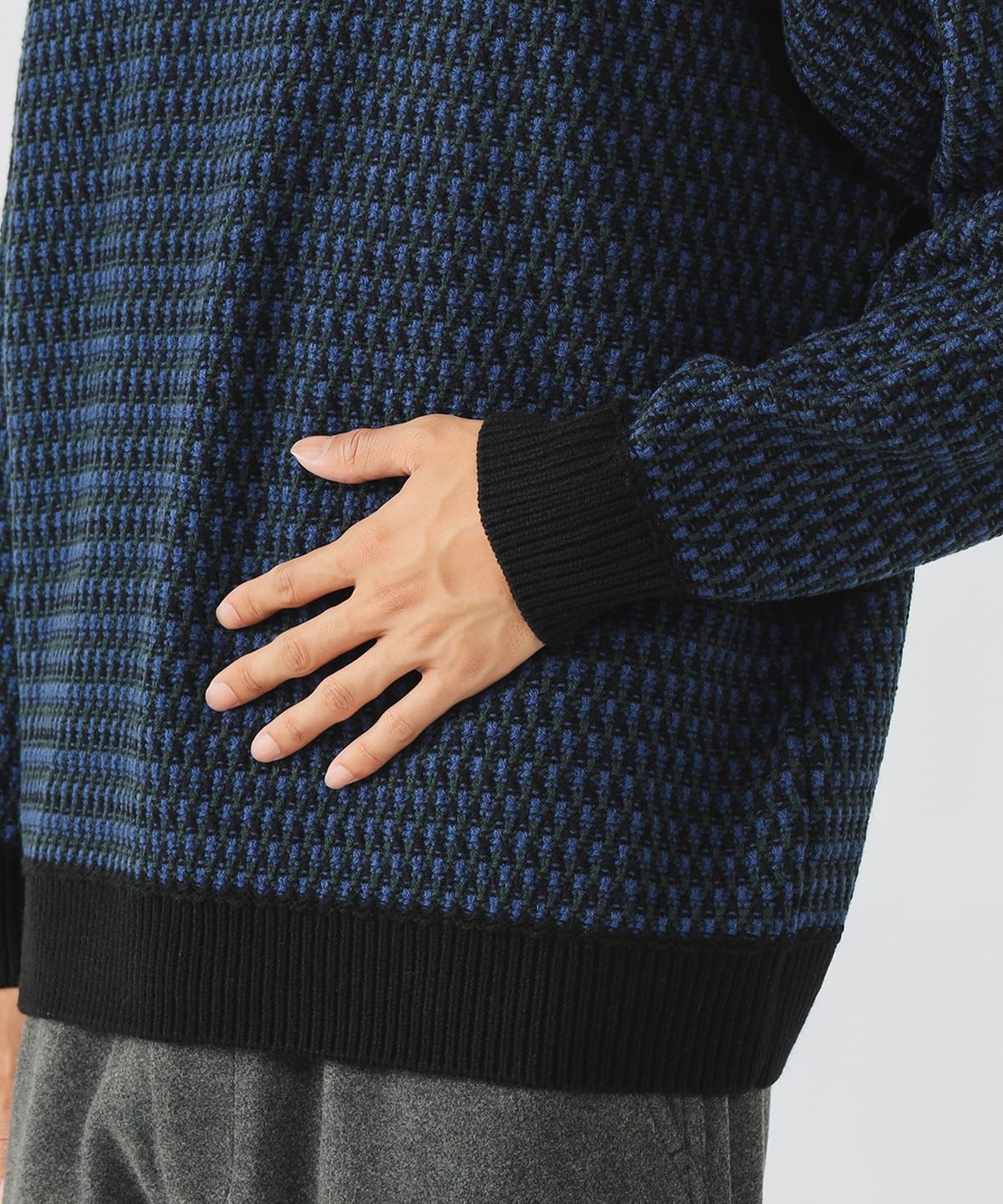 팝콘 조직과 버즈아이 조직을 믹스한 듯한 유니크한 입체감의 니트입니다. 아크릴 100% 소재로 제작되었으며, 손세탁이 가능한 실용적인 니트입니다.