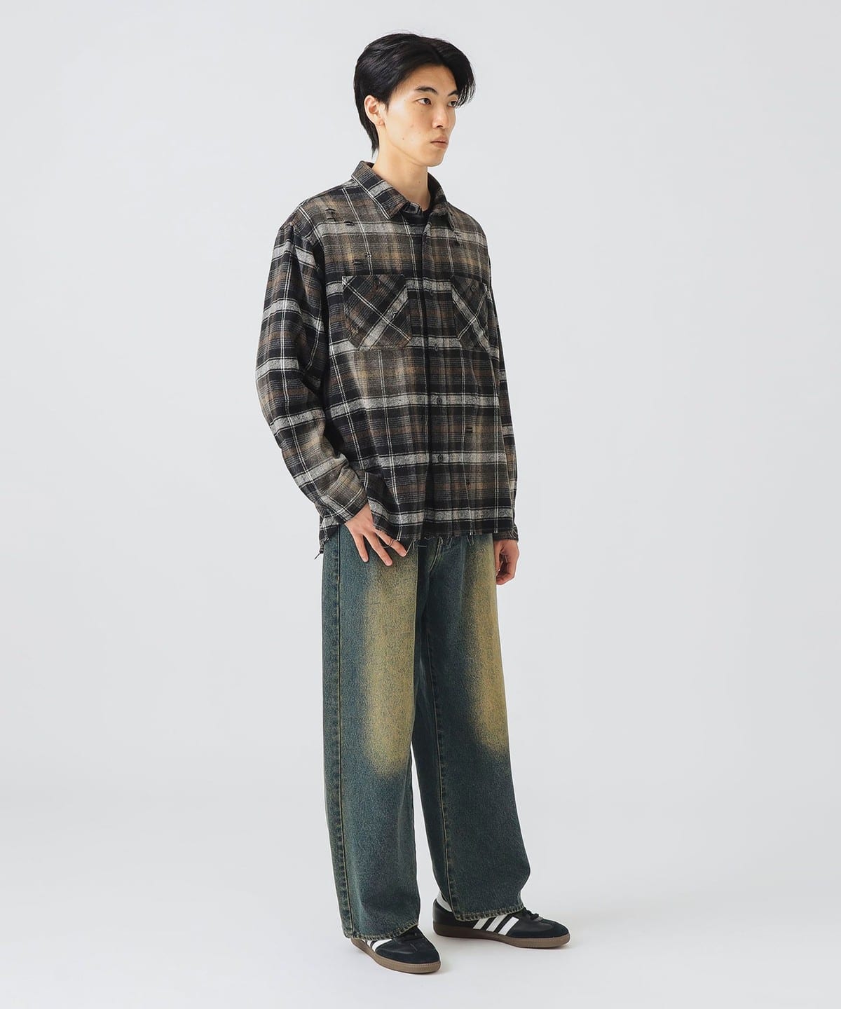 부분적인 데미지 홀 가공 , 밑단의 컷오프 디테일 , 자연스러운 페이드가 특징입니다.