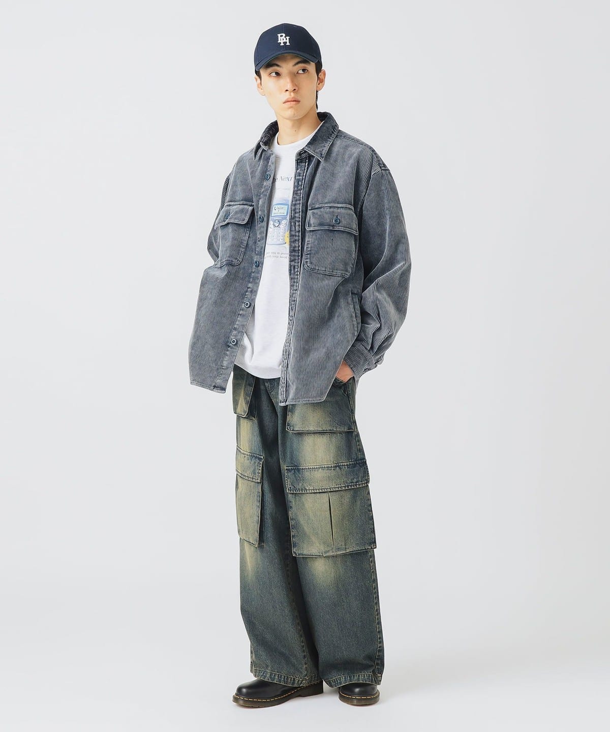 코듀로이 소재에 페이드 가공을 실시해 빈티지한 분위기를 연출했습니다. 넉넉하고 여유로운 빅실루엣입니다.