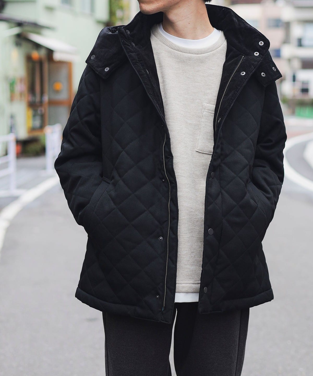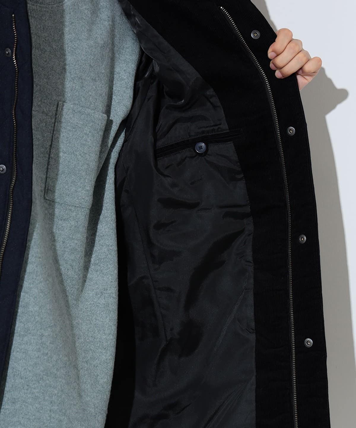 지퍼와 히든 버튼으로 방풍성이 있습니다.