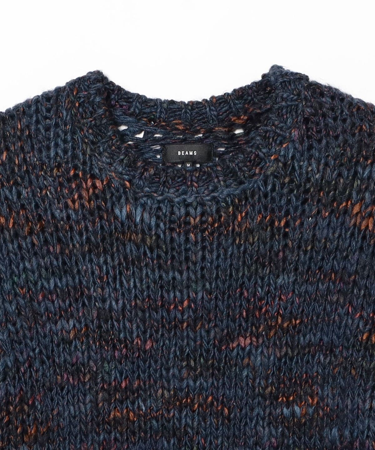 믹스 컬러의 풍부한 질감이 돋보이는 핸드니트 스타일의 크루넥 니트입니다. 부드러운 색조의 혼합실이 만들어내는 자연스러운 그라데이션이 매력적인 아이템으로, 포근하고 따뜻한 감각을 선사합니다. 어깨와 품이 넉넉하여 자연스럽게 떨어지는 실루엣입니다.