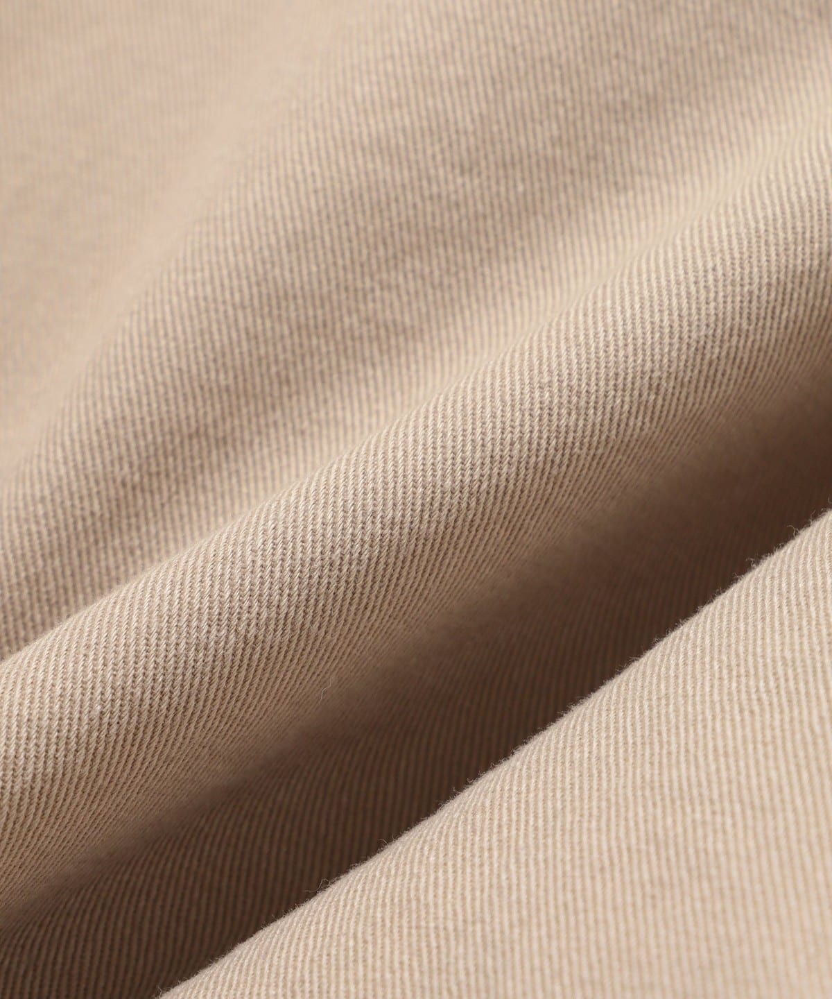 오랜 시간 착용한 듯한 자연스러운 주름과 질감을 표현한 BEAMS만의 특별한 빈티지풍 치노 원단을 사용했습니다.