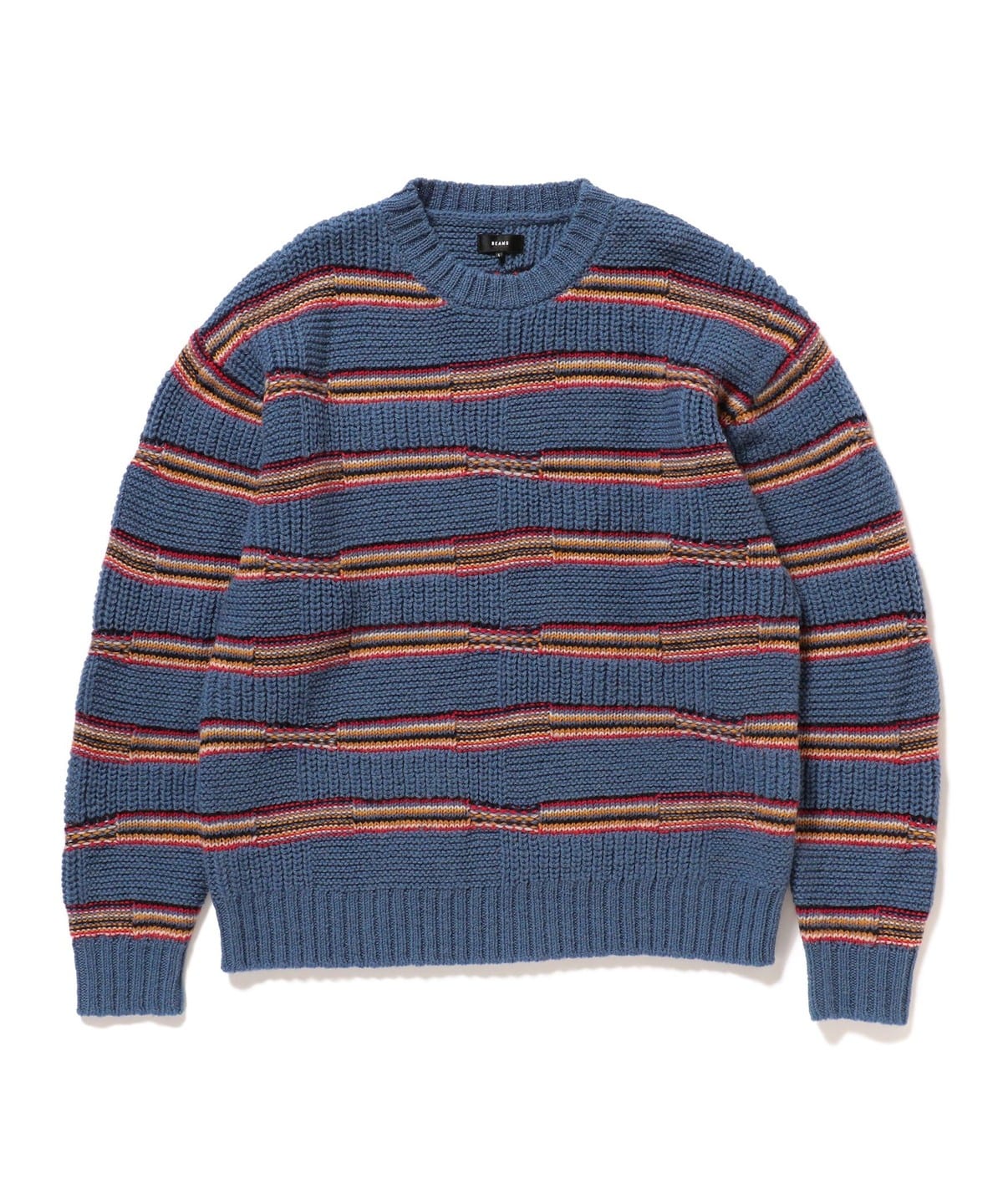 컬러풀한 멀티 스트라이프 패턴이 돋보이며, 스타일링의 포인트가 되어줄 존재감 있는 니트입니다.