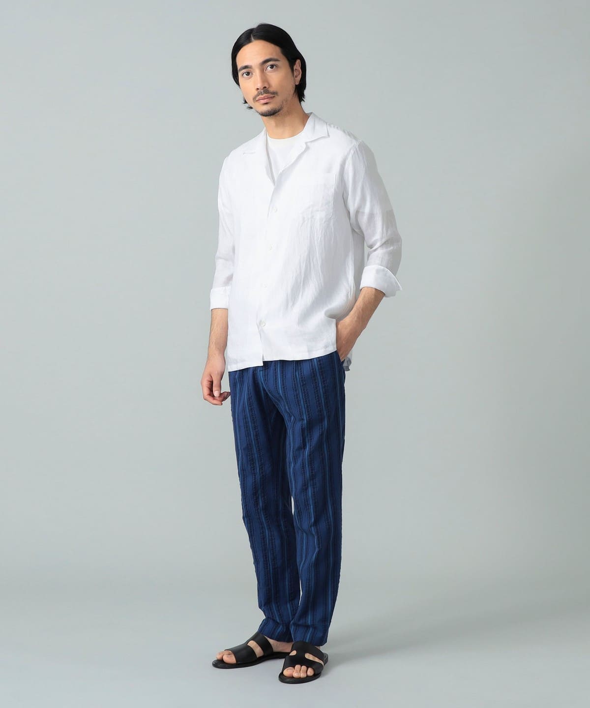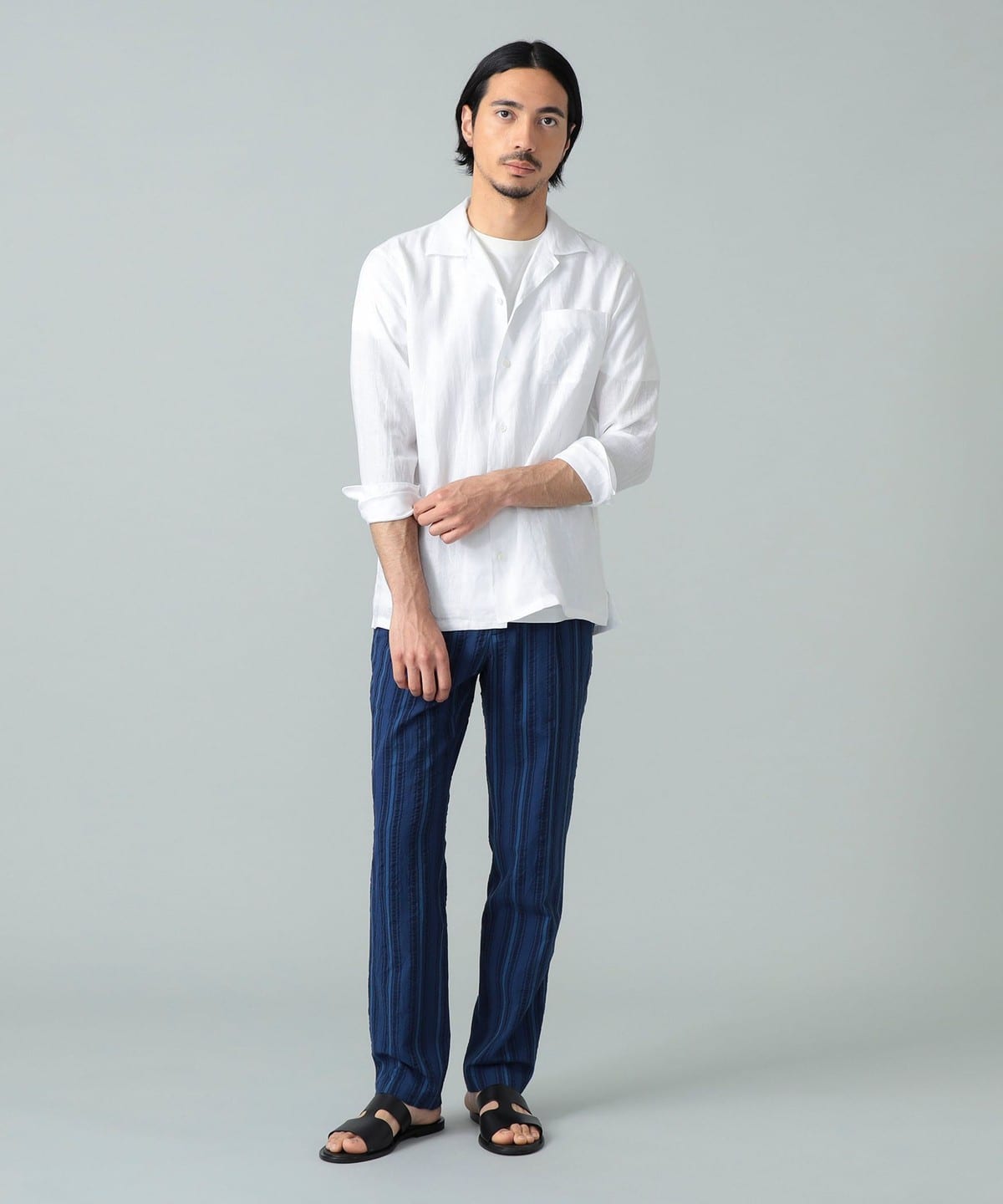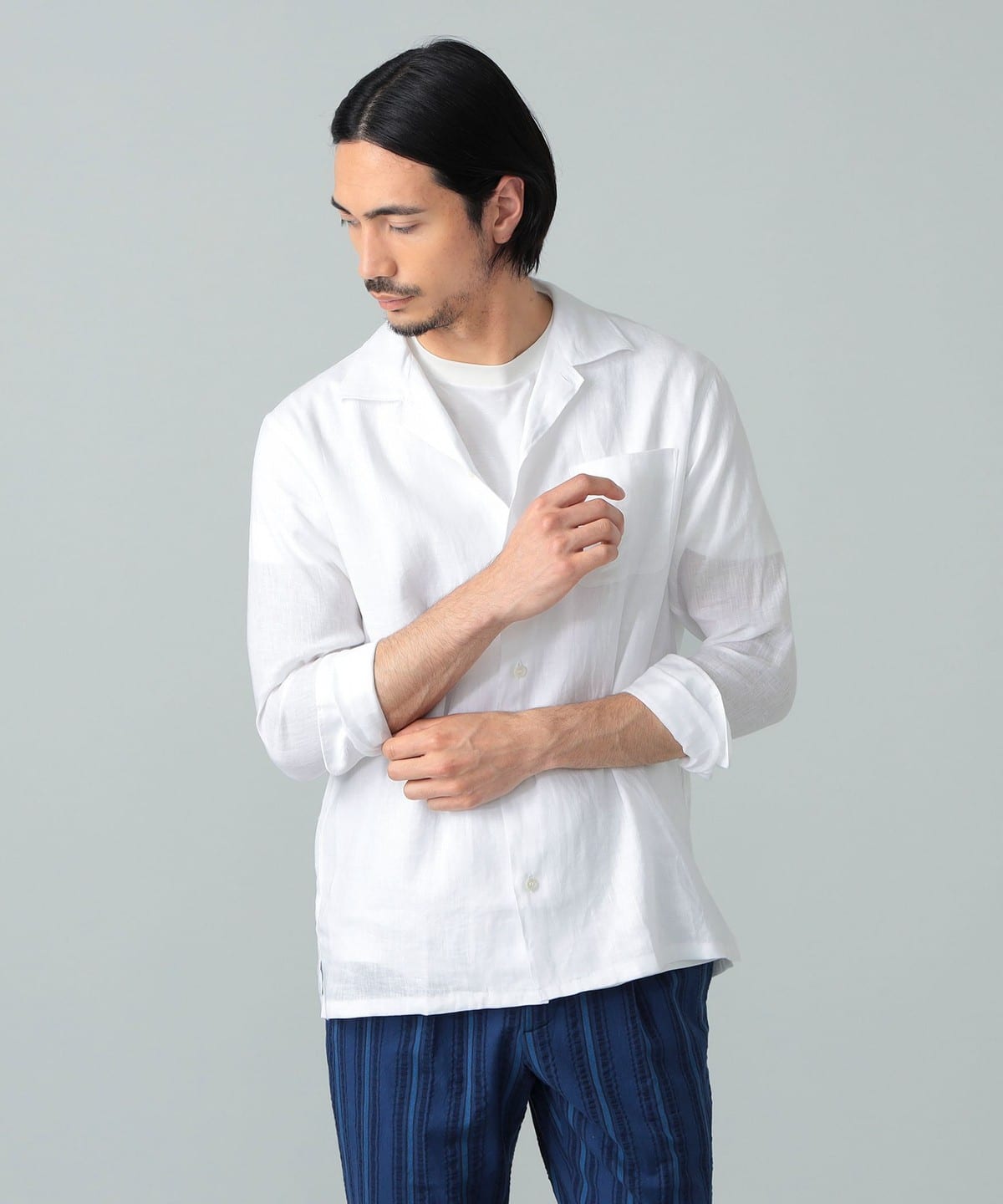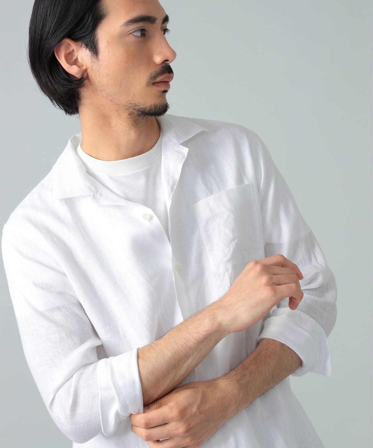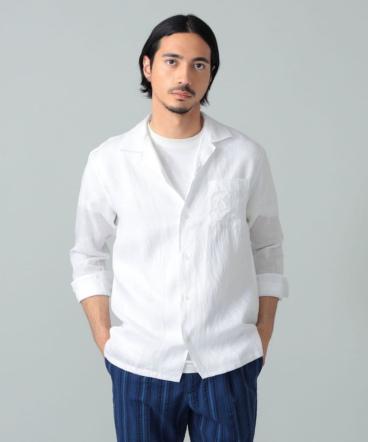 빔즈 F 린넨 솔리드 오픈 칼라 셔츠