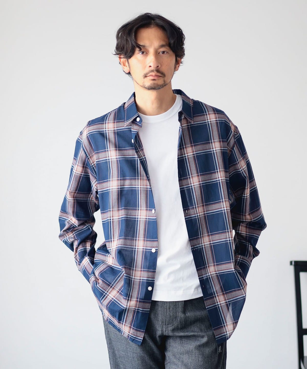B MING by BEAMS 빔즈 체크 레귤러 칼라 셔츠 92-11-0380-247