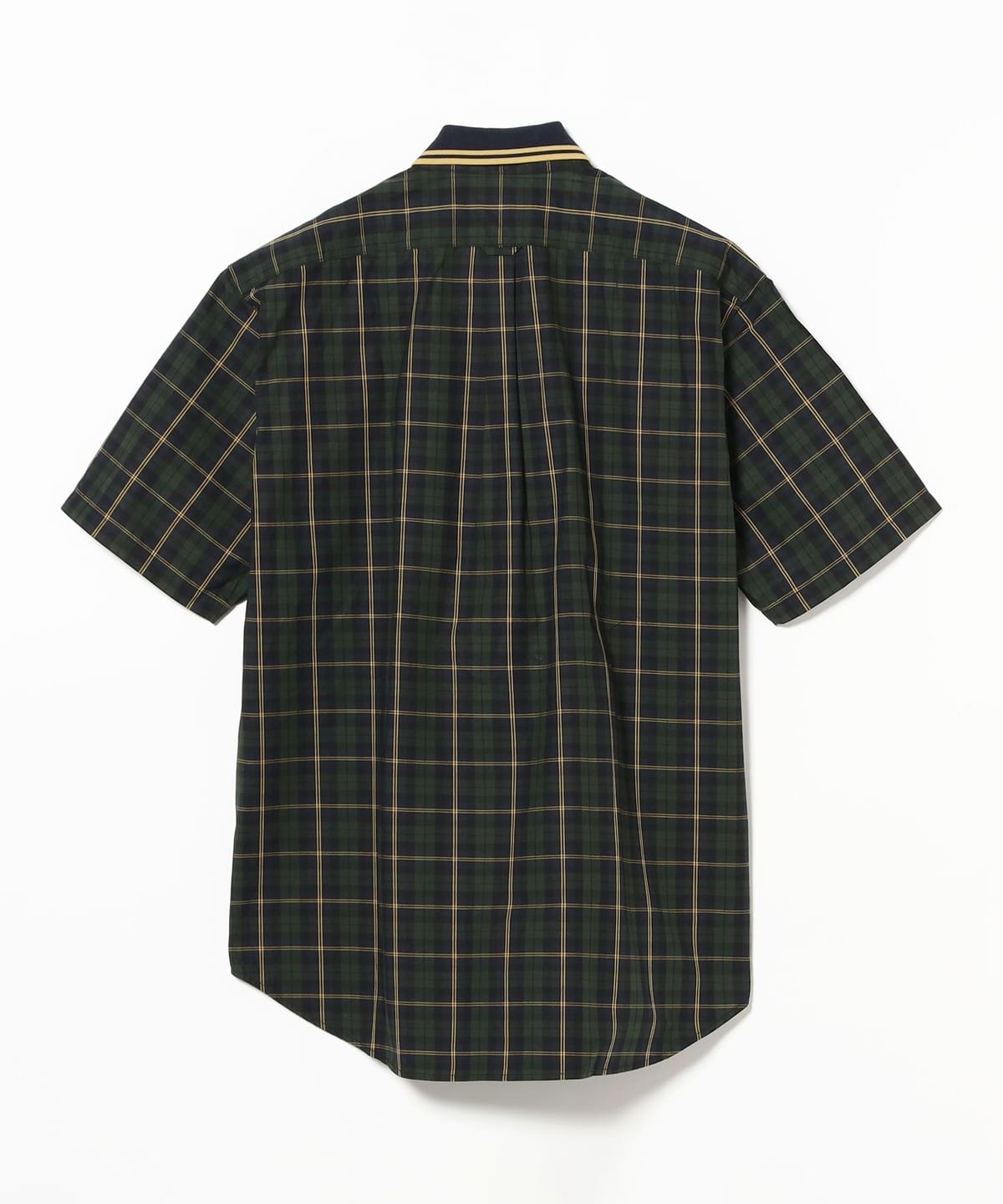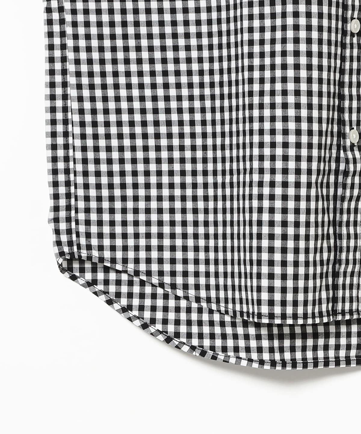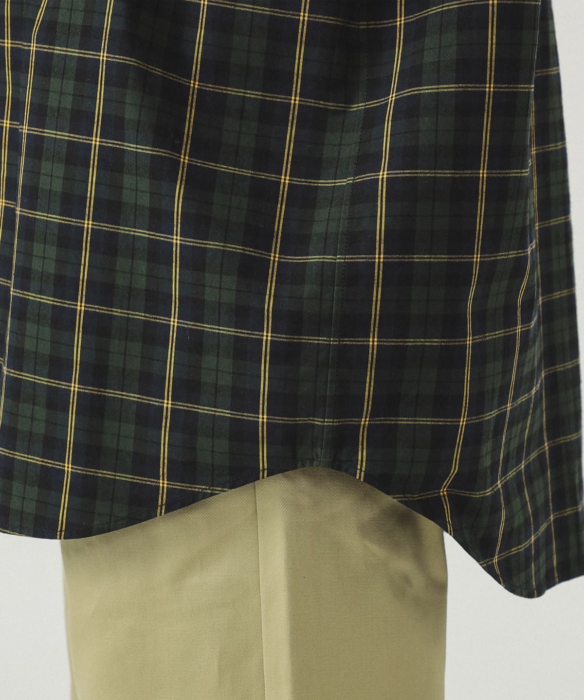 넥라인은 리브 칼라 디자인이며 체크 패턴이 스타일링의 시각적 포인트가 됩니다.