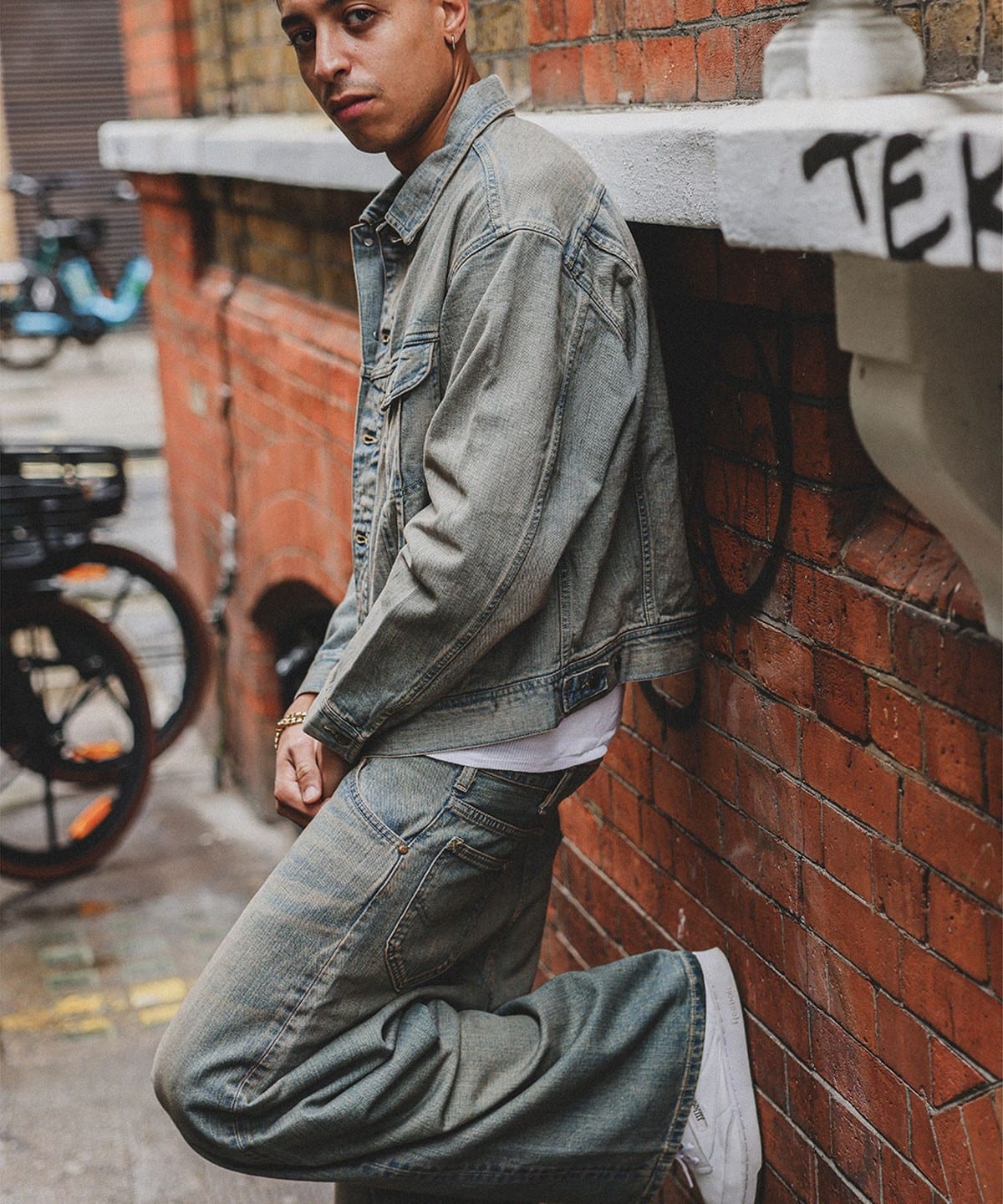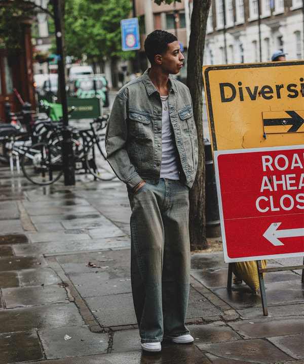 미국을 대표하는 역사적인 데님 브랜드 LEE와의 콜라보 팬츠. 13.5 oz 데님 소재를 사용하며 와이드 실루엣입니다.