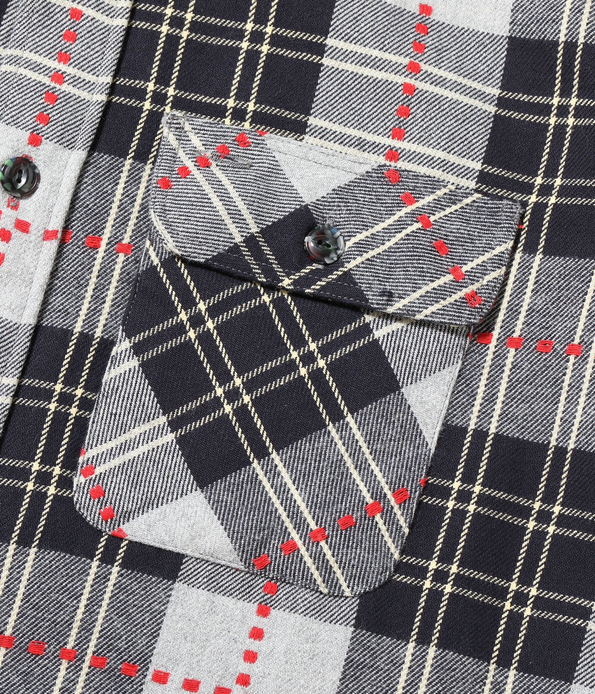 기본 형태는 2개의 플랩 포켓을 갖춘 워크셔츠 이며,