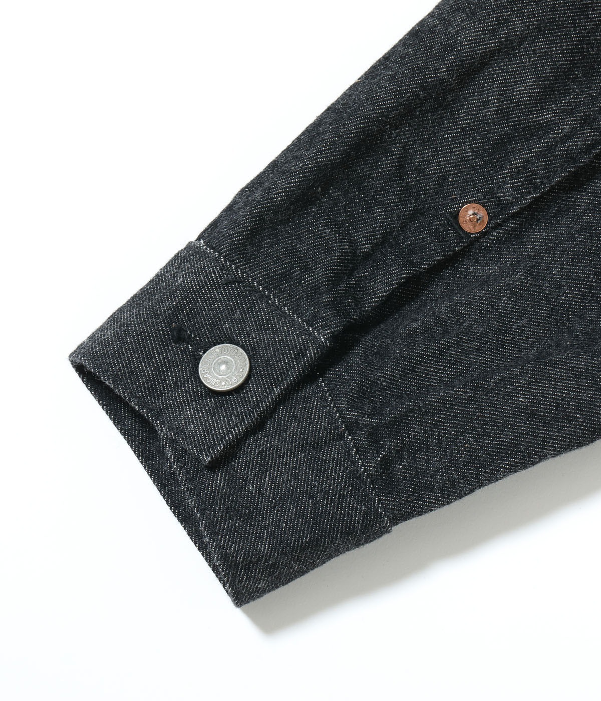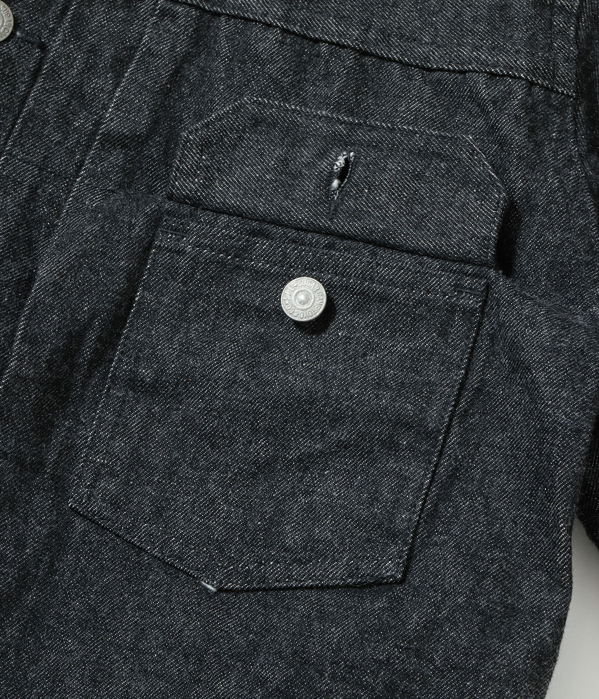 데님 재킷이 워크웨어에서 캐주얼로 바뀐 과도기의 1953년 모델. 황화물 염료를 사용하여 검은 색으로 염색하고 마모로 인해 시간이 지남에 따라 색이 깊게 퇴색합니다.